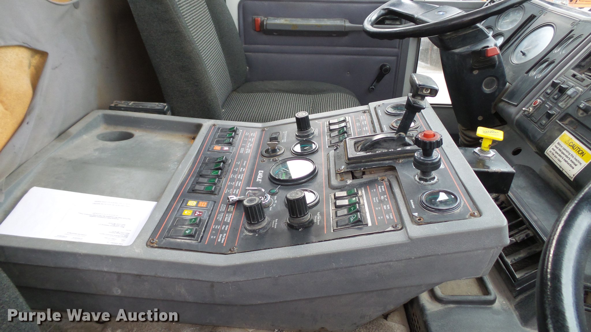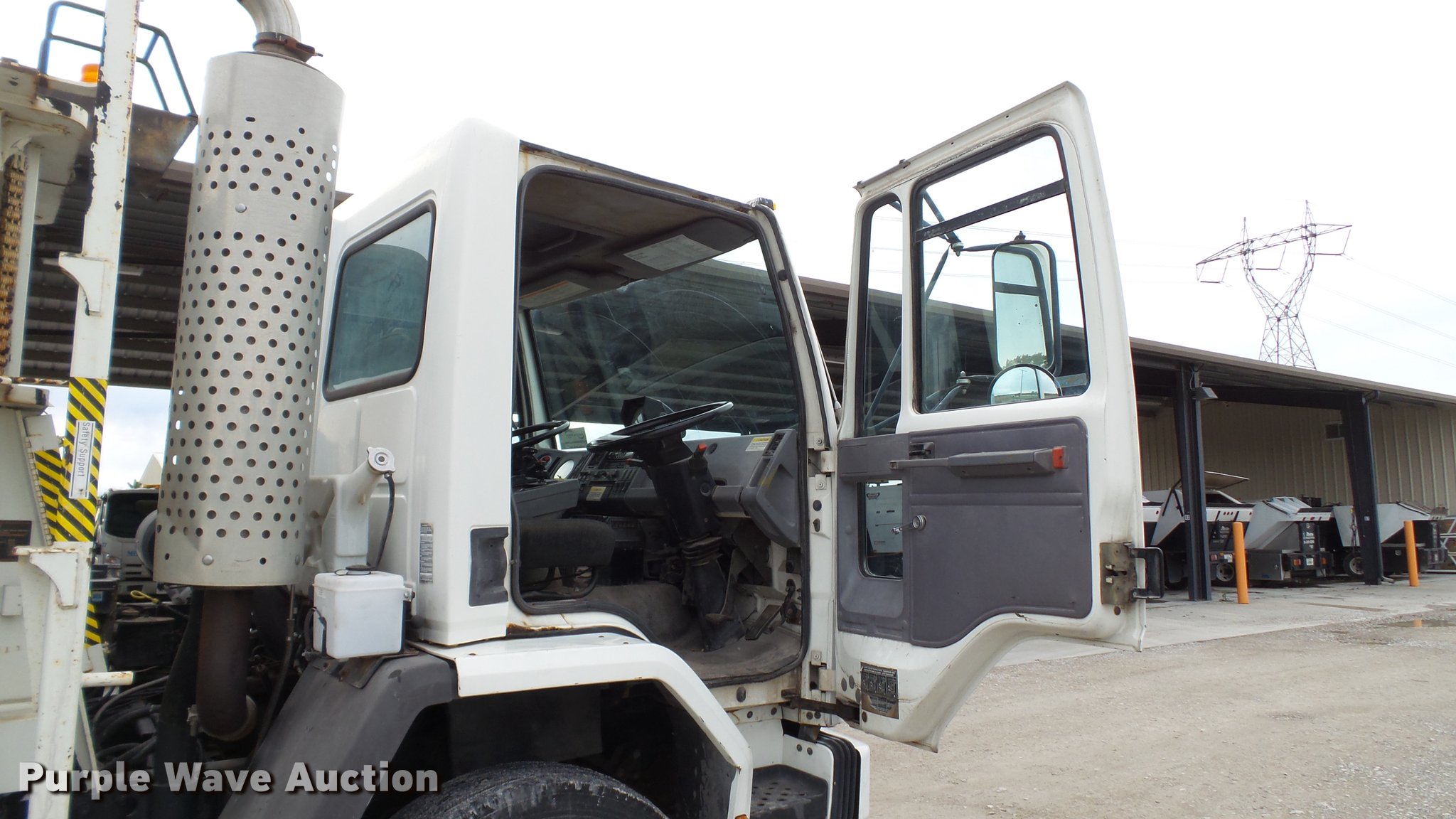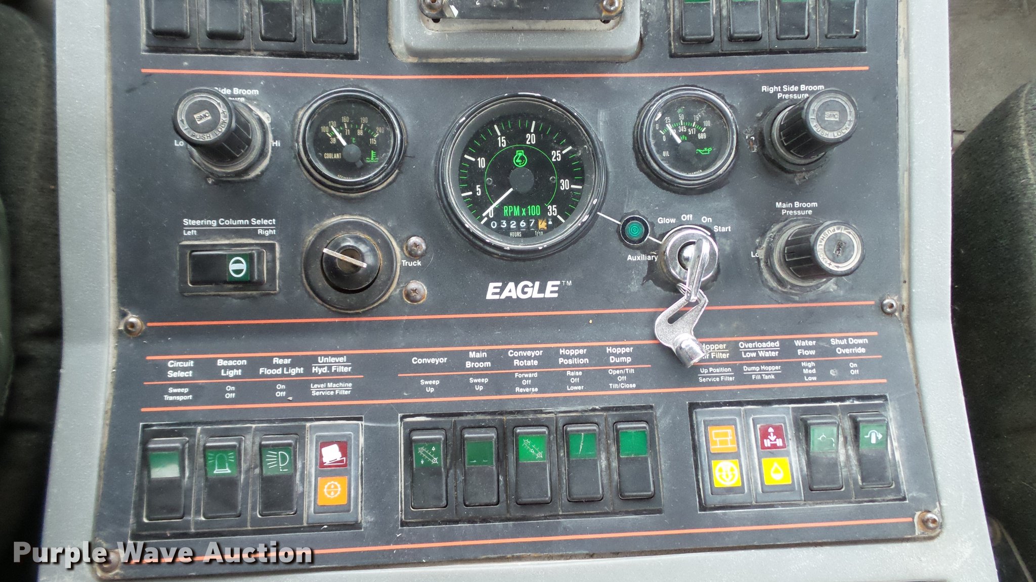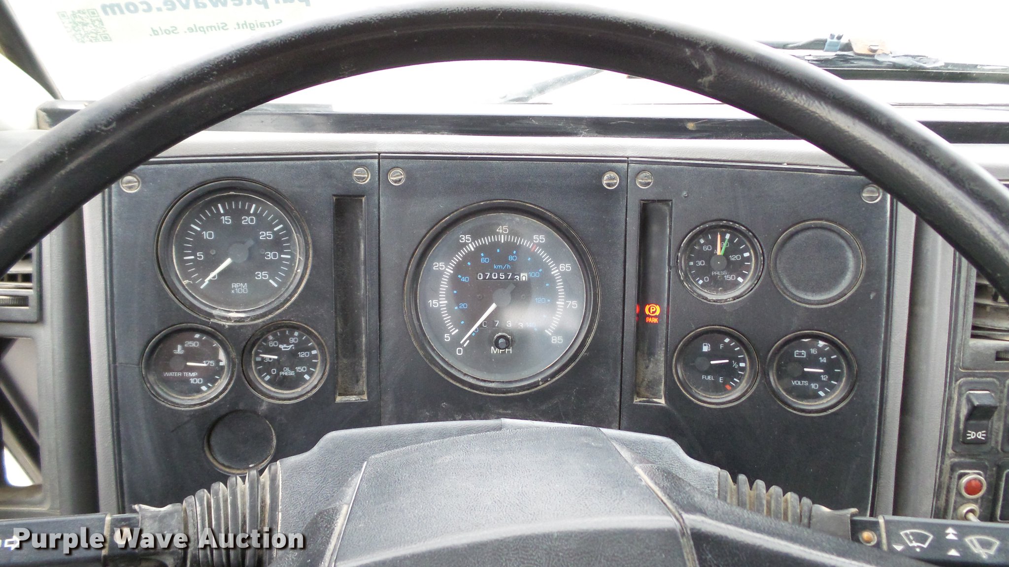 Purple Wave is selling a used Street Sweeper Truck in Illinois. This item is a 1995 Ford CF7000 street sweeper with the following: 70,573 miles on odometer, Cummins 5.9L L6 turbo diesel engine, Automatic transmission, Enclosed cab, AC and heat, AM/FM, Backup camera, Wipers, Elgin Eagle Series F sweeper unit, Isuzu C240 four cylinder diesel engine, 3,267 hours on meter, Dual operating stations, 5' sweeping width, Hydraulic lift, tilt, and rotation, 4.5 cu.yd. hopper, 32" diameter gutter brooms, 34"W pickup broom, Front water application, 360 gallon water system, Hydraulic drive sweeping system, Automatic lubrication system, Front work lights, Air brakes, 11R22.5 tires, Non-operational AC, Non-operational backup camera, Windshield chipped, Auto greaser canister broken