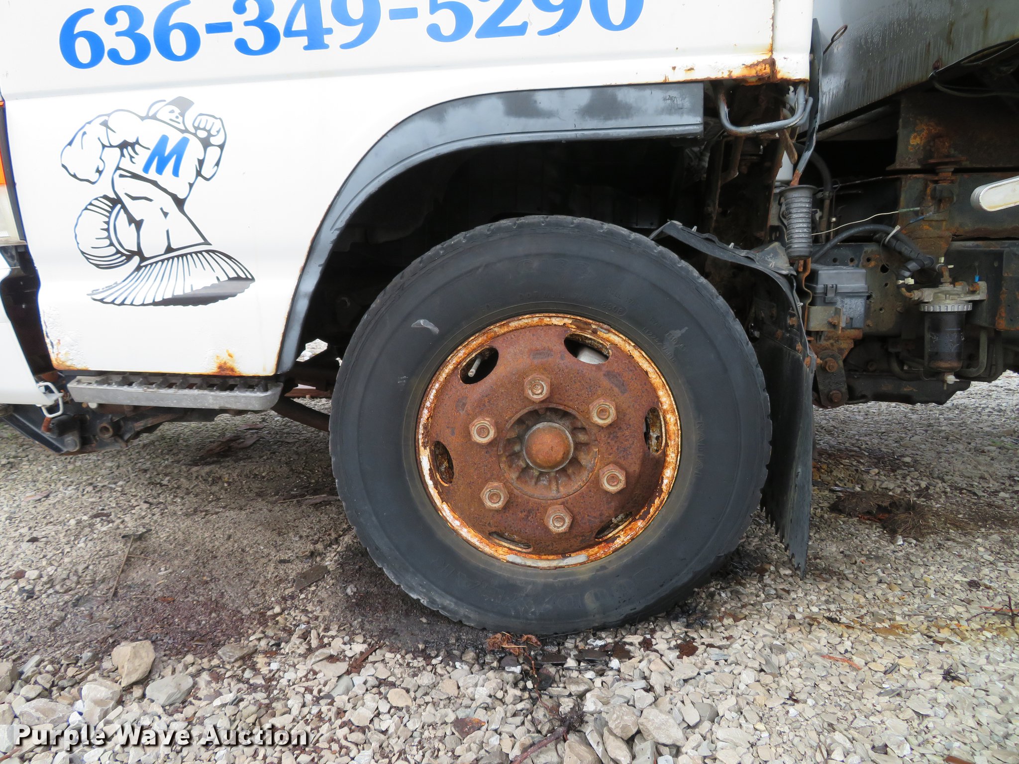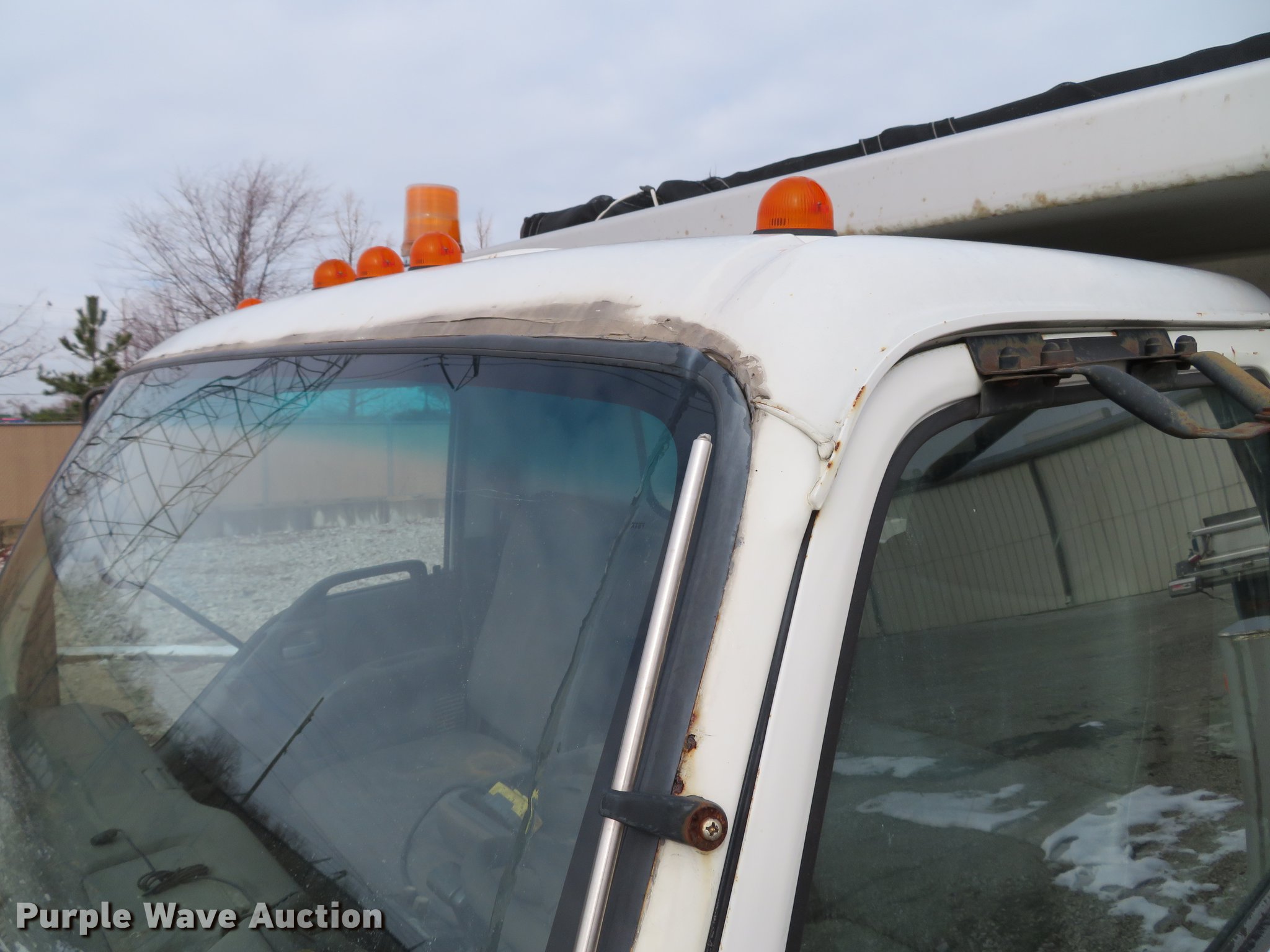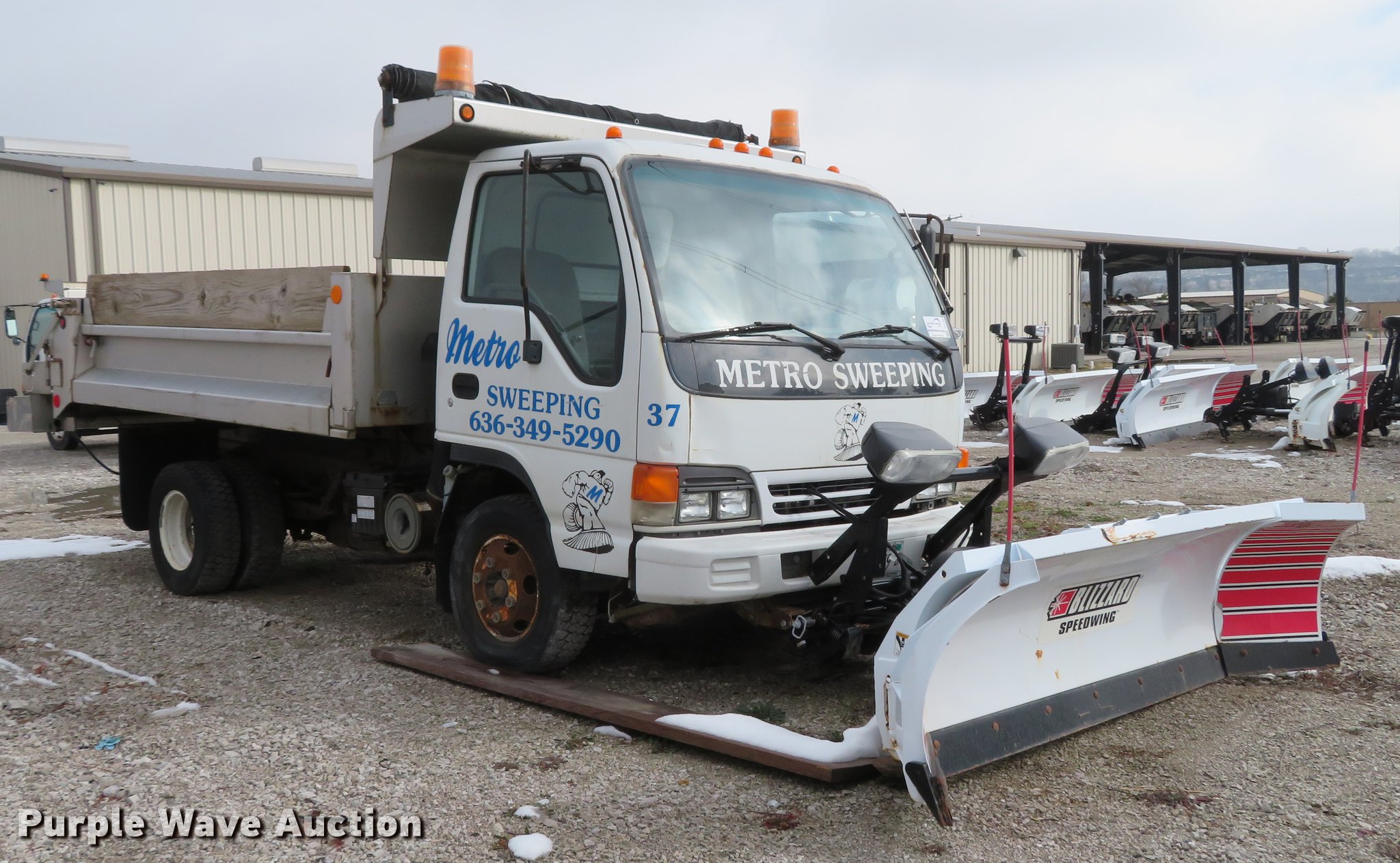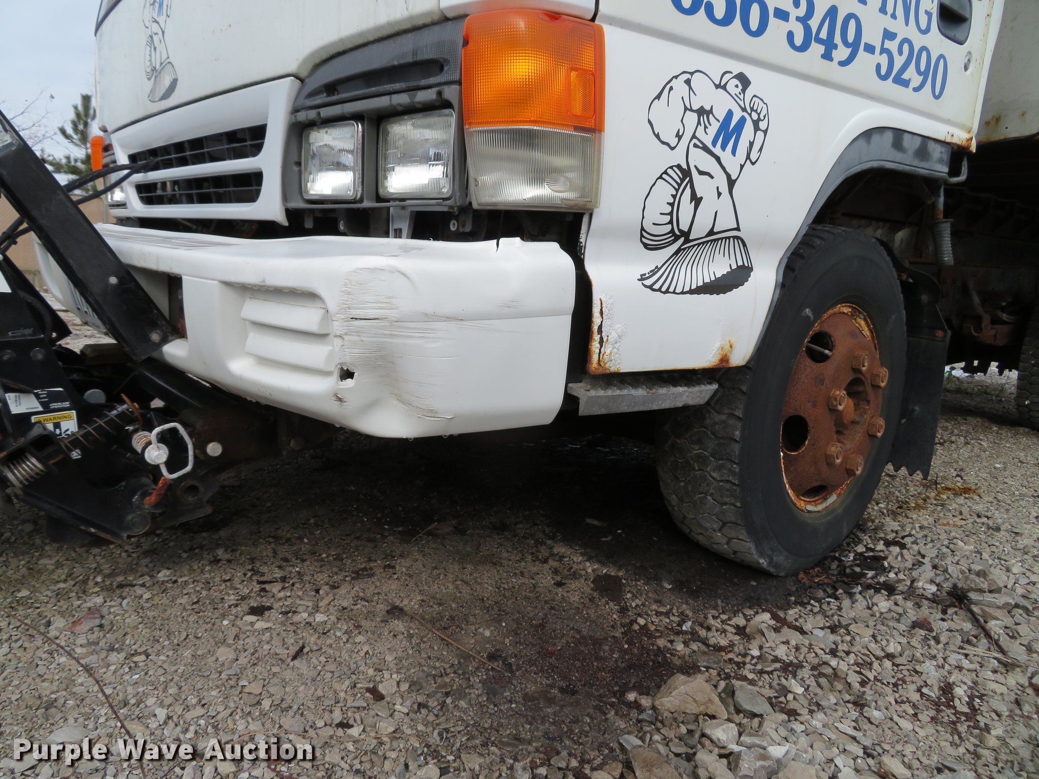 Purple Wave is selling a used Construction Dump Truck in Illinois. This item is a 2004 Isuzu NPC7SC dump truck with the following: 147,314 miles on odometer, Isuzu 4HE1-TC 4.75L four cylinder turbo diesel engine, Automatic transmission, Single axle, AC and heat, AM/FM, (2) beacon lights, Galion-Godwin 100UDS-11 stainless steel dump bed, 11'L x 95"W, 13" side height, 10" side board height, Single ram electric over hydraulic hoist, Manual operated end gate, Roll tarp, Salt Dogg 92440SSA under tailgate spreader, Blizzard 8600SW snow plow, 8'7"W, Single fuel tank, Spirng suspension, Hydraulic brakes, LT225/75R16 tires, GVWR 12,000 lbs, FAWR 4,700 lbs, RAWR 7,950 lbs, Windshield chipped, Non-operational engine, Possible electrical issues