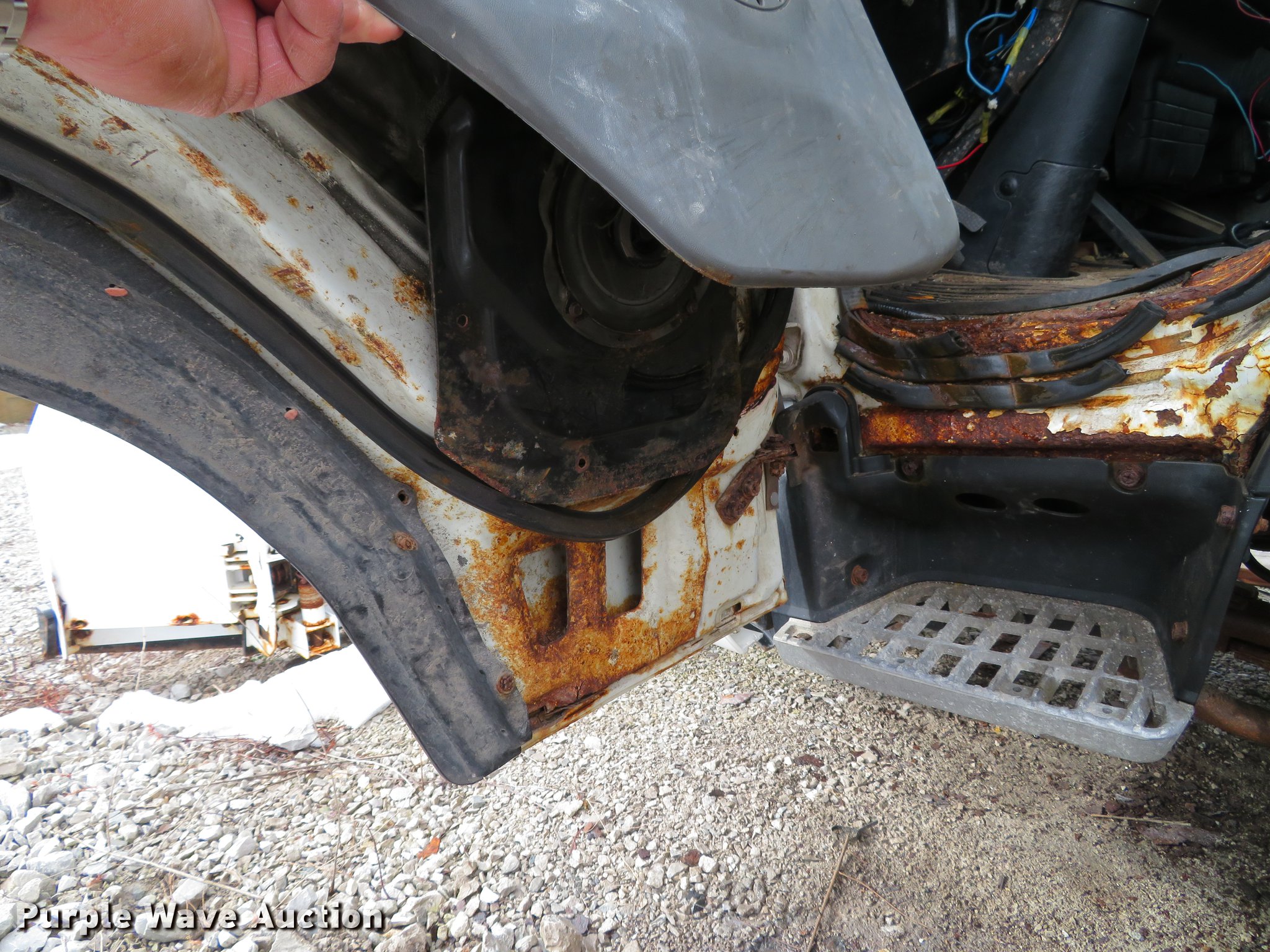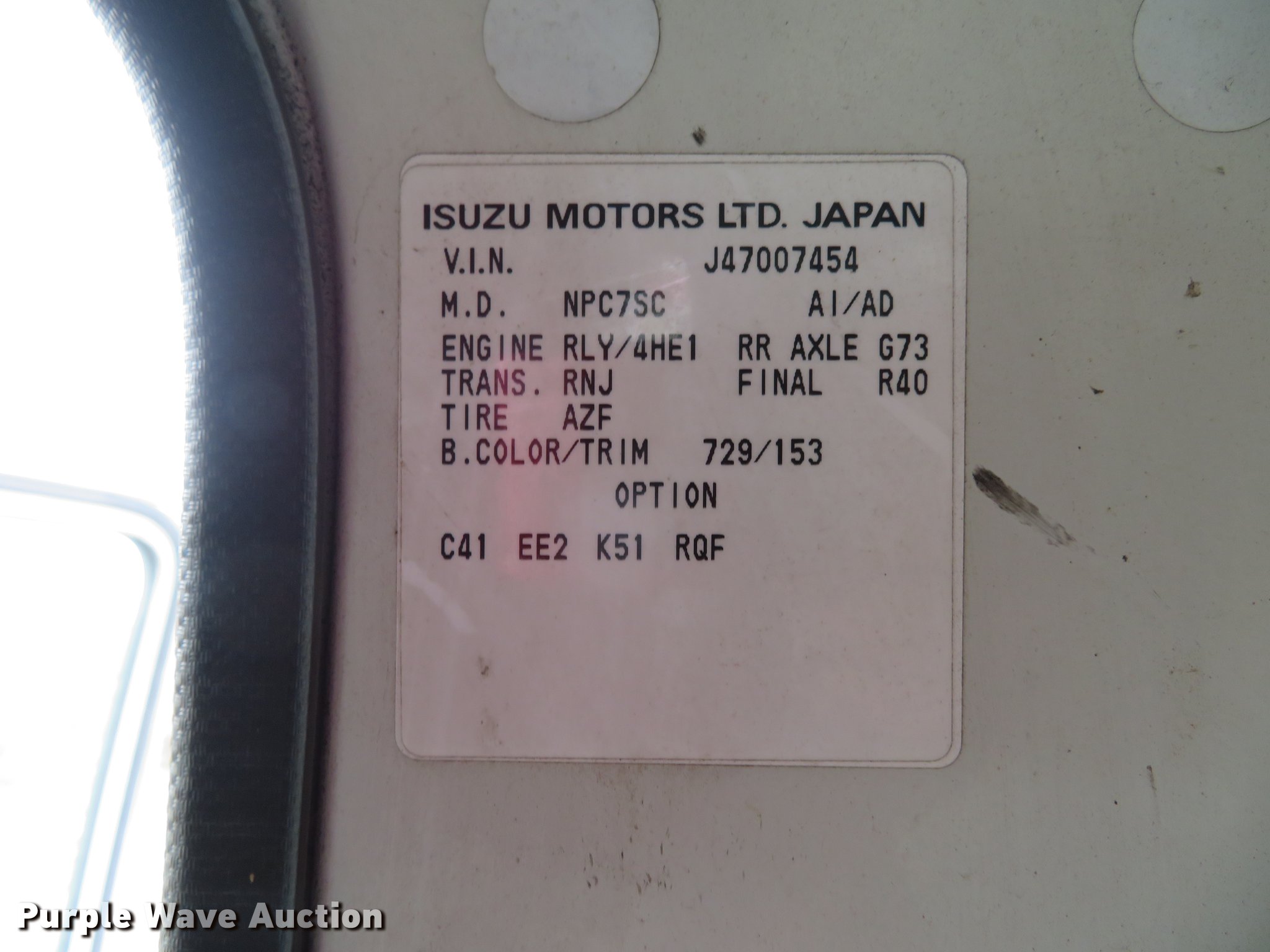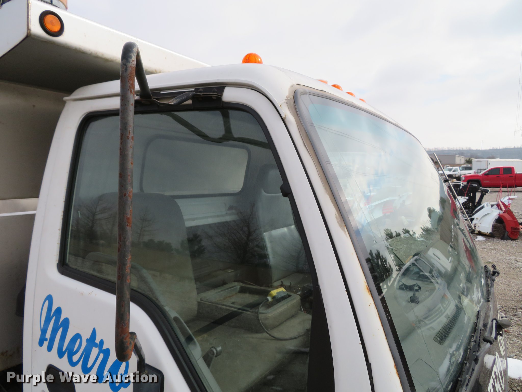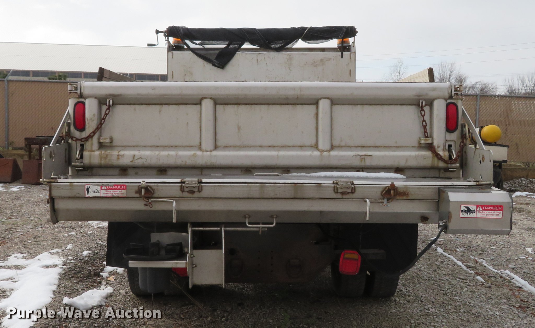 Purple Wave is selling a used Construction Dump Truck in Illinois. This item is a 2004 Isuzu NPC7SC dump truck with the following: 147,314 miles on odometer, Isuzu 4HE1-TC 4.75L four cylinder turbo diesel engine, Automatic transmission, Single axle, AC and heat, AM/FM, (2) beacon lights, Galion-Godwin 100UDS-11 stainless steel dump bed, 11'L x 95"W, 13" side height, 10" side board height, Single ram electric over hydraulic hoist, Manual operated end gate, Roll tarp, Salt Dogg 92440SSA under tailgate spreader, Blizzard 8600SW snow plow, 8'7"W, Single fuel tank, Spirng suspension, Hydraulic brakes, LT225/75R16 tires, GVWR 12,000 lbs, FAWR 4,700 lbs, RAWR 7,950 lbs, Windshield chipped, Non-operational engine, Possible electrical issues