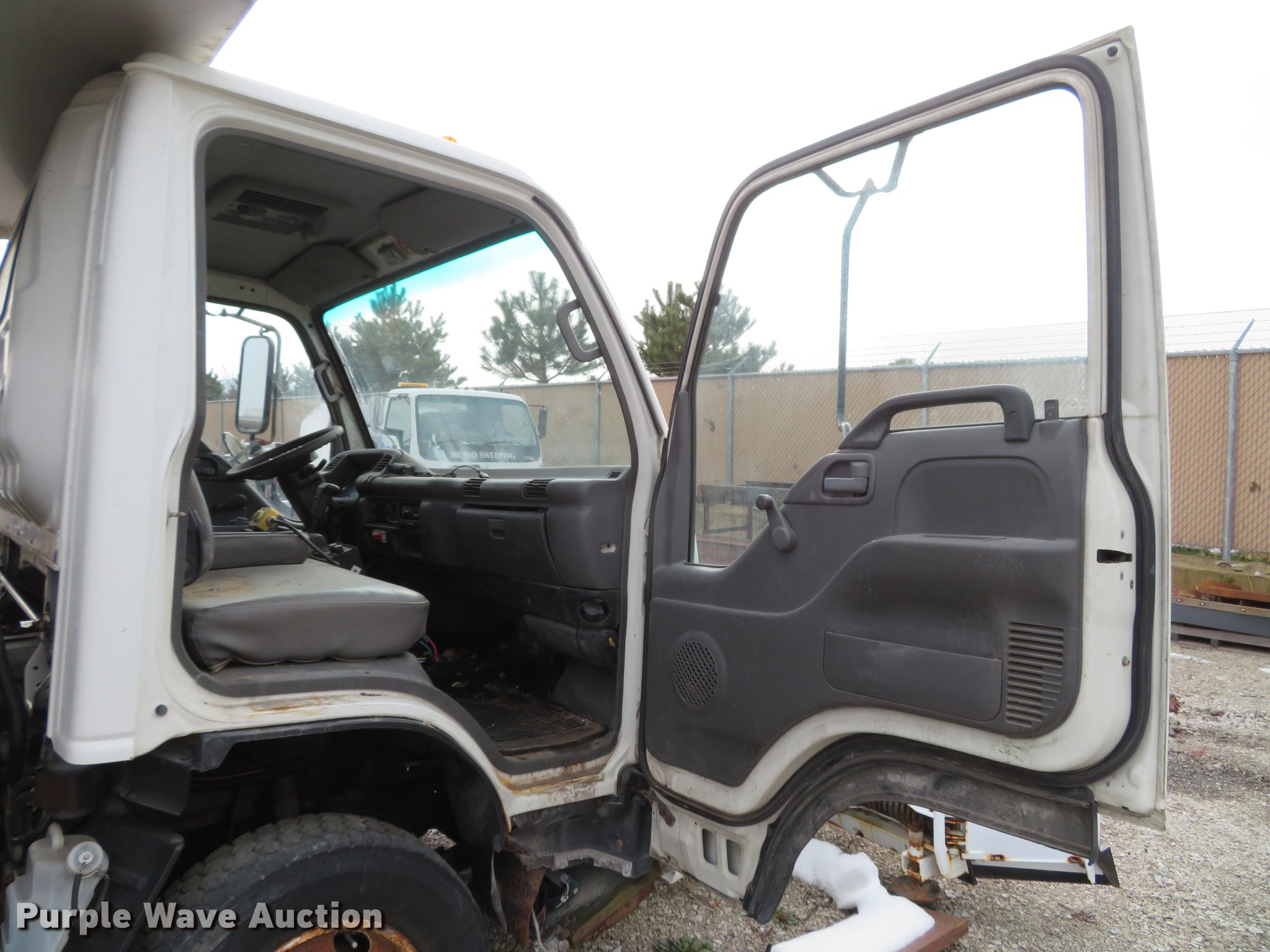 2004 Isuzu NPC7SC dump truck. 147,314 miles on odometer, Isuzu 4HE1-TC 4.75L four cylinder turbo diesel engine, Automatic transmission, Single axle, AC and heat, AM/FM, (2) beacon lights, Galion-Godwin 100UDS-11 stainless steel dump bed 11'L x 95"W, 13" side height, 10" side board height, Single ram electric over hydraulic hoist, Manual operated end gate, Roll tarp, Salt Dogg 92440SSA under tailgate spreader, Blizzard 8600SW snow plow 8'7"W, Single fuel tank, Spirng suspension, Hydraulic brakes, LT225/75R16 tires, GVWR 12,000 lbs, FAWR 4,700 lbs, RAWR 7,950 lbs, Windshield chipped, Non-operational engine Possible electrical issues. Illinois title. JALB4B14947007454. Metro Sweeping. 301 Transpoint Dr. Dupo, IL 62239