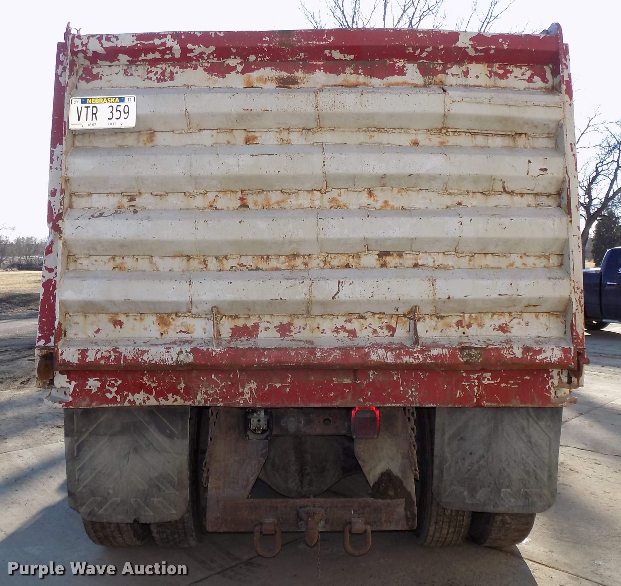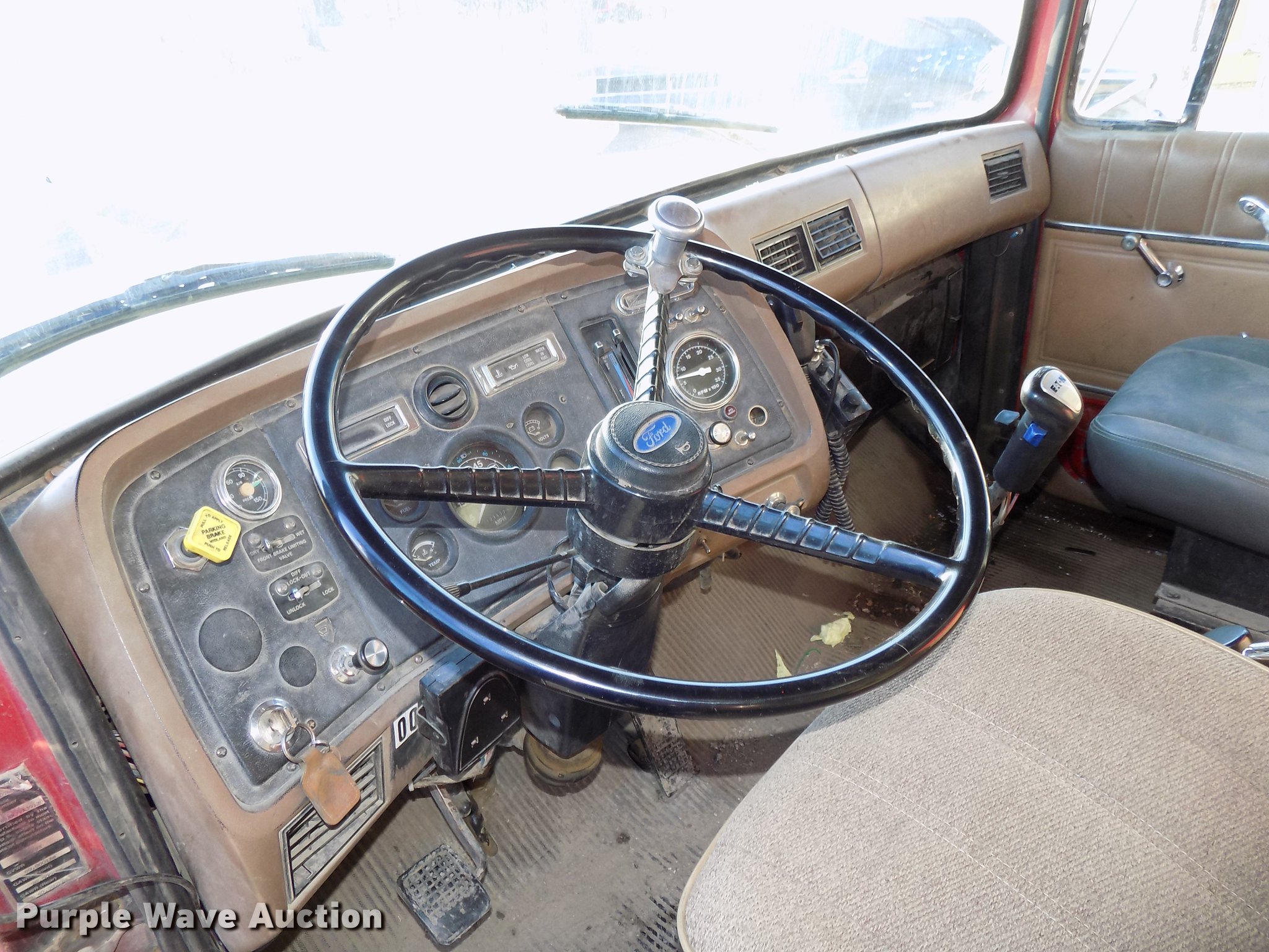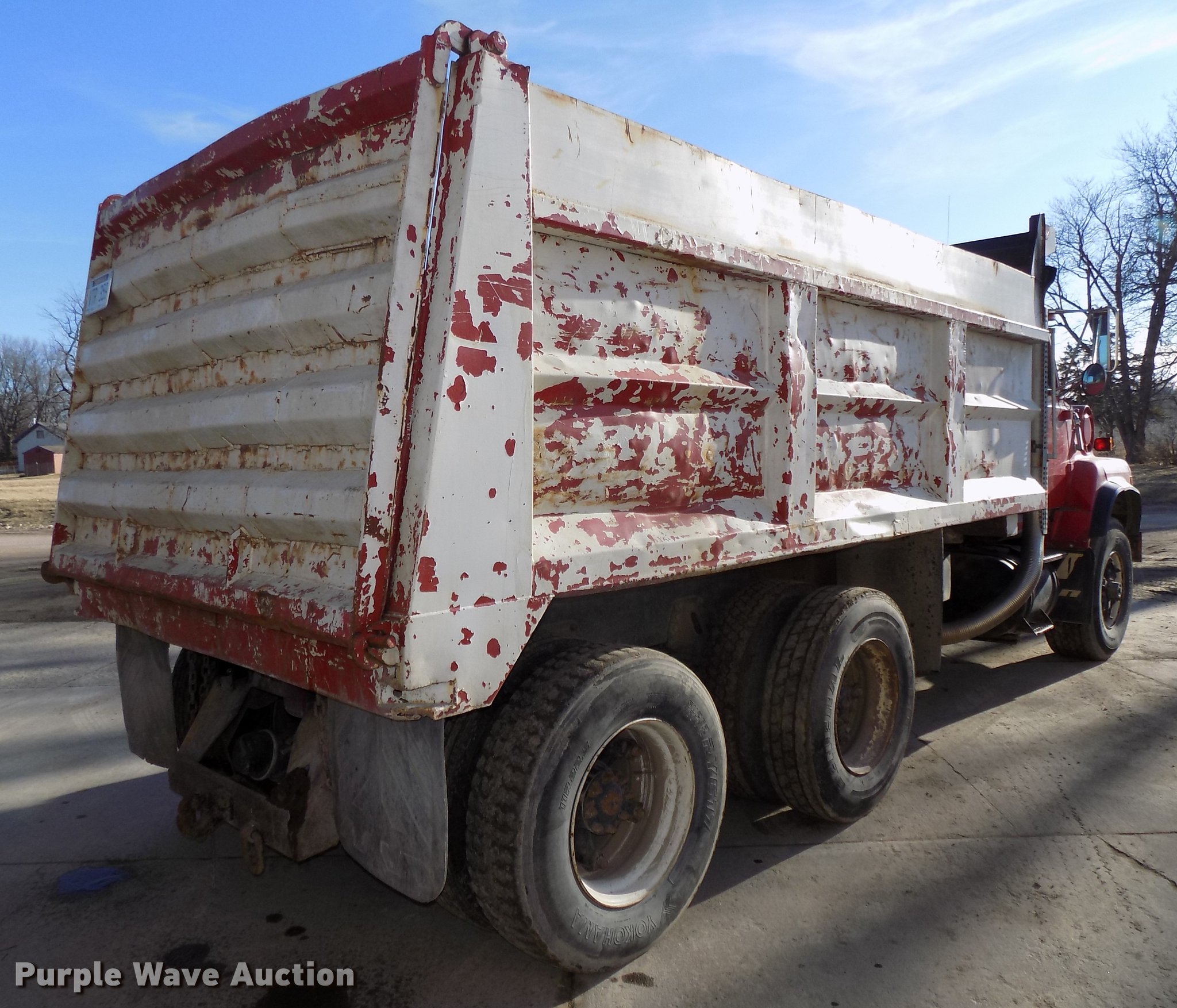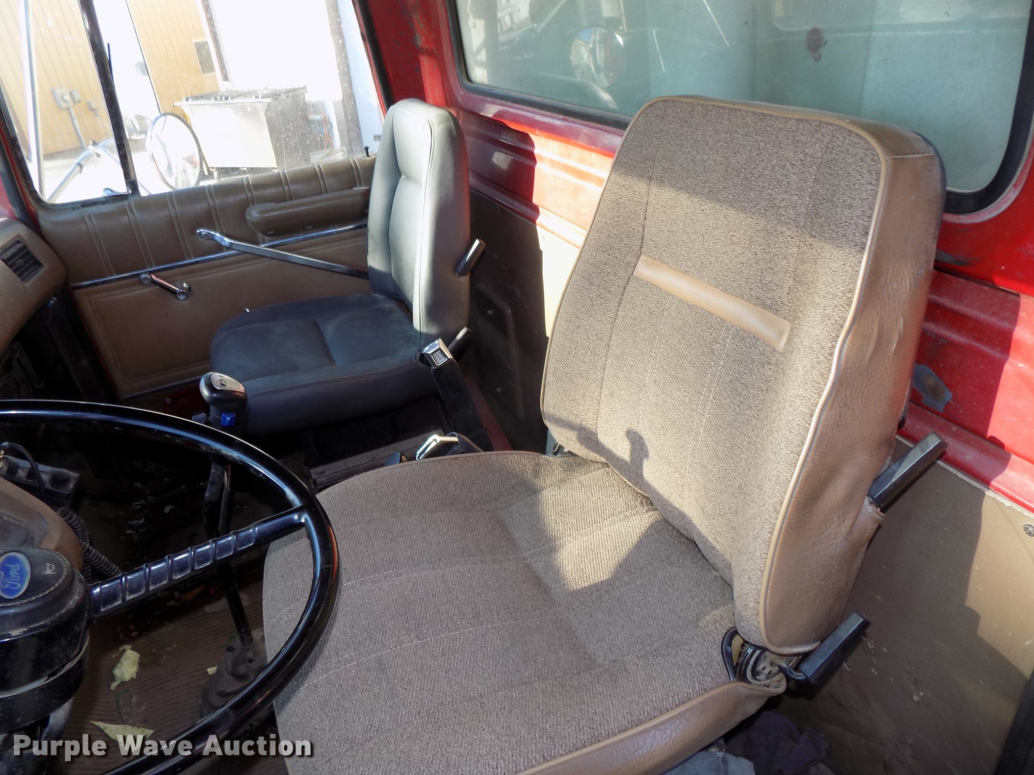 Purple Wave is selling a used Construction Dump Truck in Nebraska. This item is a 1988 Ford LT8000 dump truck with the following: 123,637 miles on odometer, Miles may vary, still in use, 7.8L six cylinder turbo diesel engine, 240 HP, Serial 791571, Eaton Fuller Road Ranger 10 speed manual transmission, Model RT6613, Tandem axle, Inter-axle differential lock, AC and heat, Heated mirrors, Air suspension seat, Trailer brake controller, Block heater, Front tow hooks, Exterior visor, PTO, 15'L x 96"W steel dump bed, 54" side height, 12" side board height, Single ram hoist, Air operated end gate, Dual fuel tanks, Single rear exhaust, 185" wheelbase, Spring over walking beam suspension, Air brakes, 425/65R22.5 front tires, 11R22.5 rear tires, GVWR 60,000 lbs, FAWR 20,000 lbs, IAWR 20,000 lbs, RAWR 20,000 lbs, CB not included