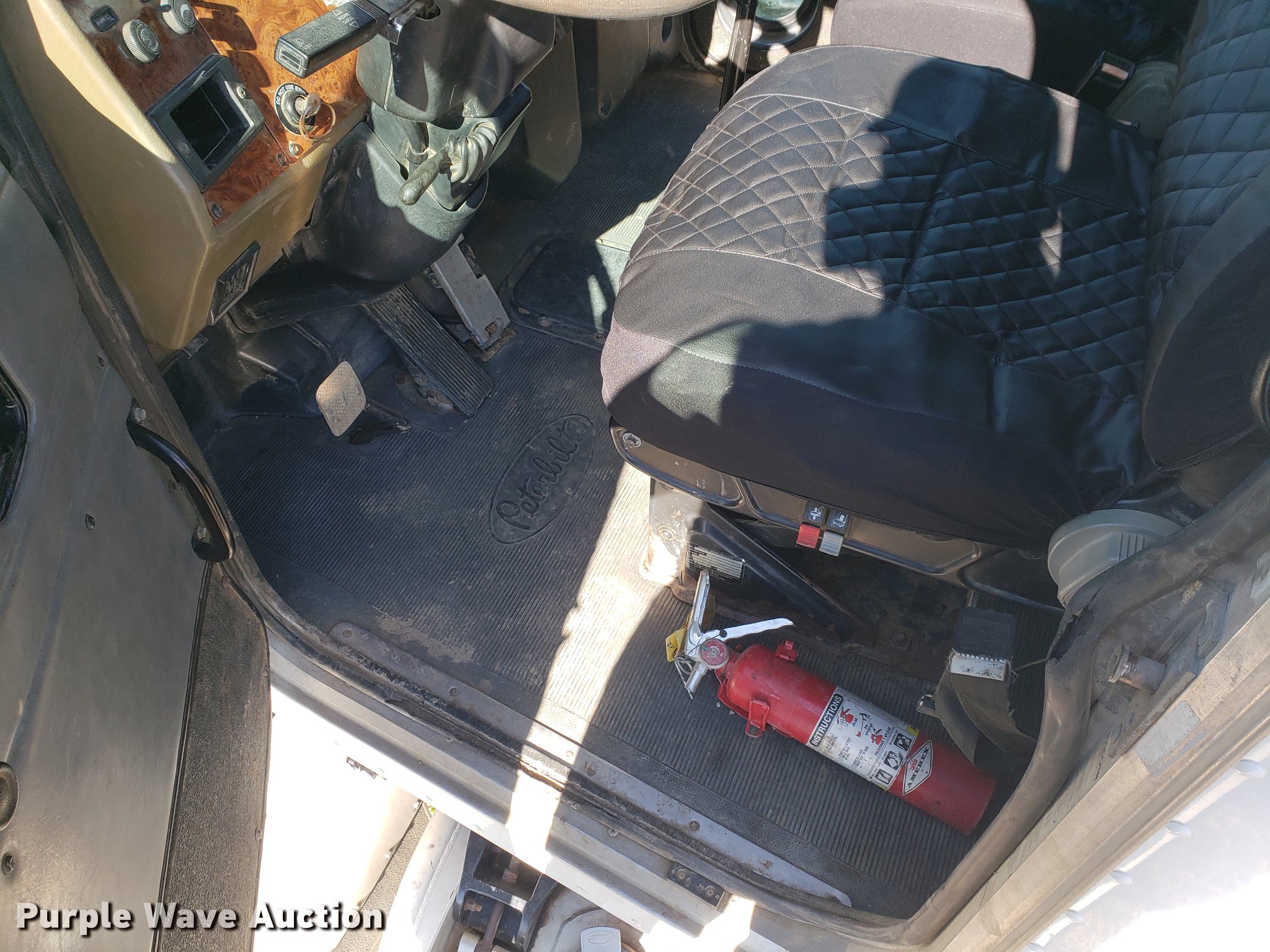 Purple Wave is selling a used Crane Truck in Missouri. This item is a 2002 Peterbilt 330 crane truck with the following: 176,040 miles on odometer, 3,241 hours on meter, Caterpillar 3126 7.2L L6 turbo diesel engine, Eaton Fuller 10 speed manual transmission, Lo-Lo, AC and heat, AM/FM, Heated mirrors, Air suspension seat, PTO, 21'L x 100"W flatbed, 28"H removable sides, Terex Stinger TC-4792 crane, 92' boom, 26' to 44' extendable jib, 47,000 lbs maximum lift capacity, (5) hydraulic outriggers, Spring over walking beam suspension, Air brakes, 425/65R22.5 front tires, 11R22.5 rear tires, GVWR 60,000 lbs