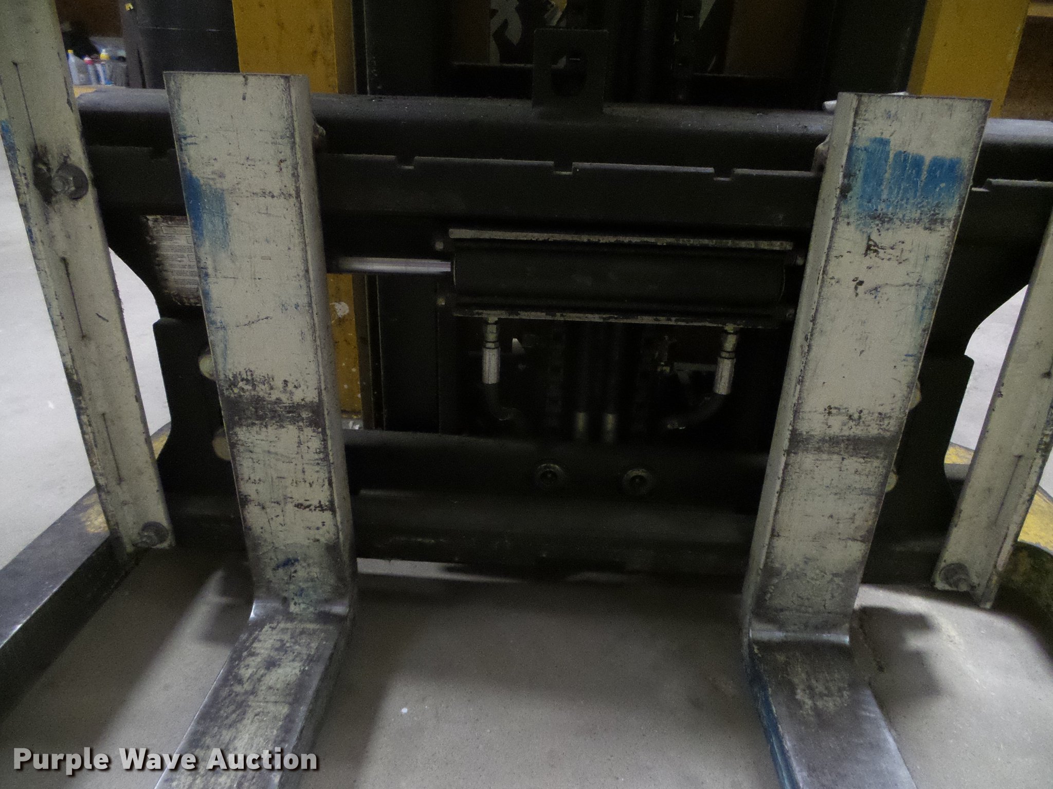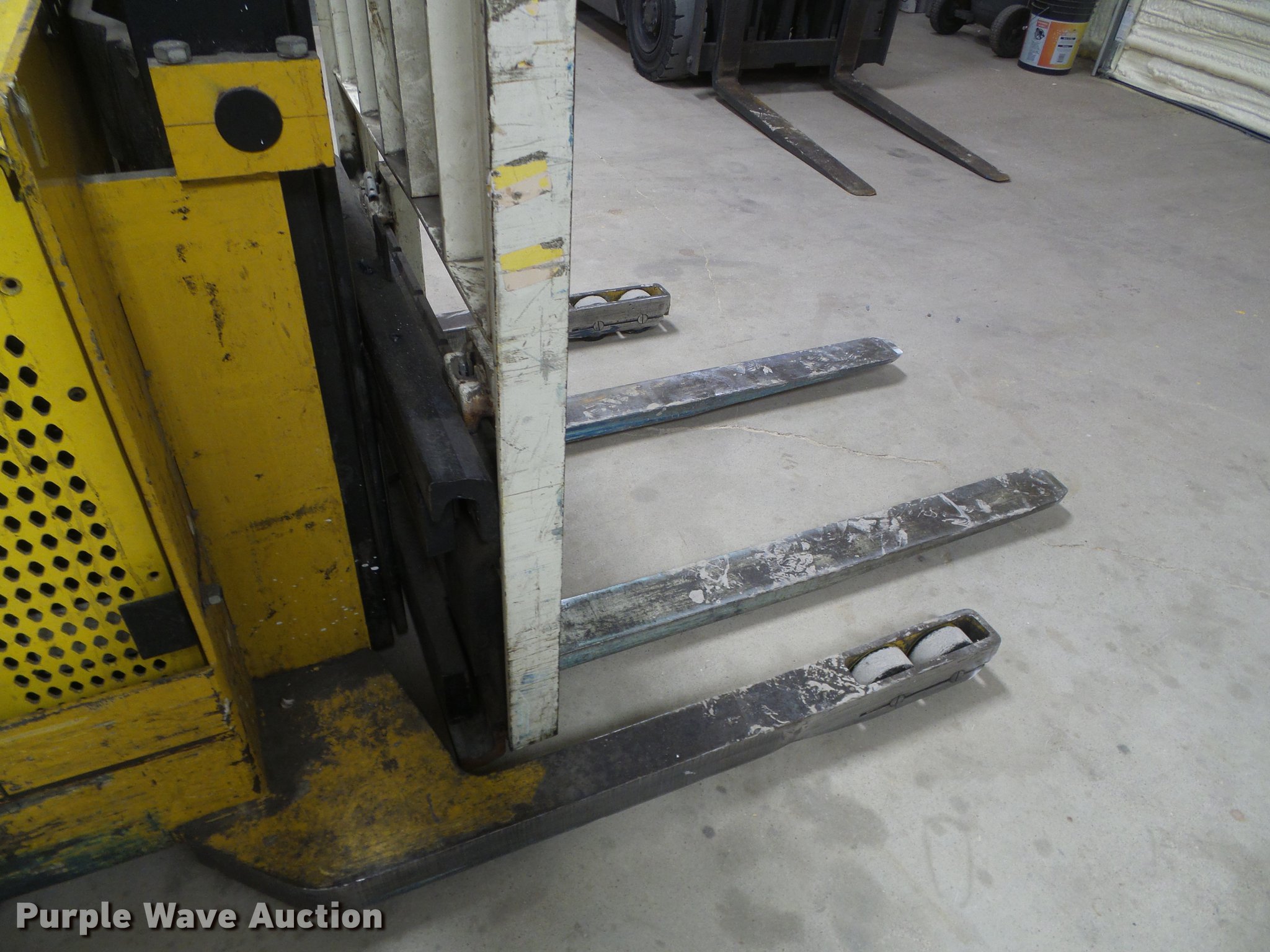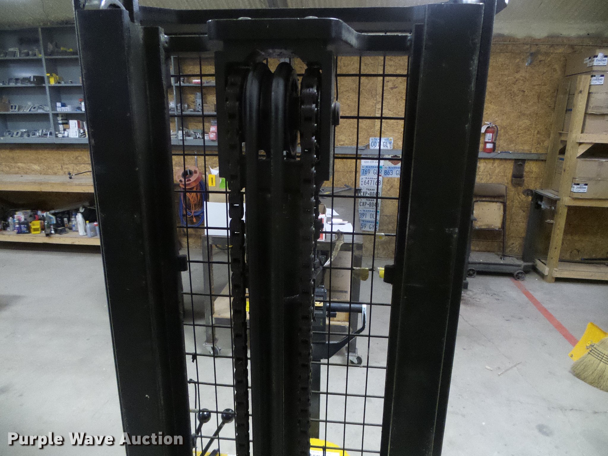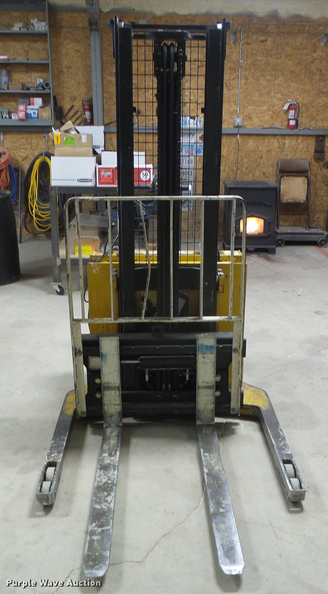 Purple Wave is selling a used Warehouse Forklift in Kansas. This item is a Yale MSW030SCN forklift with the following: 6,303 hours on meter, 12V electric operation, Hydrostatic transmission, 1F-1R gears, 2,800 lbs max lift capacity, 126" max lift height, Two stage mast, Side shift, 42" fork length, Solid tires, Charger included, Serial B820N02678W