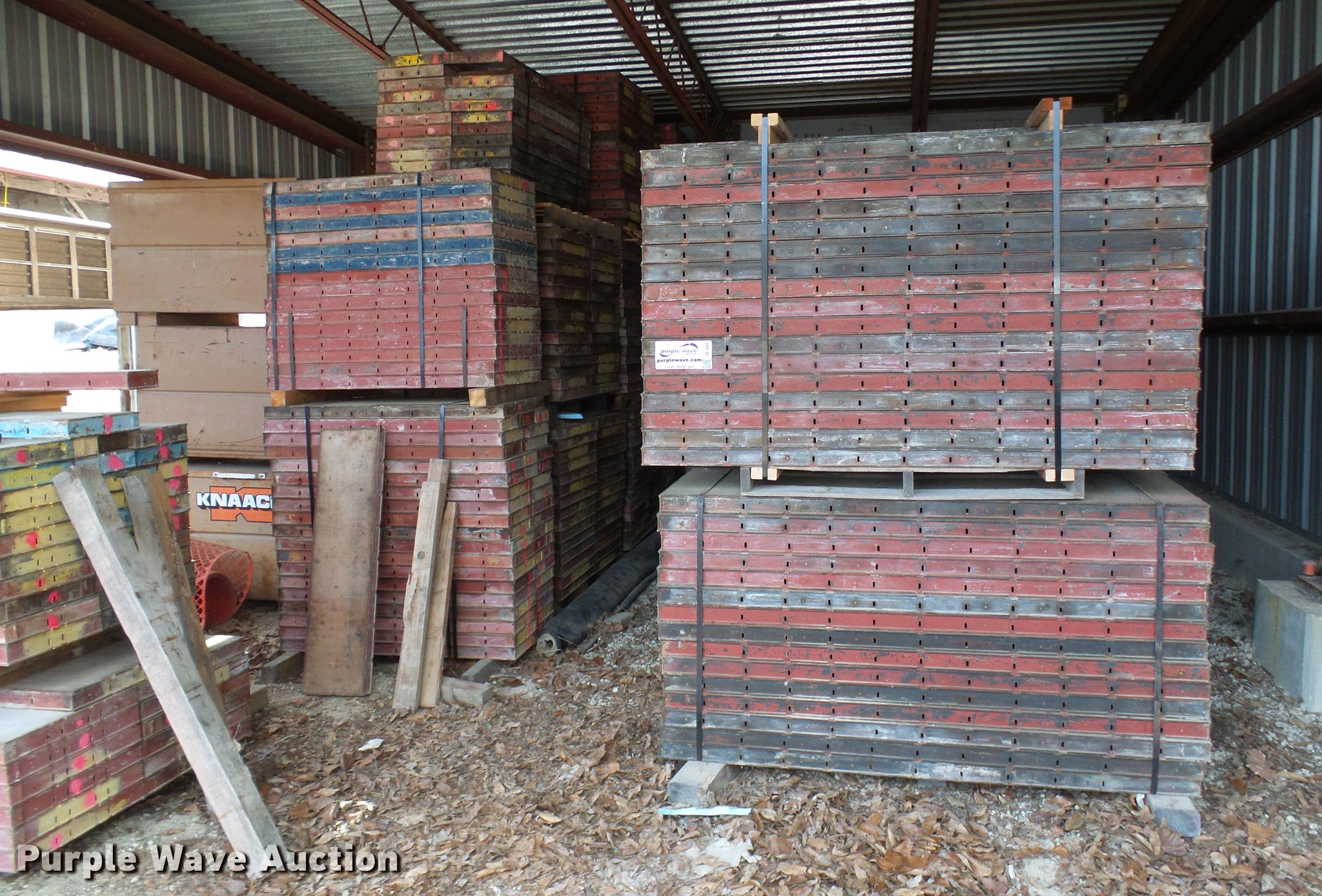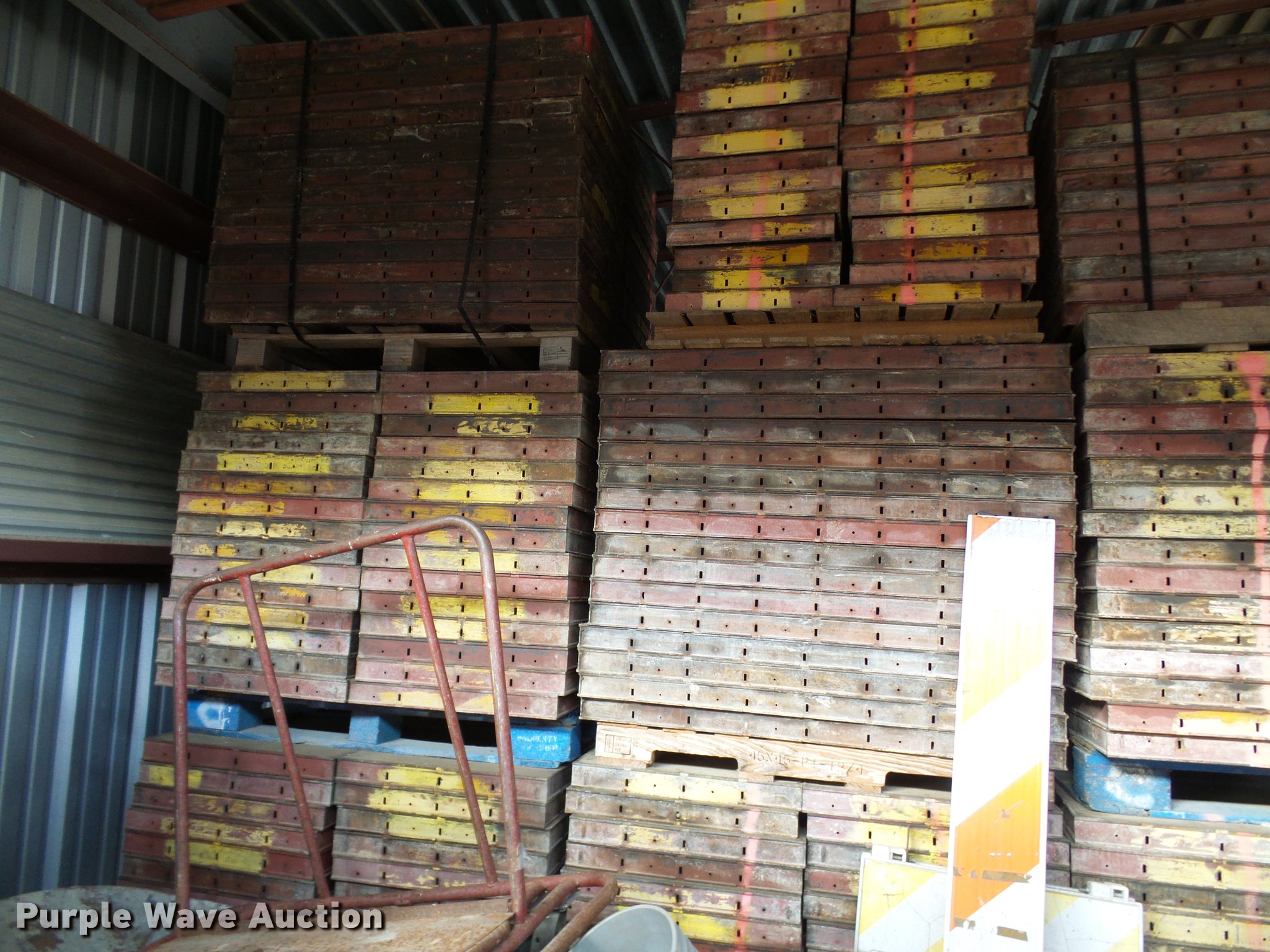 Purple Wave is selling a used Concrete Equip. or Acces. in Missouri. This item is a Simpson concrete forms with the following: (214) 48" x 24", (6) 48" x 22", (9) 48" x 20", (40) 48" x 18", (6) 48" x 16, (9) 48" x 14", (28) 48" x 12", (8) 48" x 8", (12) 48" x 6", (6) 48" x 4", (4) 72" x 6", (3) 72" x 10", (7) 72" x 12", (8) 72" x 8", (4) 72" x 18", (6) 72" x 20", (6) 72" x 22", (65) 72" x 24", 96" x 6", (2) 96" x 12", (24) 96" x 14", (2) 96" x 18", (3) 96" x 22", (49) 96" x 24", (19) 48" x 6" inside corners, (2) 48" x 4" inside corners, (25) 48" outside corners, (13) buckets of pins, (125) stiff back whaler pins, (25) scaffold brackets, (75) turn buckles, (8) 16" x 96" pilaster forms, (3) 6" x 72" inside corners, (4) 6" x 72" swivel inside corners, (7) 72" outside corners, (5) 2" x 72" fillers, (3) 1.5" x 72" fillers, (4) 1" x 72" fillers, (8) 6" x 96" inside corners, (4) 96" outside corners