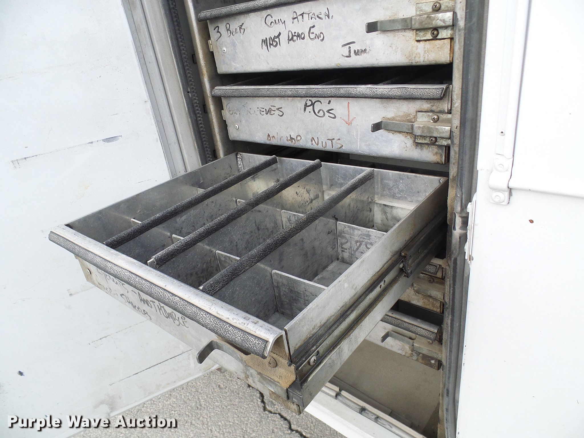 Purple Wave is selling a used Bucket Truck in Missouri. This item is a 2003 Freightliner Business Class M2 bucket truck with the following: 132,950 miles on odometer, 14,868 hours on meter, Caterpillar 3126 7.2L L6 turbo diesel engine, Automatic transmission, Single axle, AC and heat, AM/FM, Suspension seat, Backup camera, PTO, Beacon light, Front tow hooks, Alec utility bed, 15'L, Shelving, Slide-out drawers, Serial 37-75934, Altec AM855 boom, 700 lbs maximum lift capacity, 55' maximum lift height, 2,000 lbs maximum jib capacity, Man basket, Ground and platform controls, Boom rotation, Articulating, insulated boom, Rope material handler, (4) outriggers, Serial 1002BB3105, Certification valid through November 2019, Single fuel tank, Pintle hitch, Trailer wiring, Spring suspension, Air brakes, 315/80R22.5 front tires, 11R22.5 rear tires, GVWR 35,000 lbs