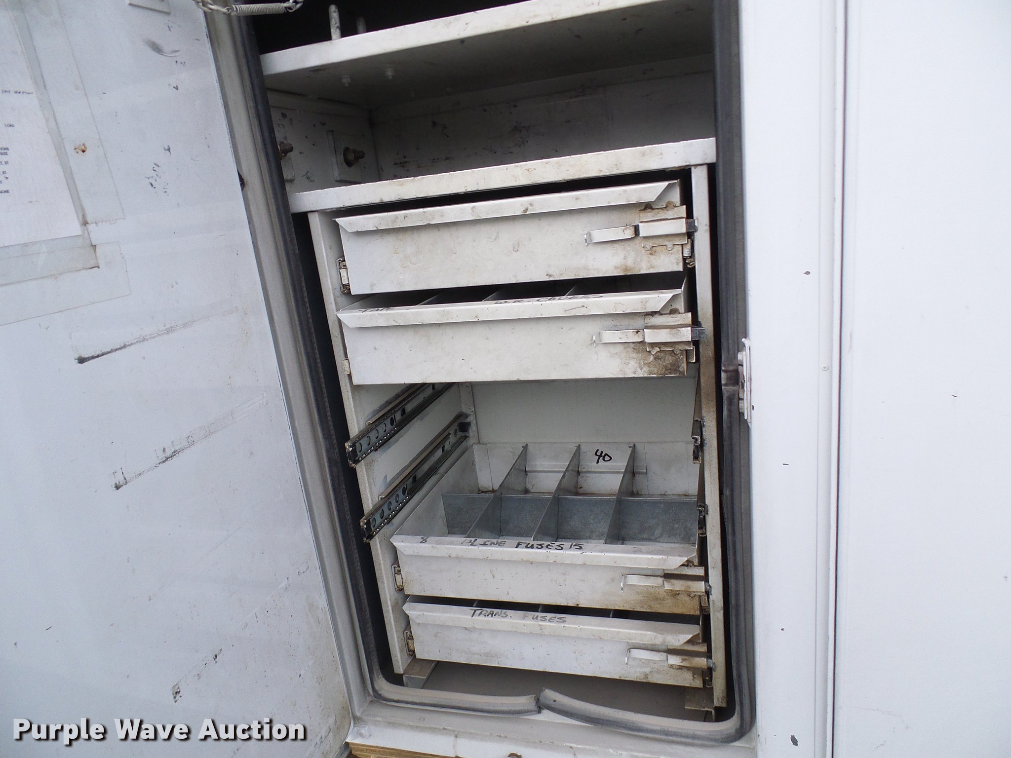 2003 Freightliner Business Class M2 bucket truck. 132,950 miles on odometer, 14,868 hours on meter, Caterpillar 3126 7.2L L6 turbo diesel engine, Automatic transmission, Single axle, AC and heat, AM/FM, Suspension seat, Backup camera, PTO, Beacon light, Front tow hooks, Alec utility bed 15'L, Shelving, Slide-out drawers, Serial 37-75934, Altec AM855 boom 700 lbs maximum lift capacity, 55' maximum lift height, 2,000 lbs maximum jib capacity, Man basket Ground and platform controls, Boom rotation, Articulating, insulated boom, Rope material handler, (4) outriggers, Serial 1002BB3105, Certification valid through November 2019, Single fuel tank, Pintle hitch, Trailer wiring, Spring suspension, Air brakes, 315/80R22.5 front tires, 11R22.5 rear tires, GVWR 35,000 lbs. Missouri title. 1FVABXAK23HK86578. Boone Electric Cooperative. 1413 Rangeline St. Columbia, MO 65205