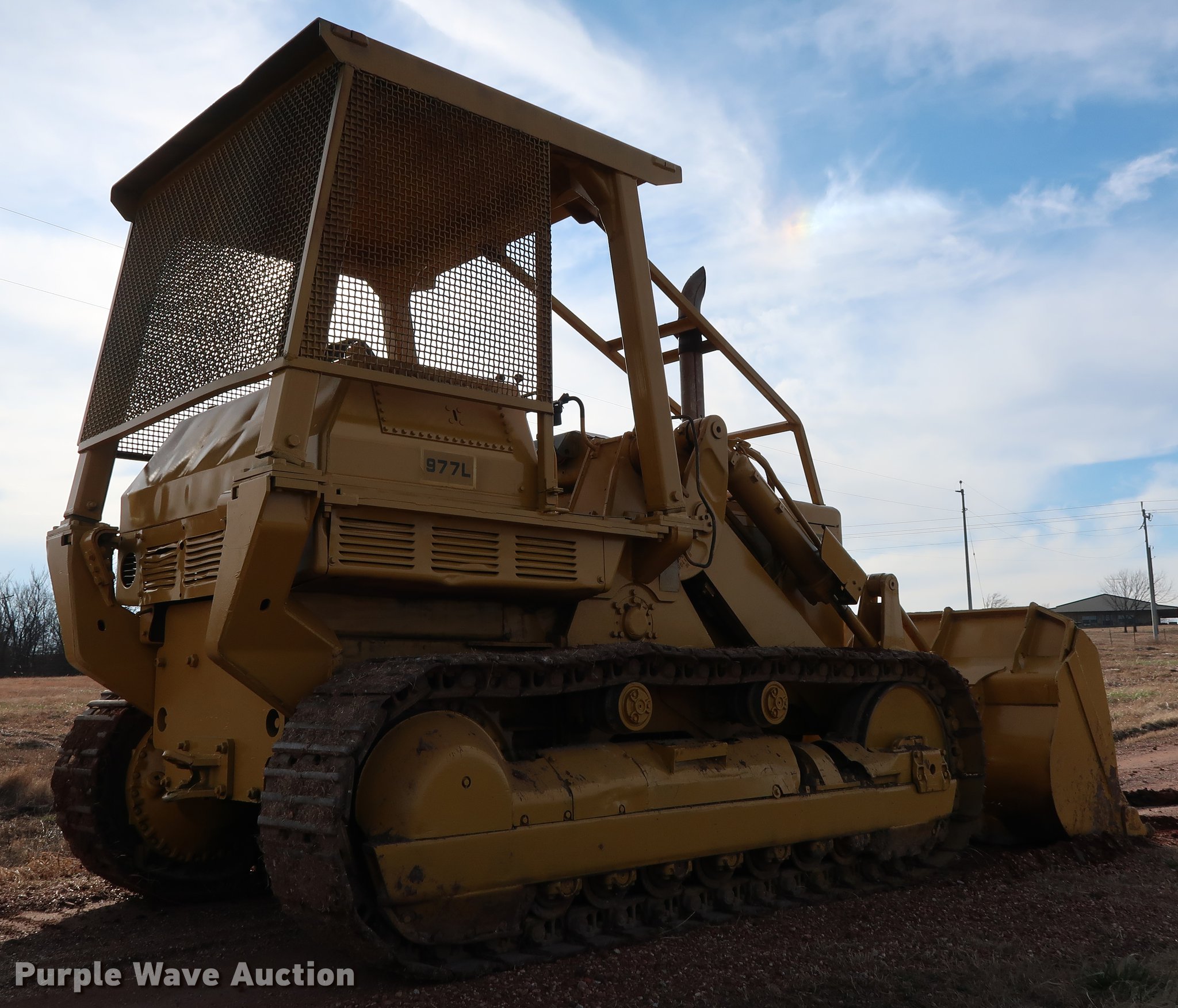 Purple Wave is selling a used Crawler Loader in Oklahoma. This item is a 1973 Caterpillar 977L track loader with the following: 48 hours on meter, Hour meter has been replaced, Caterpillar 3306 six cylinder turbo diesel engine, SErial 3N4192, Powershift transmission, 3F-3R gears, OROPS, Two-lever bucket control, Foot pedal steering, Sweeps, Side and rear screen guards, 96"W bucket, Bolt-on cutting edge, (8) teeth, Seven bottom rollers, 18"W triple grouser track pads, Serial 11K5382