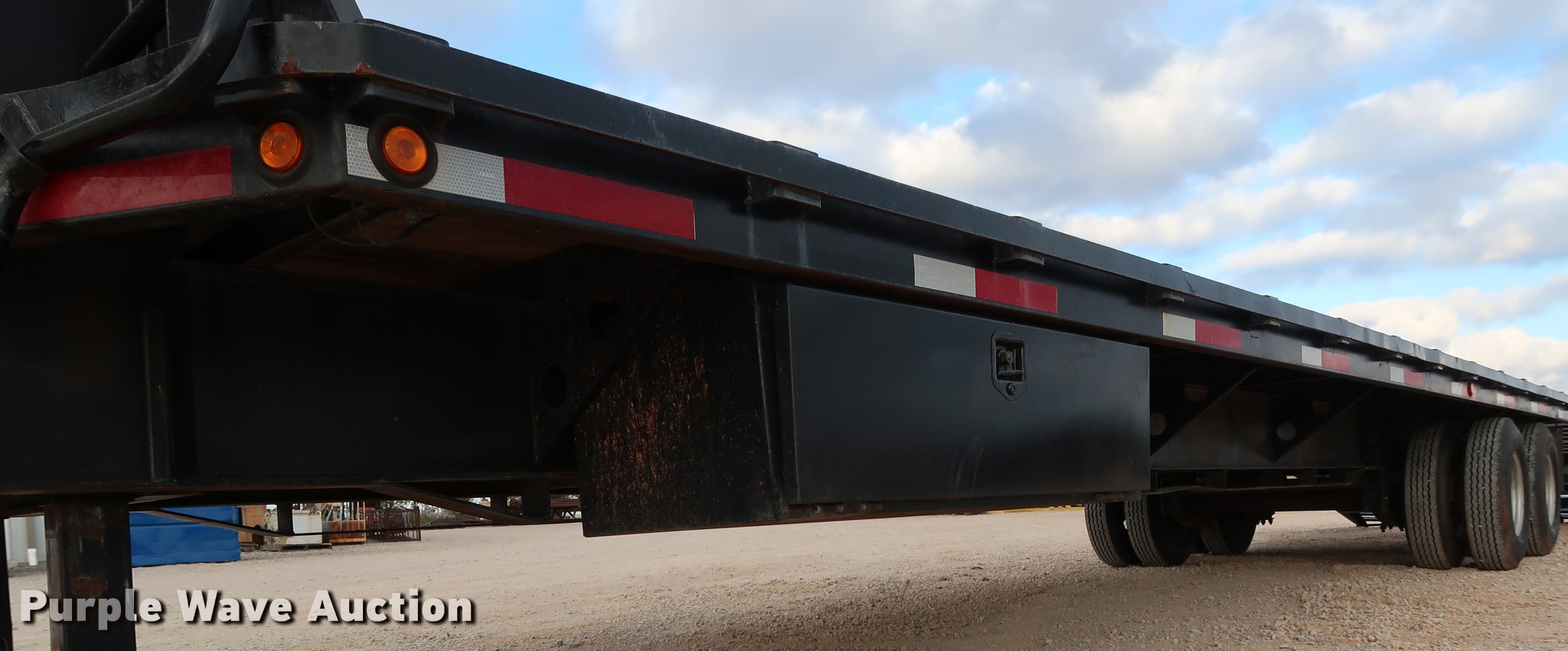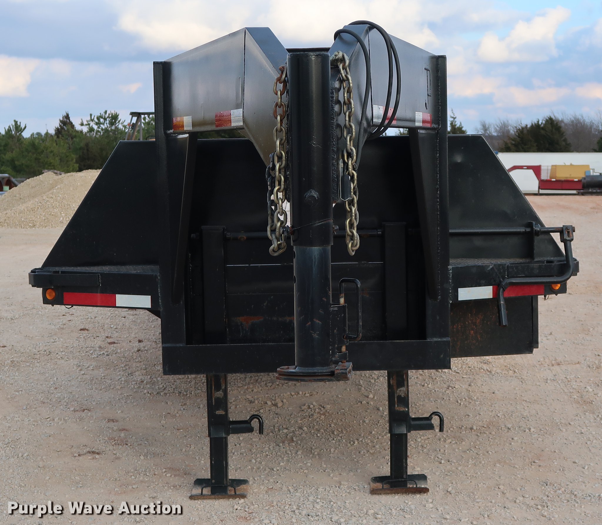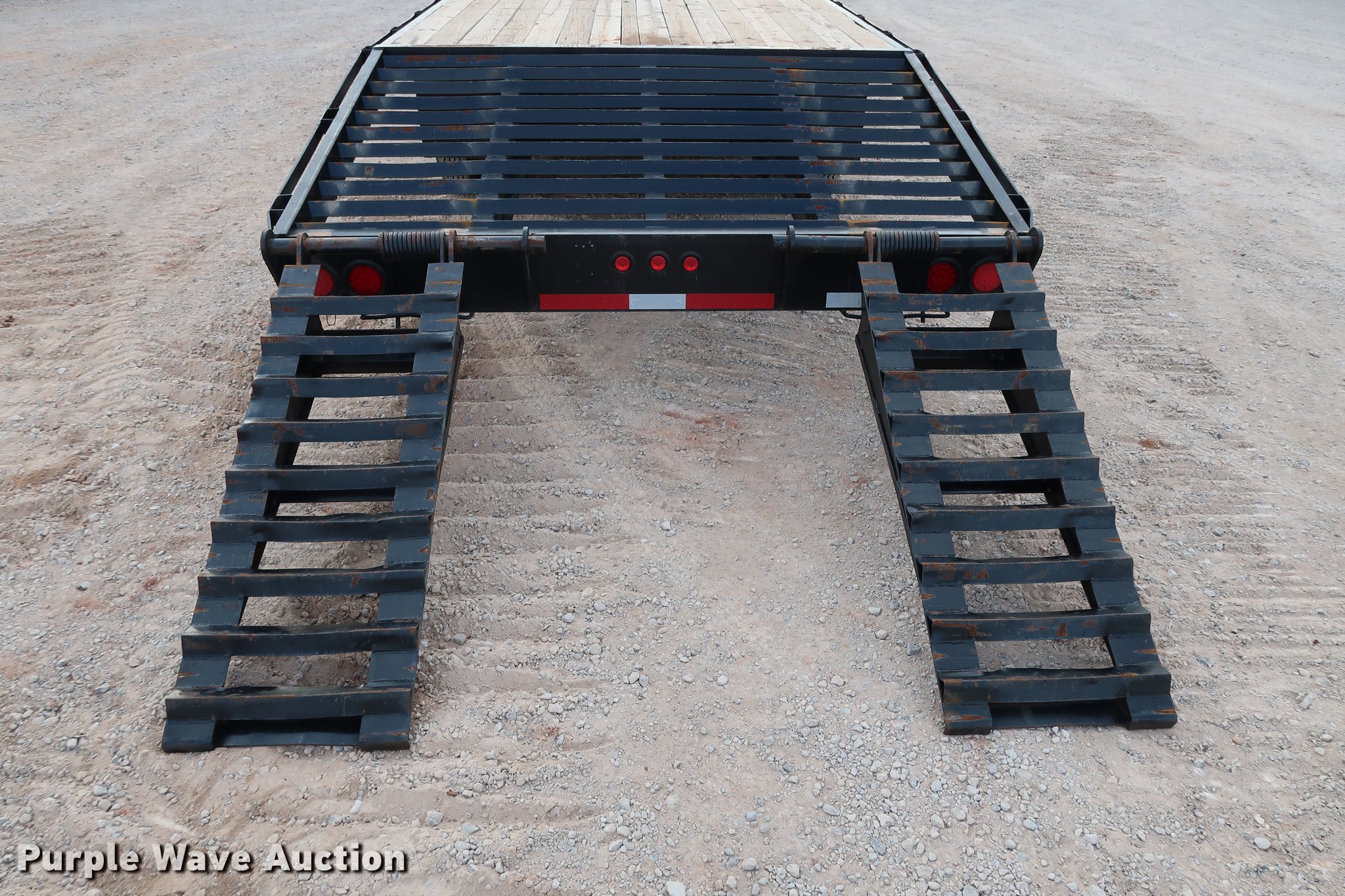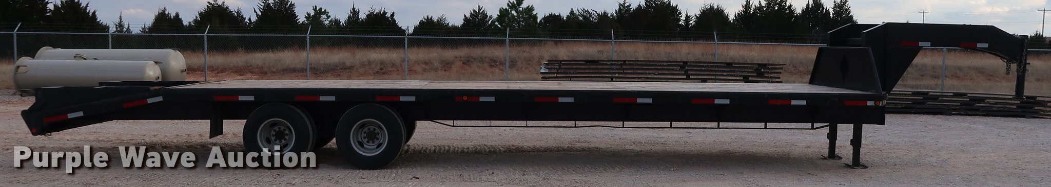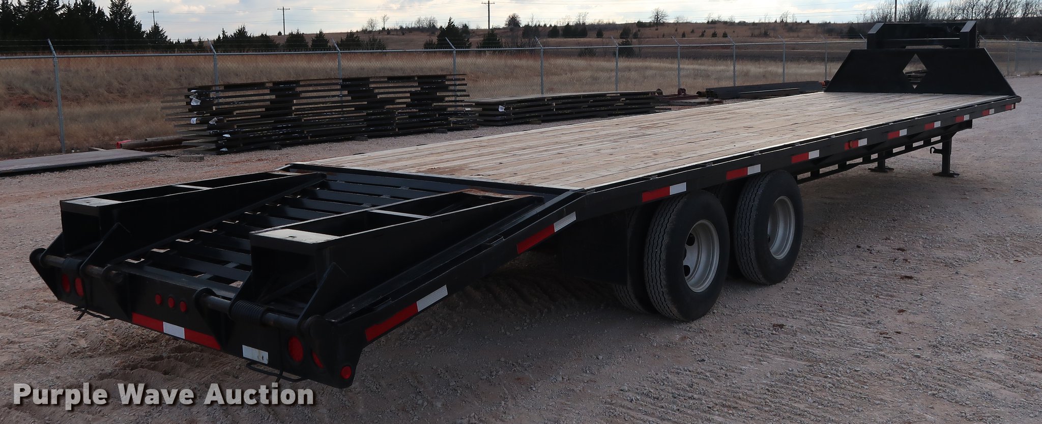 Purple Wave is selling a used Equip. Trailer in Oklahoma. This item is a Shop built equipment trailer with the following: 40' overall length, 28'L x 96"W steel deck, 5'L dovetail, 5'L x 20"W ramps, Stake side pockets, Gooseneck hitch, Dual leg landing gear, Spring suspension, Electric brakes, Tandem axle, GVWR 20,000 lbs, GAWR 10,000 lbs
