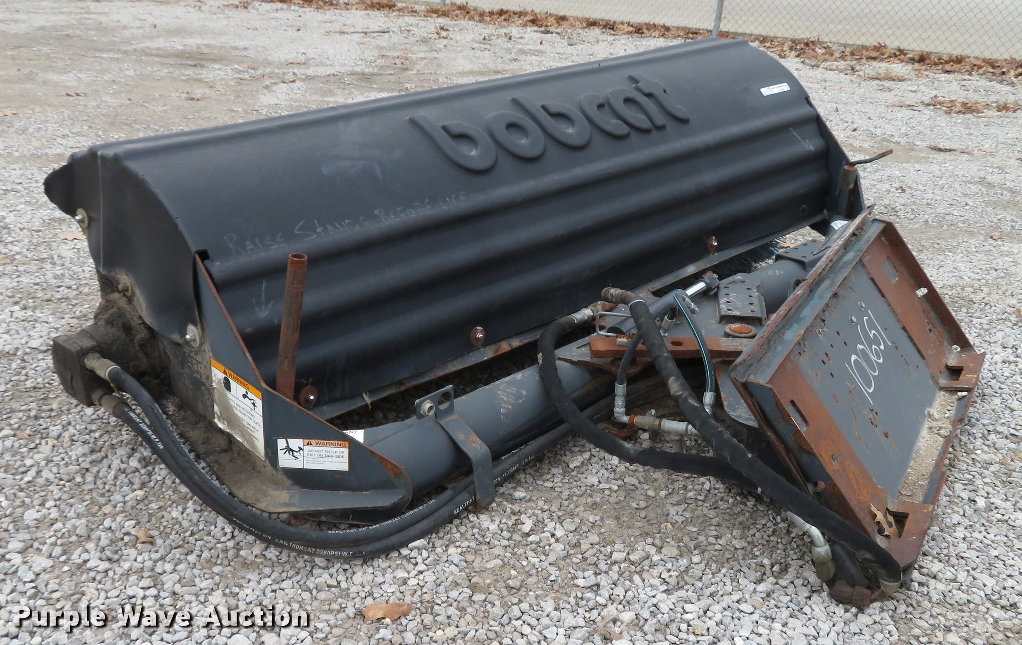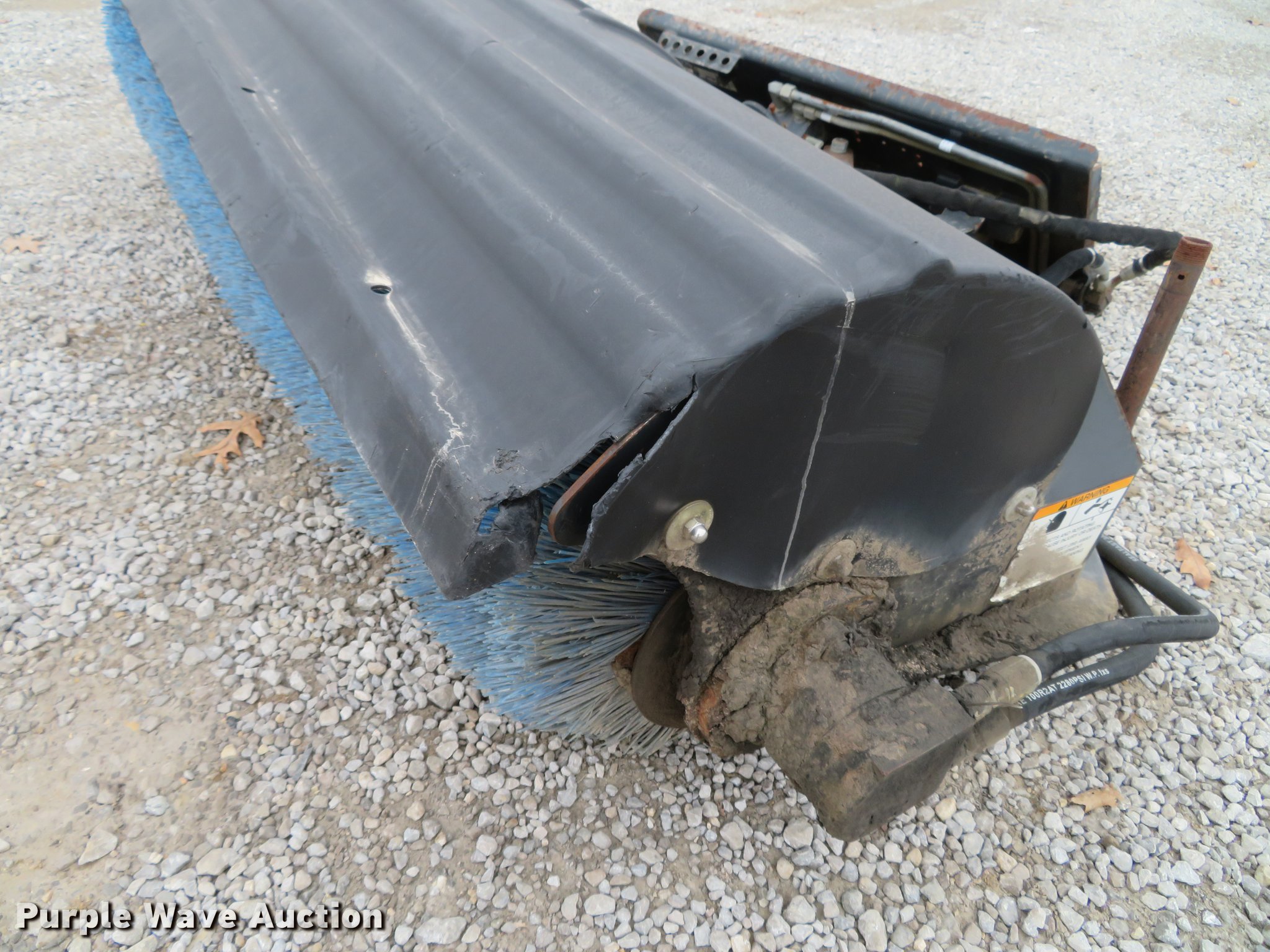 Purple Wave is selling a used Skid Steer Attach. in Missouri. This item is a Bobcat 84 skid steer broom with the following: 84"W, Poly broom bristles, Hydraulic angle cylinder disconnected, Serial 231412961, Unit# 10065