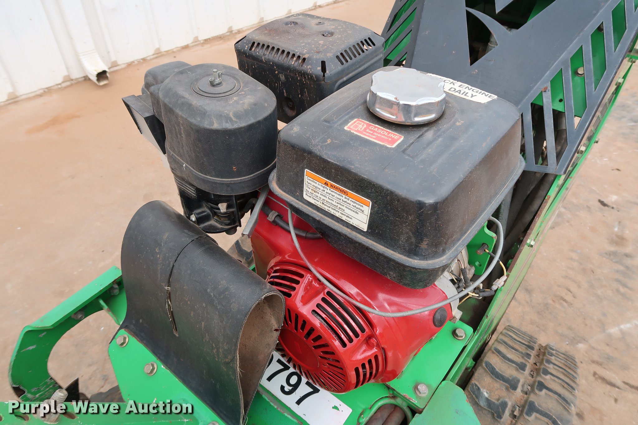 Purple Wave is selling a used Trencher or Rock Saw in Oklahoma. This item is a 2013 Vermeer RTX100 trencher with the following: Honda GX390 single cylinder gas engine, 13 HP, Hydrostatic transmission, 30" boom length, 4" cutting width, Shark teeth, Restraint bar, 16" diameter auger, 7"W rubber tracks, Serial 1VR9071R6D1001571