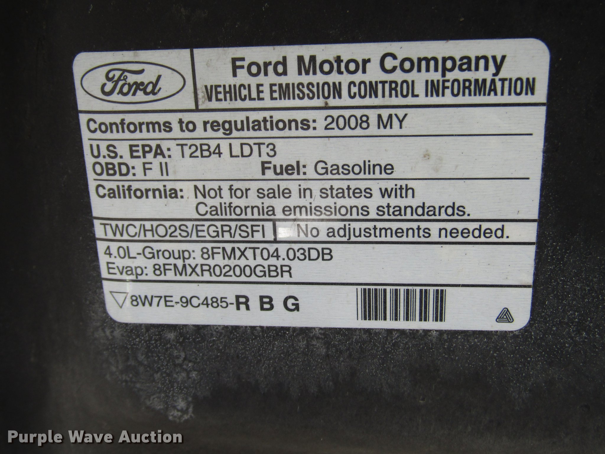 Purple Wave is selling a used Passenger Vehicle in Illinois. This item is a 2008 Ford Explorer SUV with the following: 118,834 miles on odometer, 4.0L V6 SOHC 16V gas engine, Automatic transmission, Four wheel drive, AC and heat, Cruise, AM/FM/CD, Power locks, windows, mirrors, and seat, Cloth interior, Fog lights, Receiver hitch, 245/65R17 tires, Police equipment not included, will be removed prior to auction