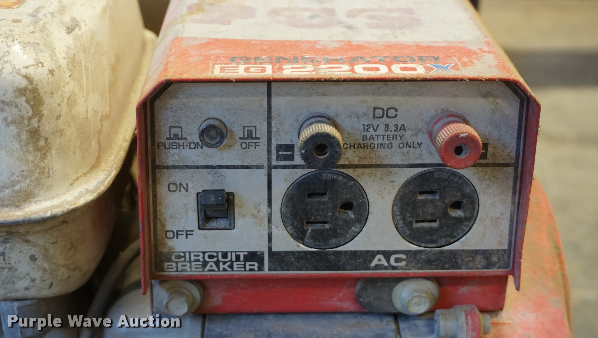 Purple Wave is selling a used Generator Set in Kansas. This item is a Honda EG2200X generator with the following: Honda gas engine, 120V