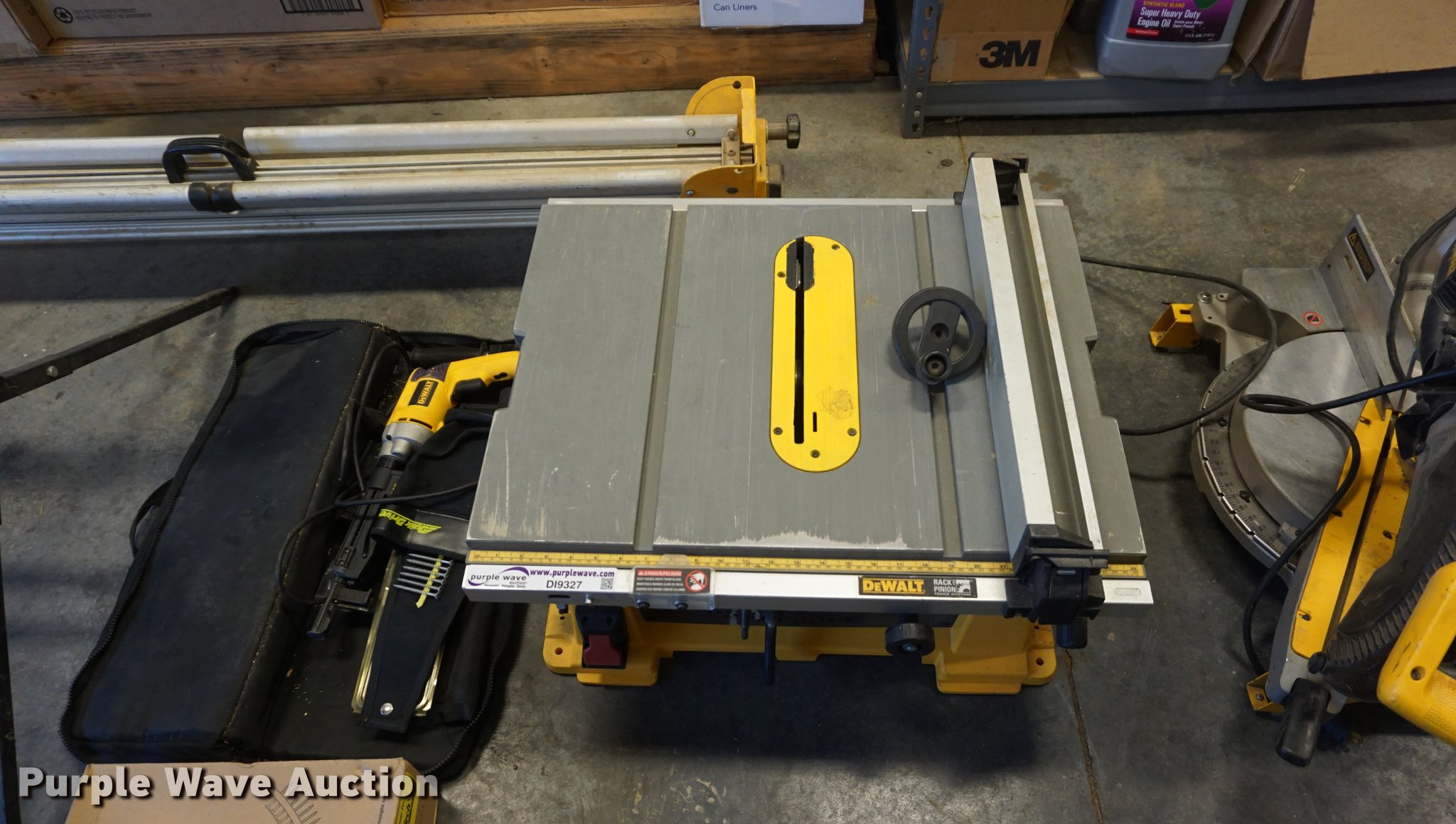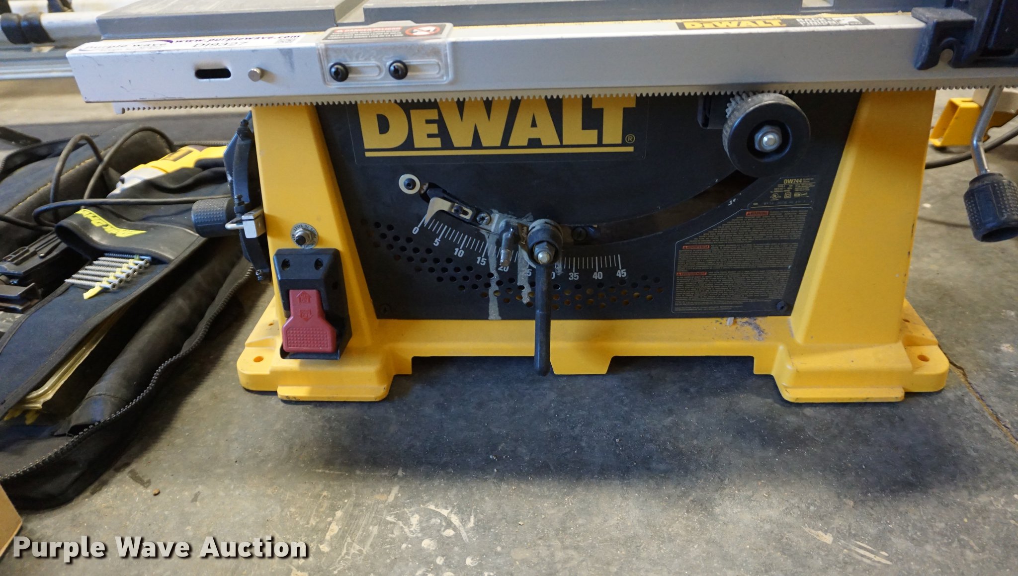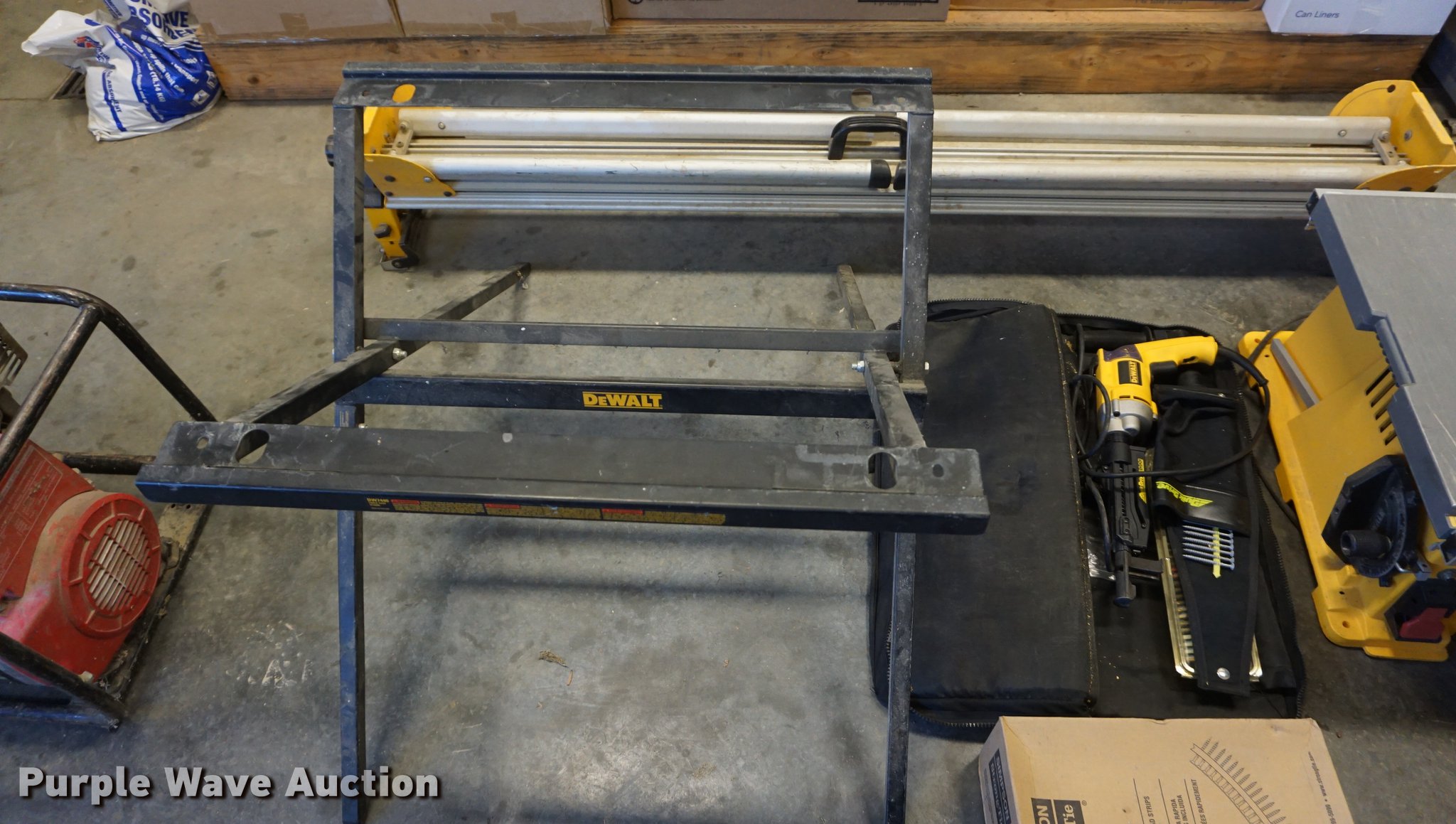 Purple Wave is selling a used Tools in Kansas. This item is a DeWalt tools with the following: DeWalt DW744 table saw, 115V, Stand, DeWalt DW708 miter saw, Stand, DeWalt Quick Drive 2000 screw driver, Screws
