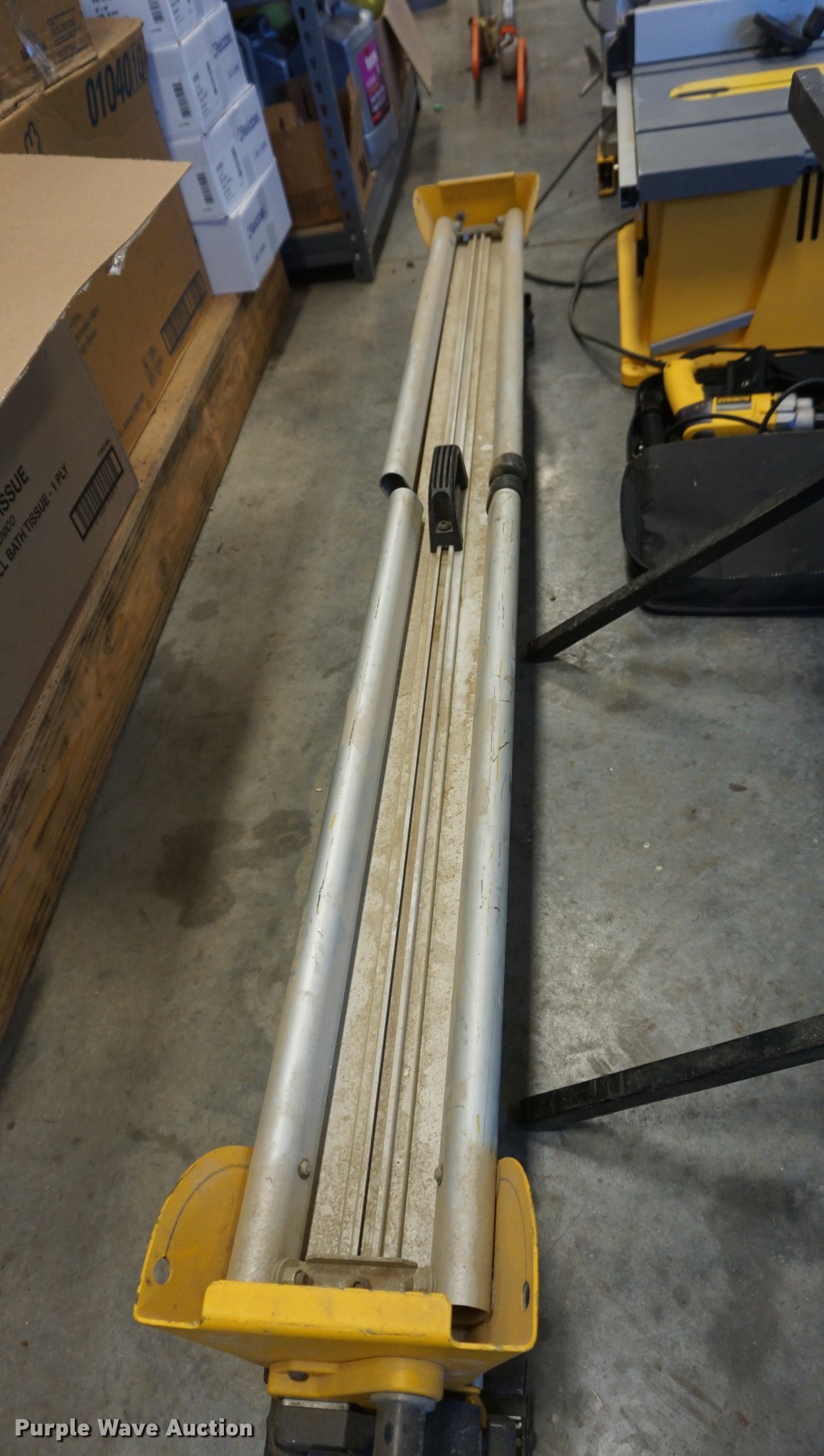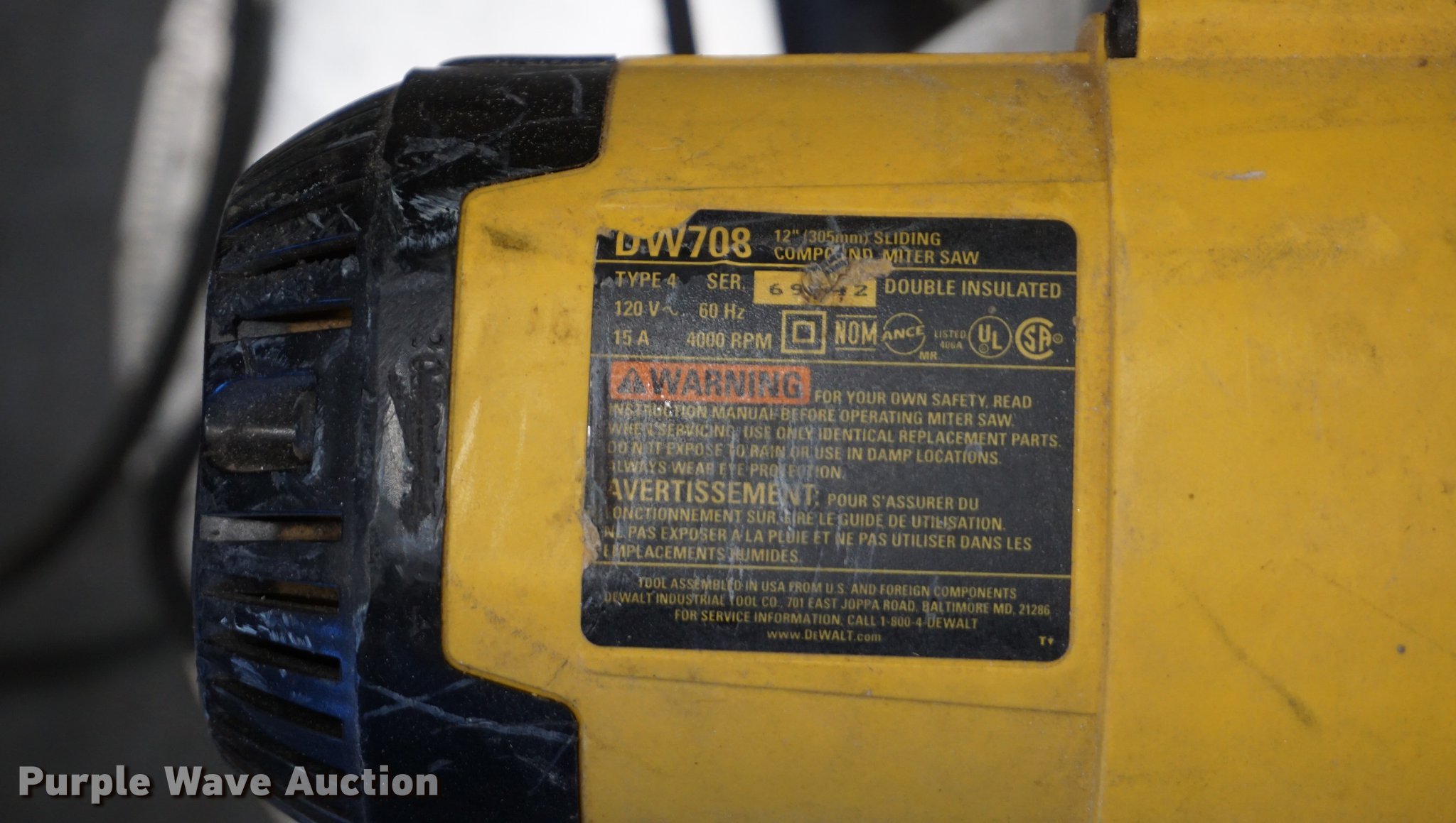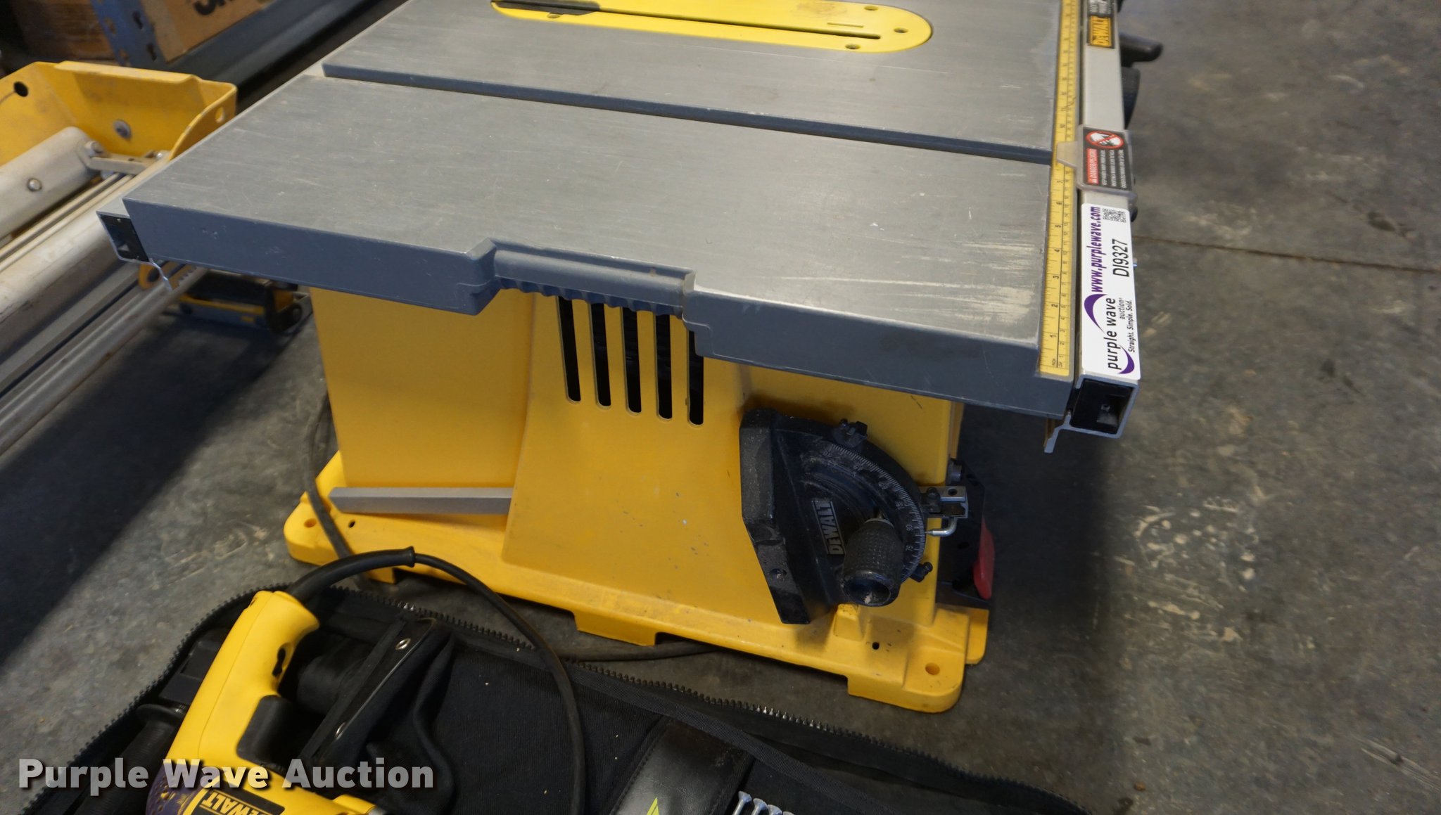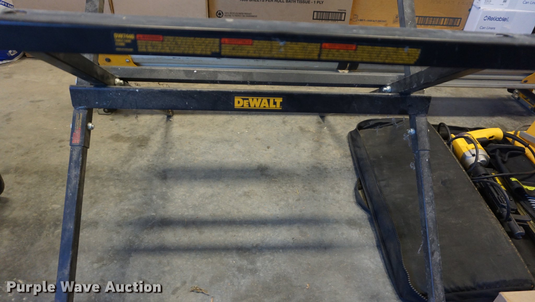 Purple Wave is selling a used Tools in Kansas. This item is a DeWalt tools with the following: DeWalt DW744 table saw, 115V, Stand, DeWalt DW708 miter saw, Stand, DeWalt Quick Drive 2000 screw driver, Screws