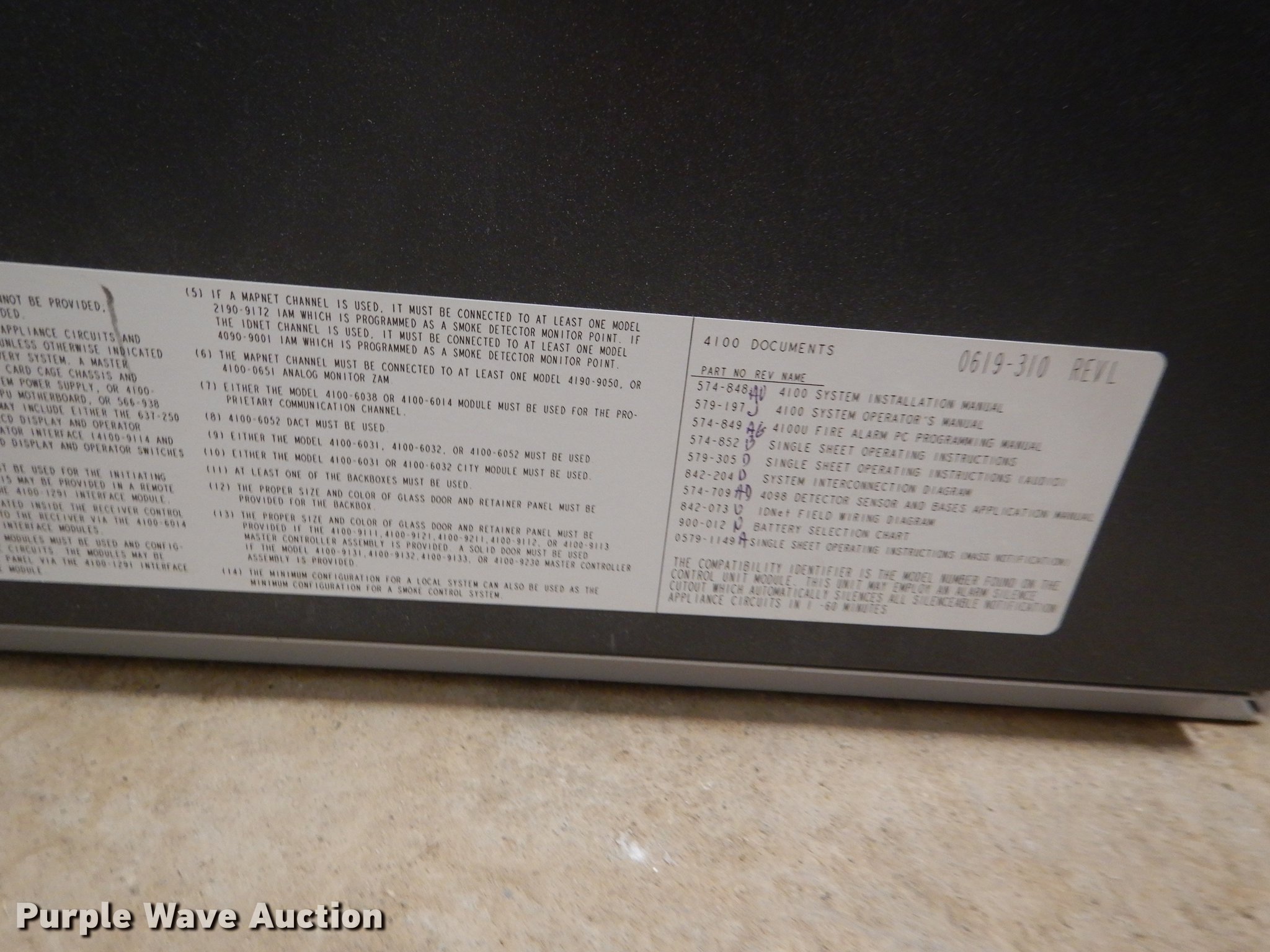 Purple Wave is selling a used Office Supplies and Equip. in Kansas. This item is a Simplex 4100ES fire alarm control panel with the following: Key