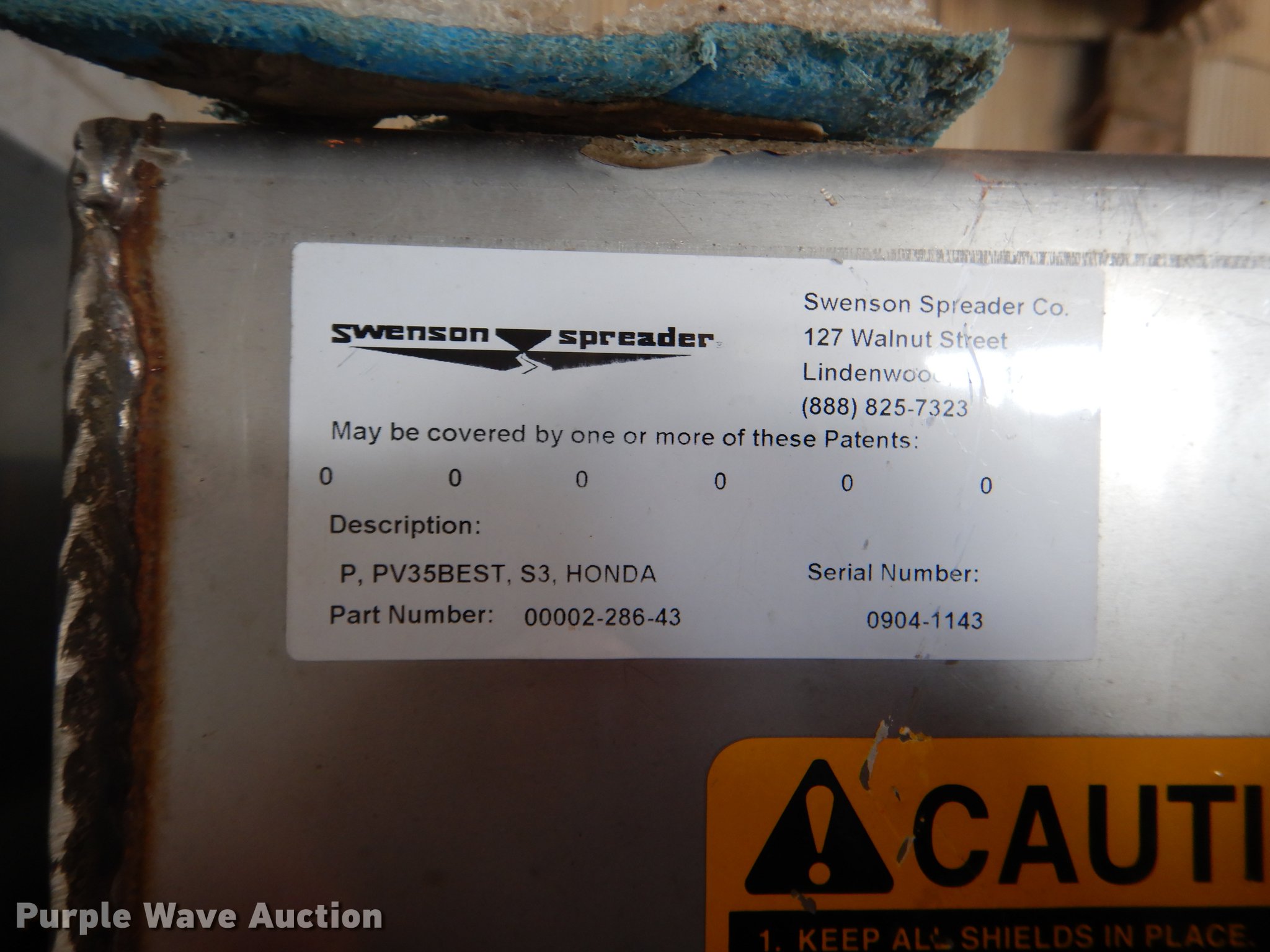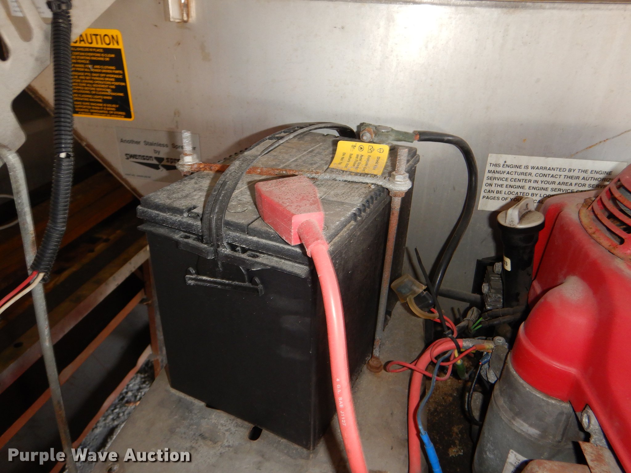 Purple Wave is selling a used Automotive Parts or Acces. in Kansas. This item is a Swenson stainless steel V-box spreader with the following: Honda 11 HP gas engine, Controls, Stand not included, Serial 0904-1143