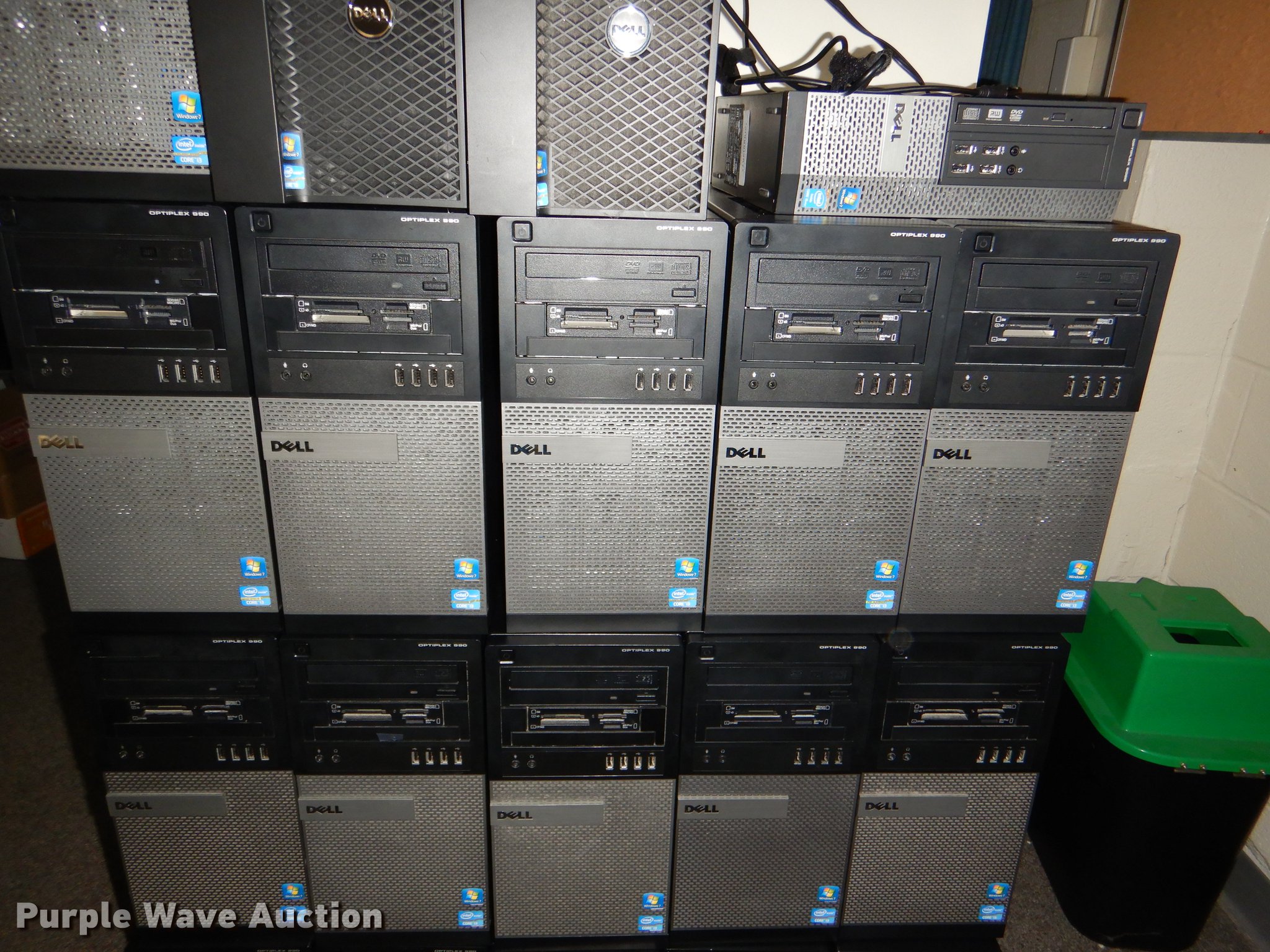 Purple Wave is selling a used Computers in Kansas. This item is a (19) Dell CPUs with the following: Optiplex 9020, (2) Precision T1650, (16) Optiplex 990, Keyboards, Mice, Cables, Units have been wiped