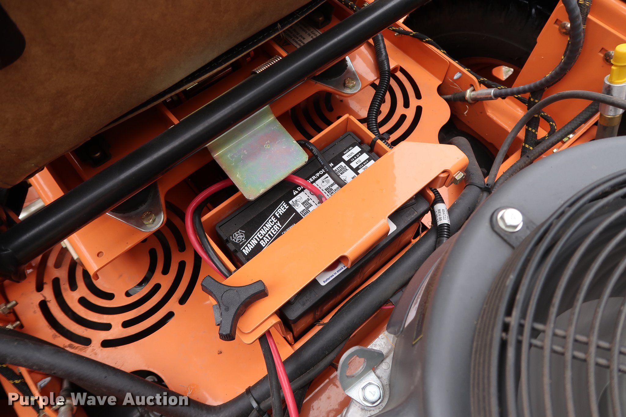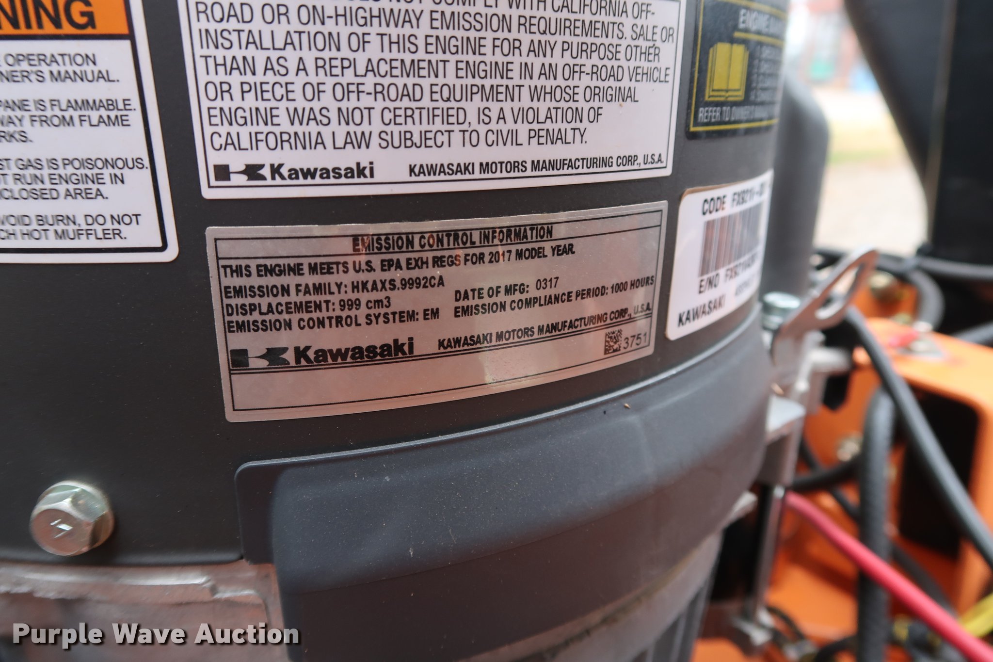 Purple Wave is selling a used Commercial Turf Mower in Oklahoma. This item is a 2017 Scag Cheetah SCZ72V-31FX ZTR lawn mower with the following: 102 hours on meter, 72" cut, Kawasaki FX921V 999cc two cylinder gas engine, 31 HP, Hydrostatic transmission, ROPS, Adjustable suspension seat, Velocity Plus deck, Tiger Eye advanced monitoring system, 13x6.50-6/4.50 front tires, 24x12.00-12 rear tires, Serial L7100198, Unit# 2