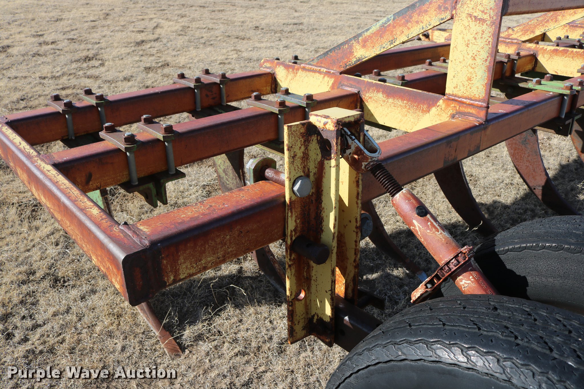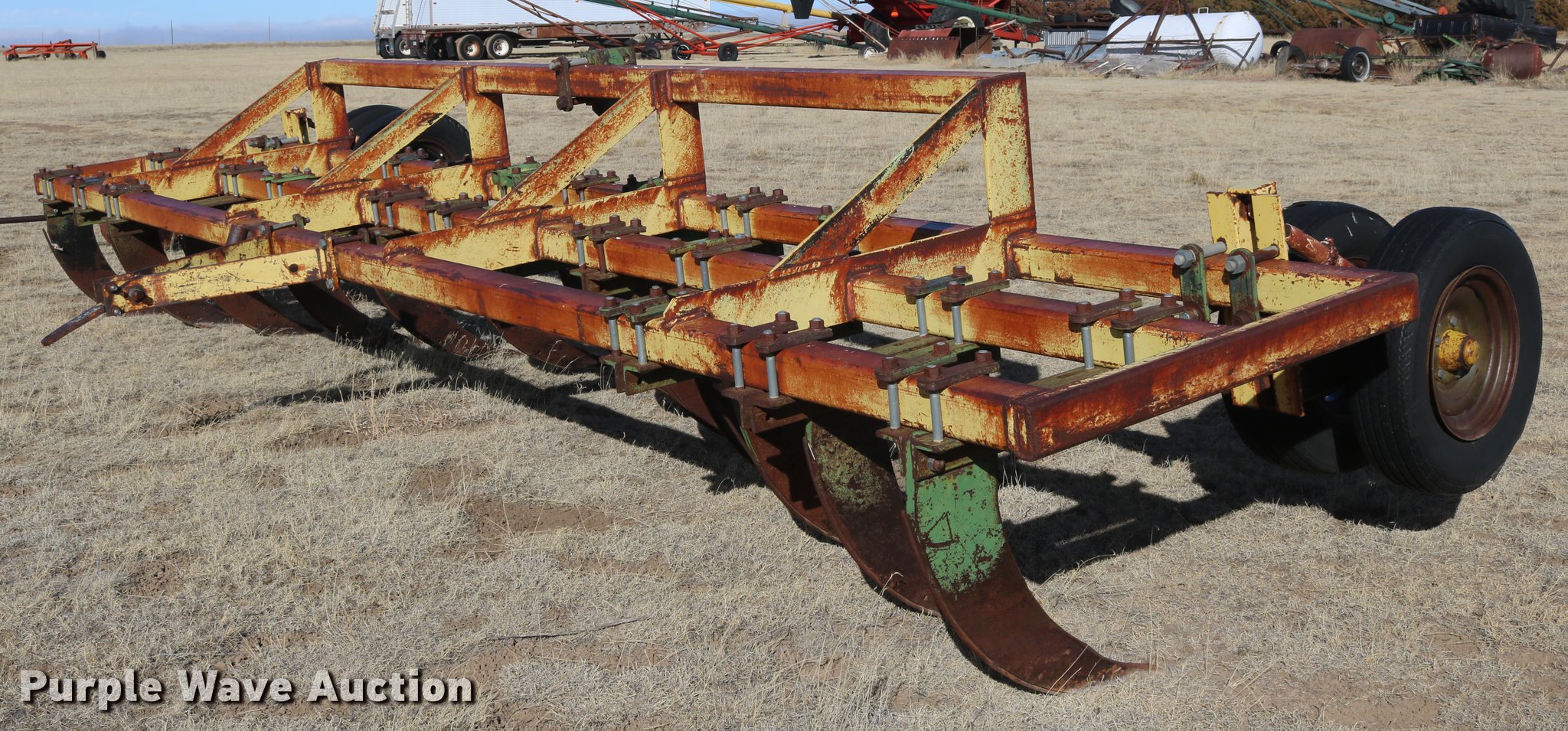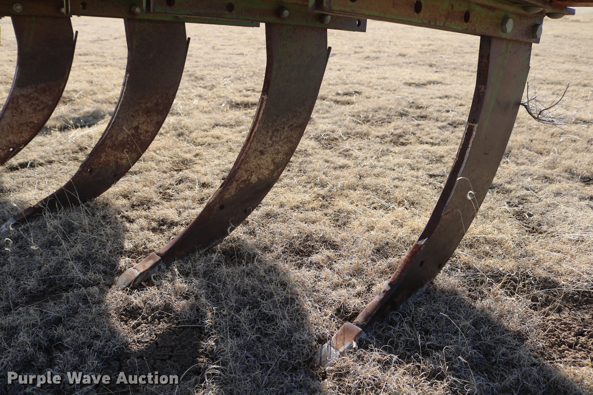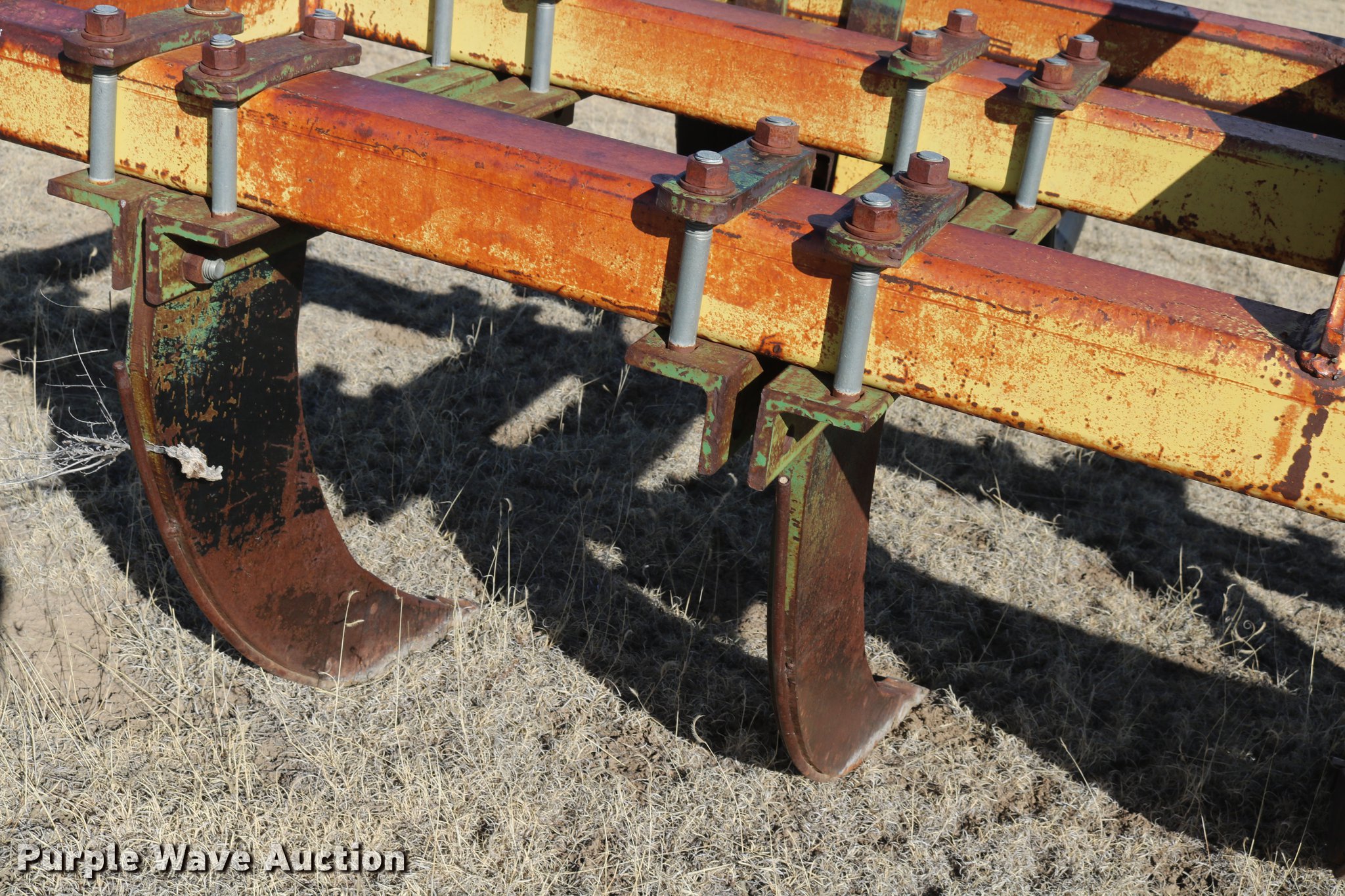 Roll-a-cone V-ripper. 21.5'W overall, (13) hard surfaced rippers, 20" spacing, Anhydrous ammonia tubes, Three point, Rear hitch, H78-15 tires. Harmon Ranch. Springfield, CO 81073