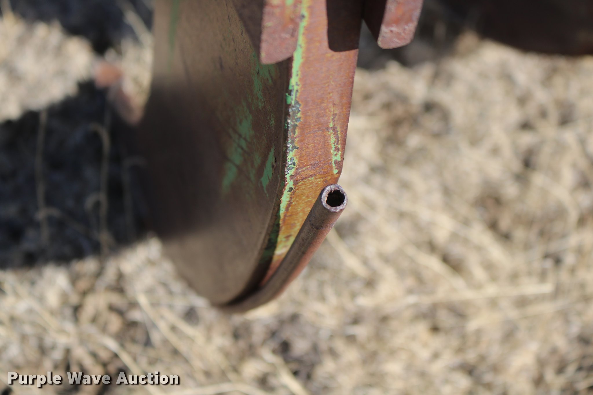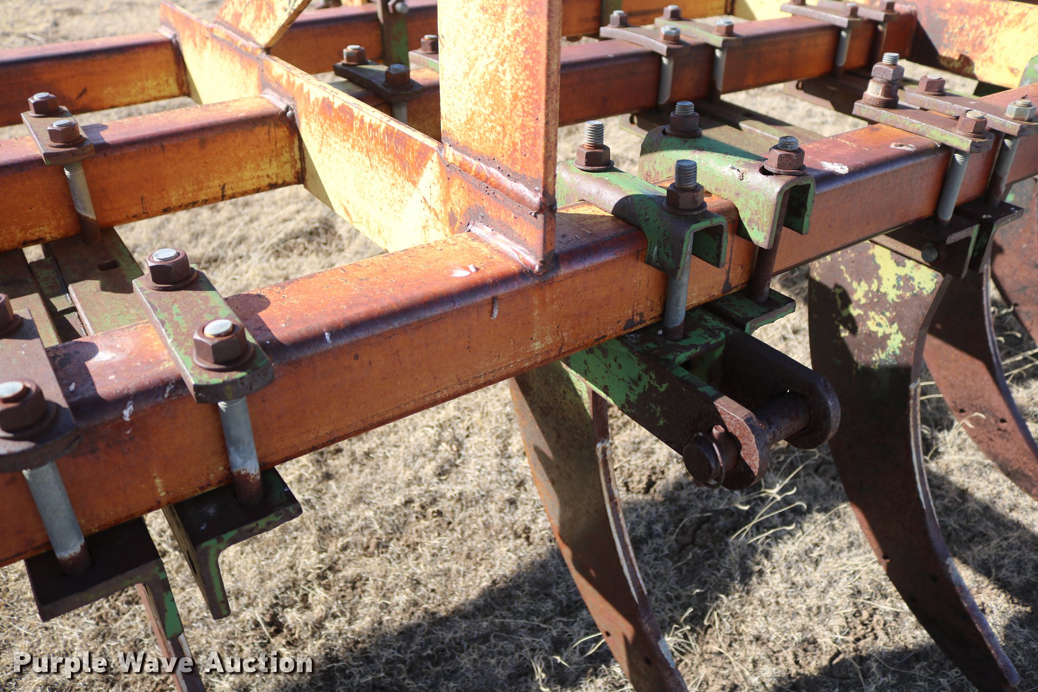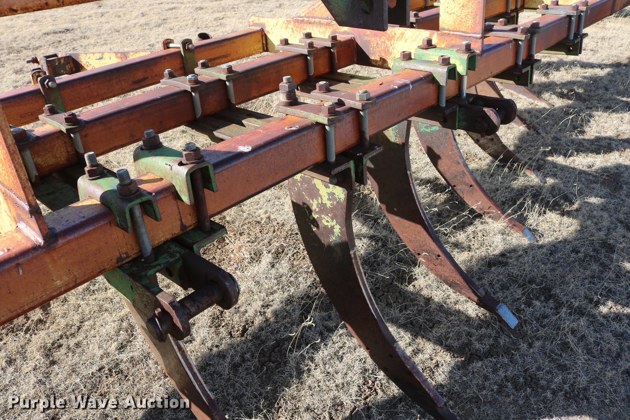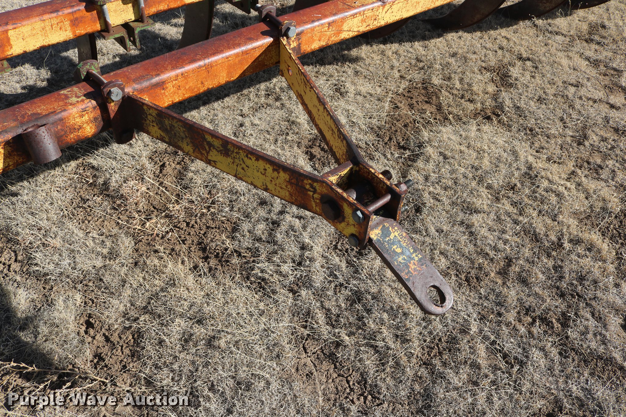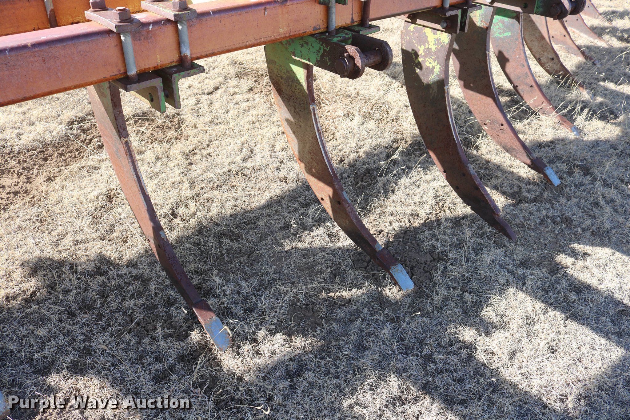 Roll-a-cone V-ripper. 21.5'W overall, (13) hard surfaced rippers, 20" spacing, Anhydrous ammonia tubes, Three point, Rear hitch, H78-15 tires. Harmon Ranch. Springfield, CO 81073