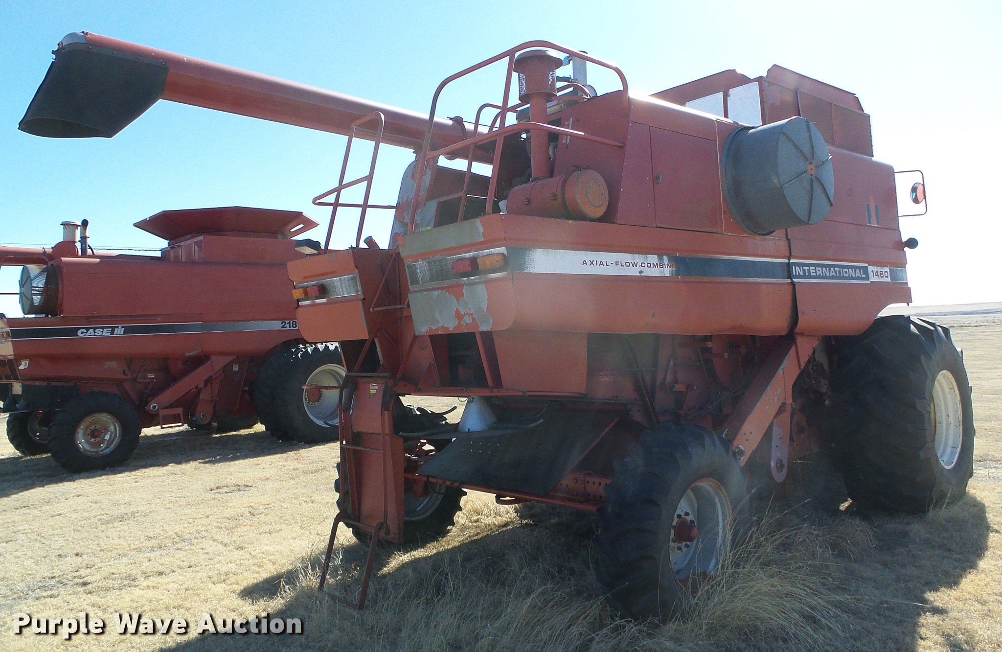 Purple Wave is selling a used Combine in Kansas. This item is a 1983 Case IH 1480 combine with the following: 5,600 hours on meter, Case six cylinder turbo diesel engine, Hydrostatic transmission, 3F-3R gears, AC and heat, Tilt steering wheel, AM/FM, Suspension seat, Chaff spreader, Work light, Case IH 1680 rotors, 1989 Case IH 1010 rigid head, 30'W, Bat reel, Hydraulic fore/aft, Hydraulic reel height control, Single driveline, Serial JJC0076664, 30.5L-32 front tires, 14.9-24 rear tires, Serial 1720234U044212