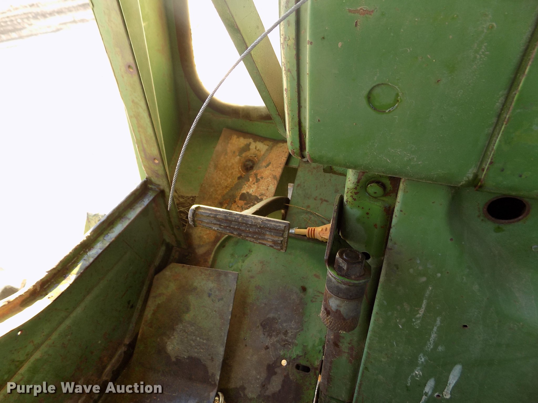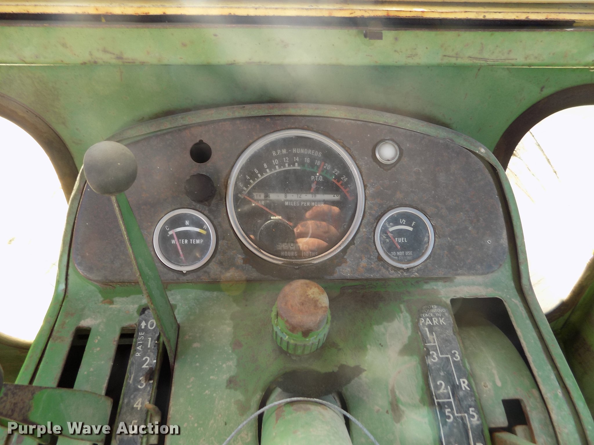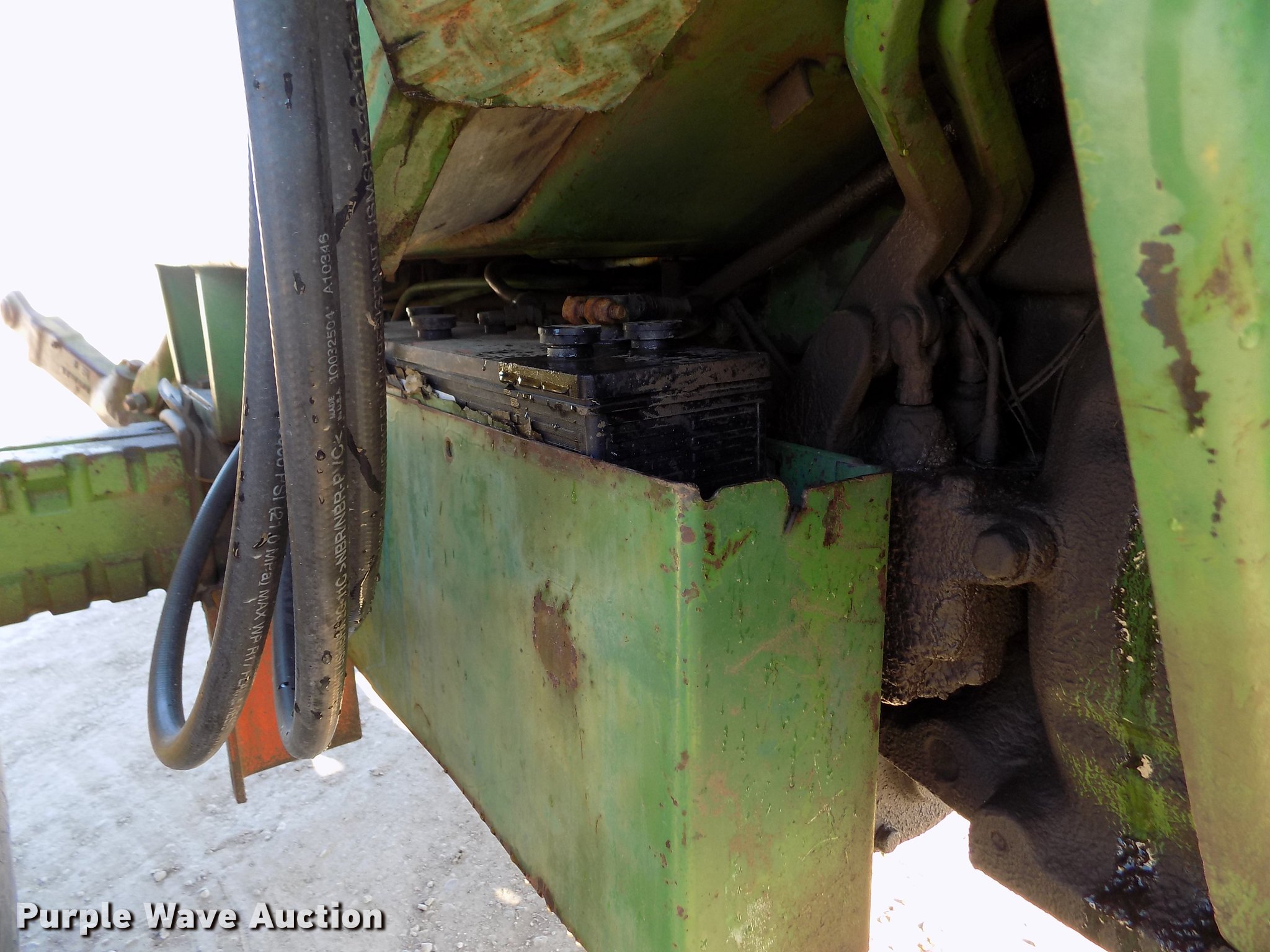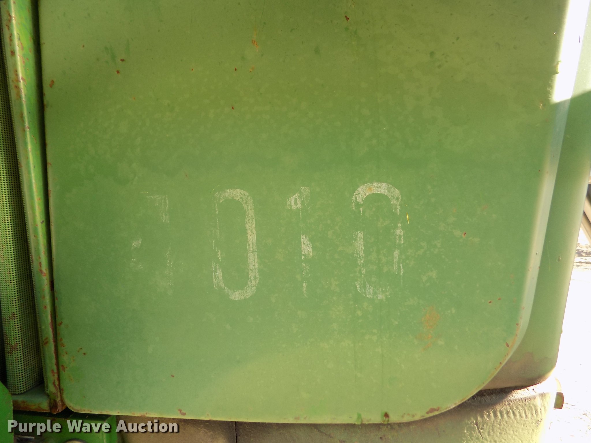 Purple Wave is selling a used Tractor in Kansas. This item is a 1963 John Deere 4010 tractor with the following: 5,901 hours on meter, John Deere 6.2L six cylinder diesel engine, 80 HP, Synchro transmission, 8F-3R gears, Egging Co. enclosed cab, Suspension seat, Block heater, Grill guard, Buhler 595 loader, 84"W bucket, Quick attach, Two-lever controls, Serial 20025950227, Three point, Top link, 540 PTO, (2) rear hydraulic remote sets, 11L-15 front tires, 15.5-38 rear tires, Cracked windows, Serial 21T51497