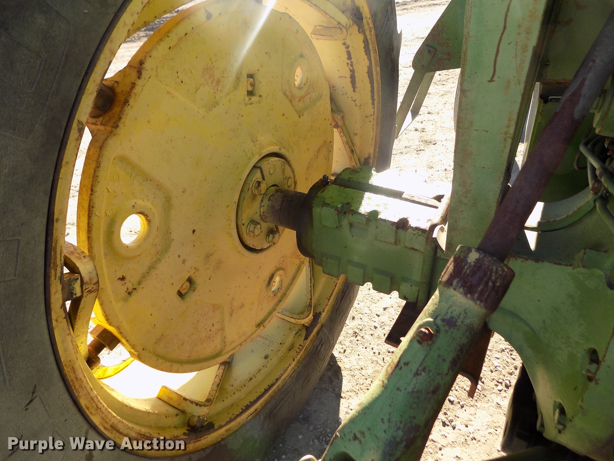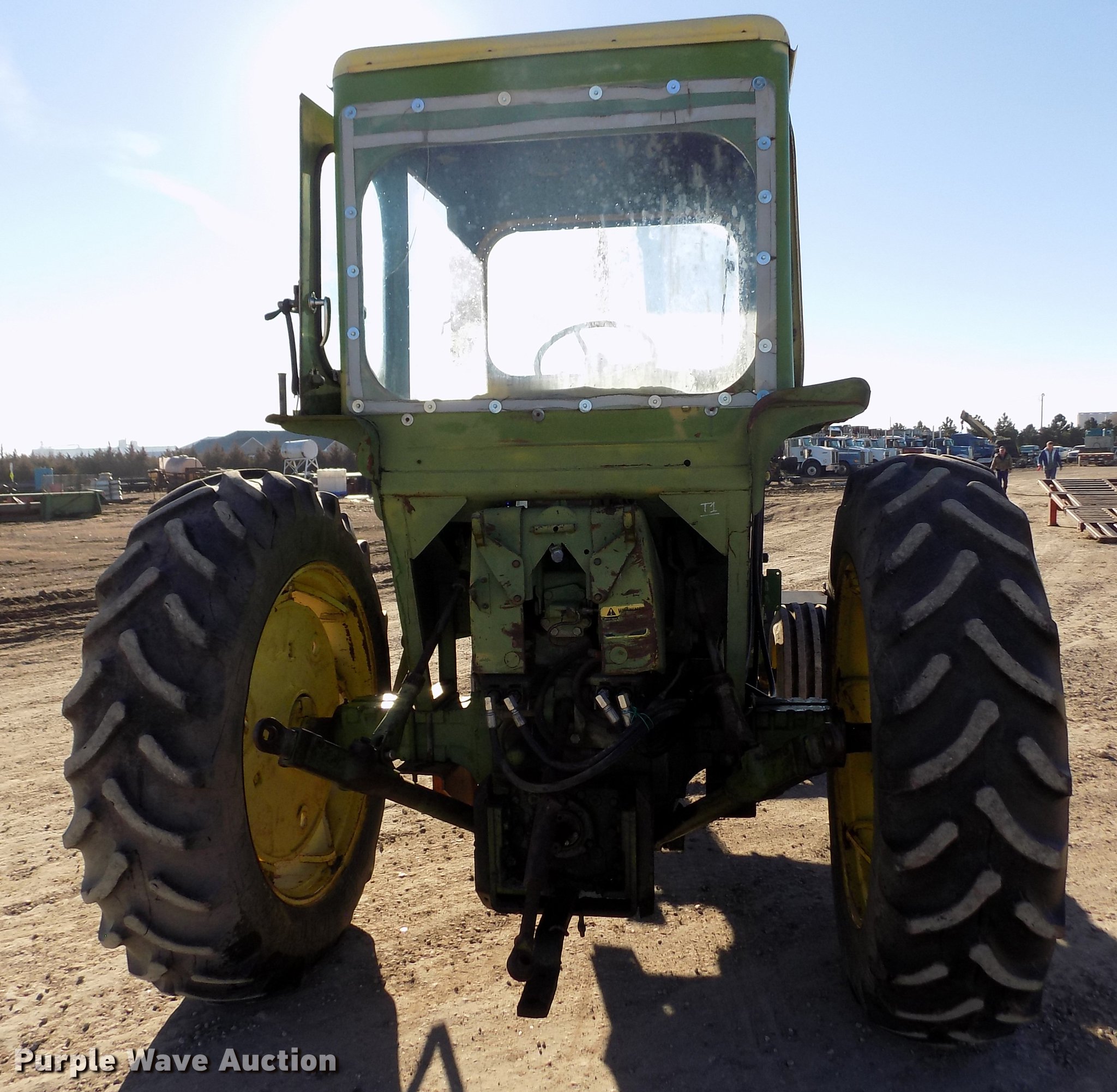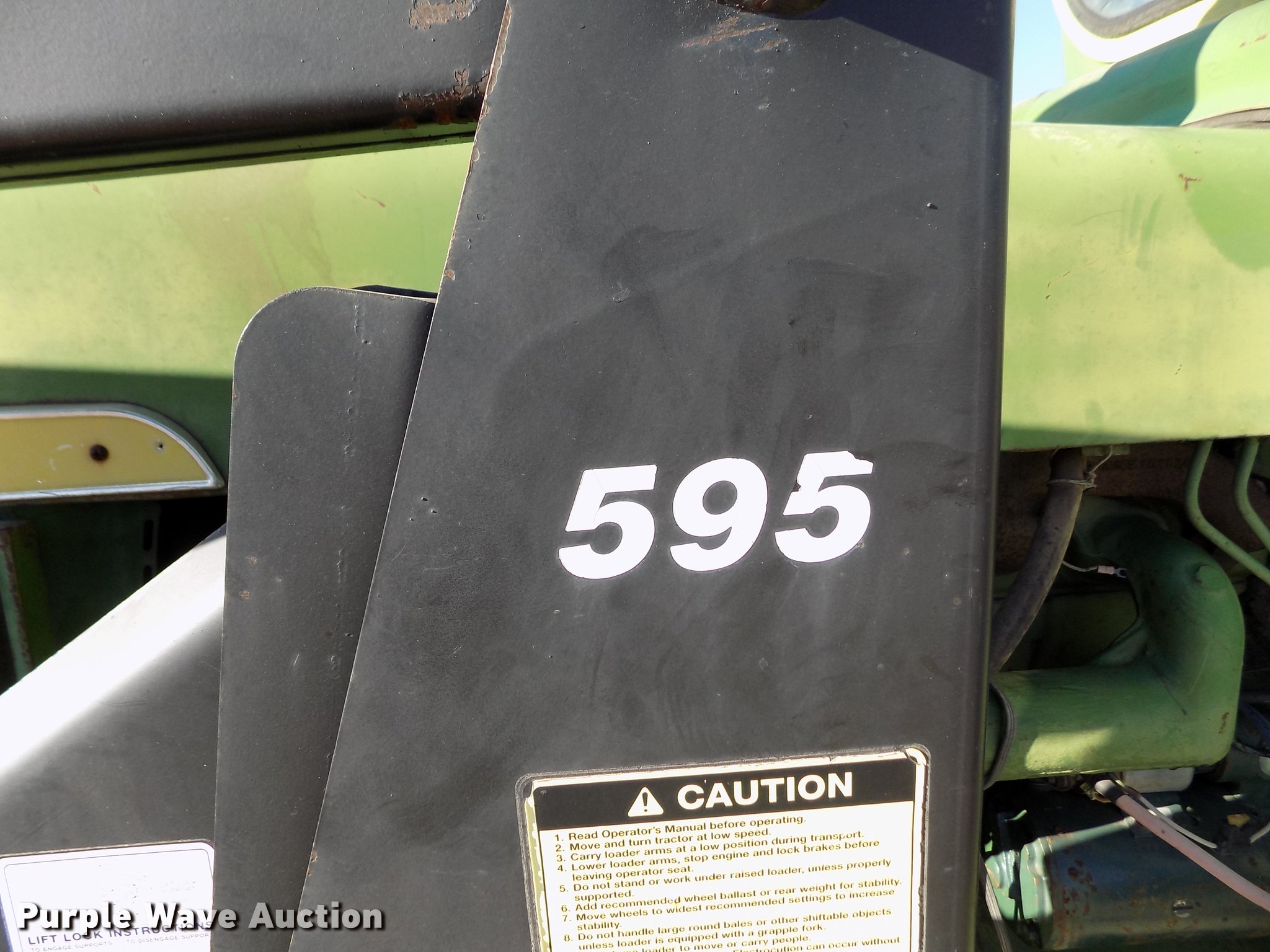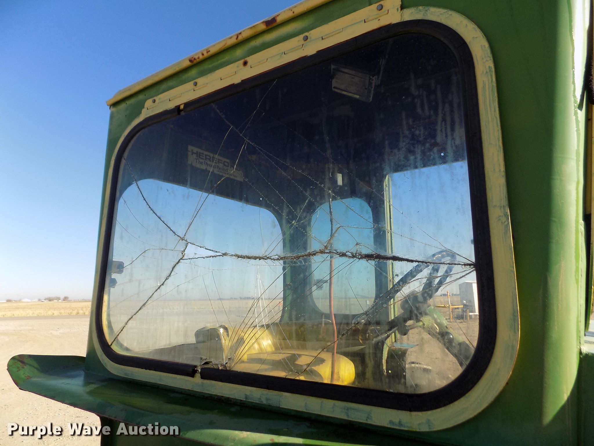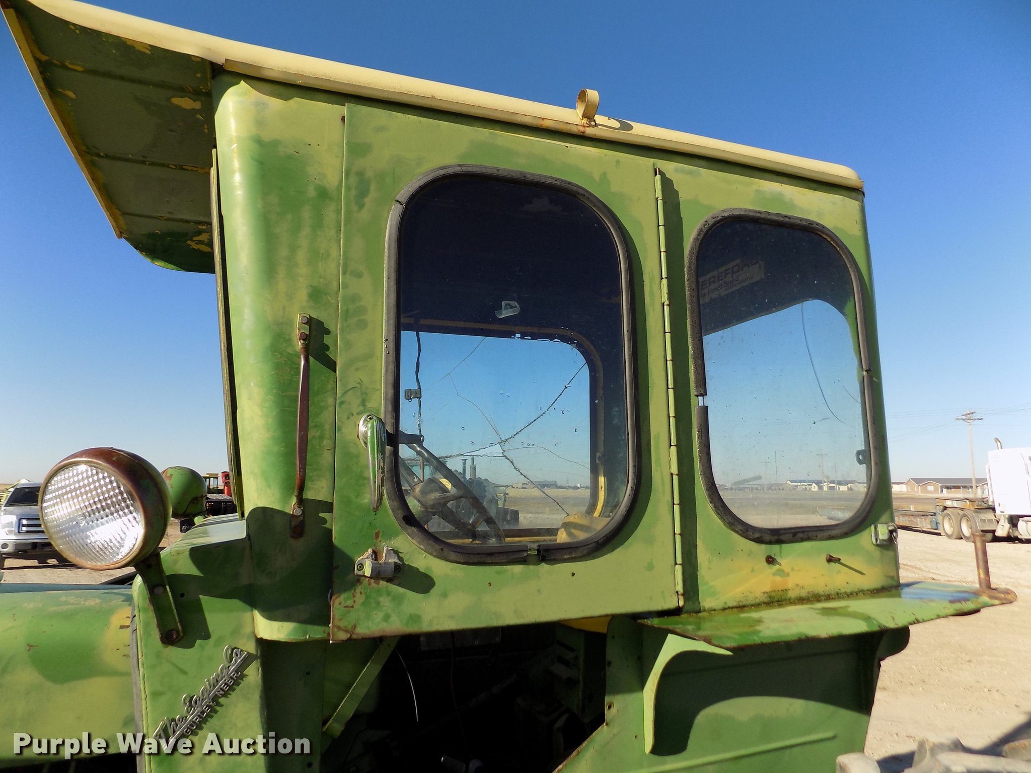 Purple Wave is selling a used Tractor in Kansas. This item is a 1963 John Deere 4010 tractor with the following: 5,901 hours on meter, John Deere 6.2L six cylinder diesel engine, 80 HP, Synchro transmission, 8F-3R gears, Egging Co. enclosed cab, Suspension seat, Block heater, Grill guard, Buhler 595 loader, 84"W bucket, Quick attach, Two-lever controls, Serial 20025950227, Three point, Top link, 540 PTO, (2) rear hydraulic remote sets, 11L-15 front tires, 15.5-38 rear tires, Cracked windows, Serial 21T51497