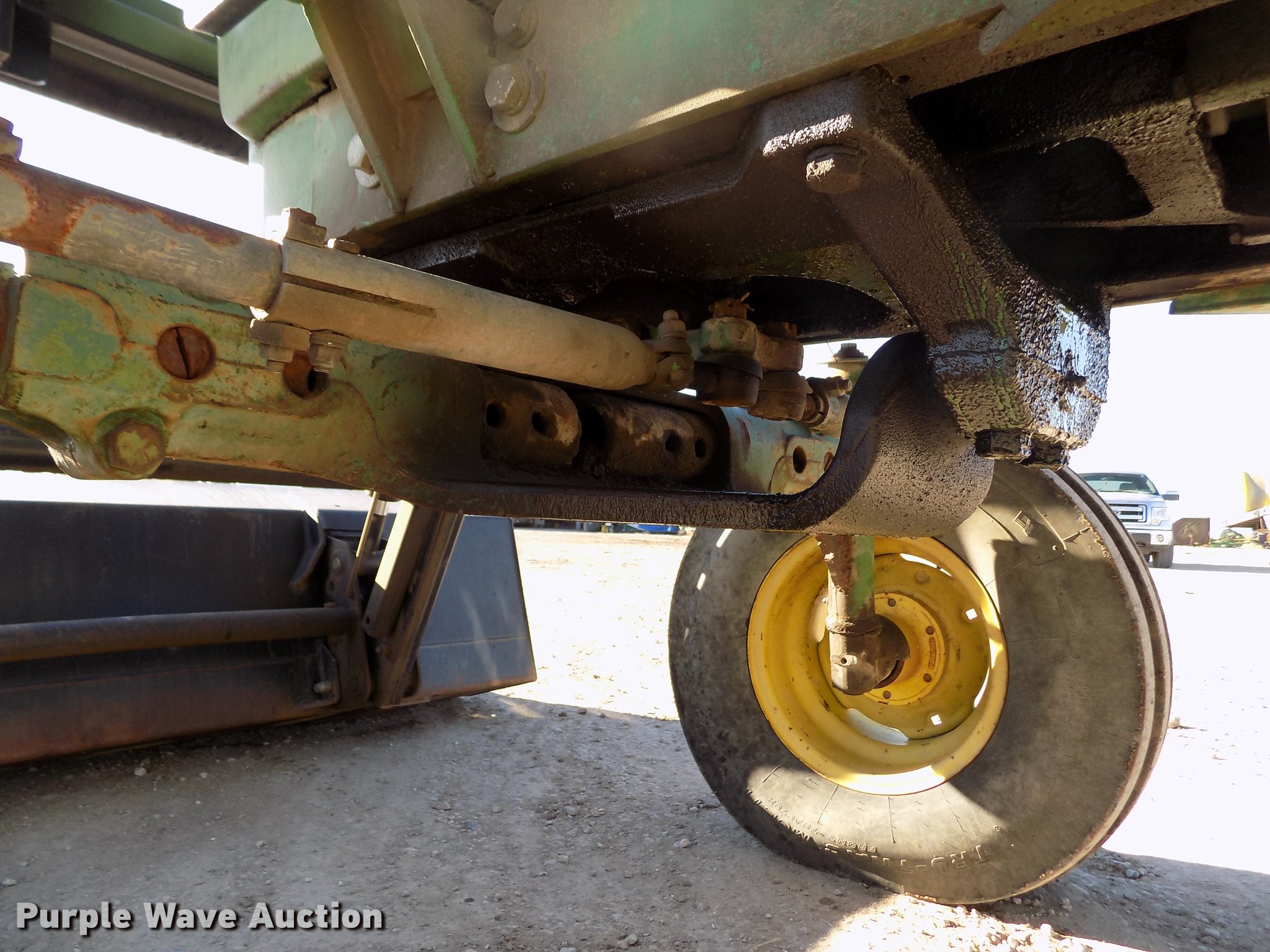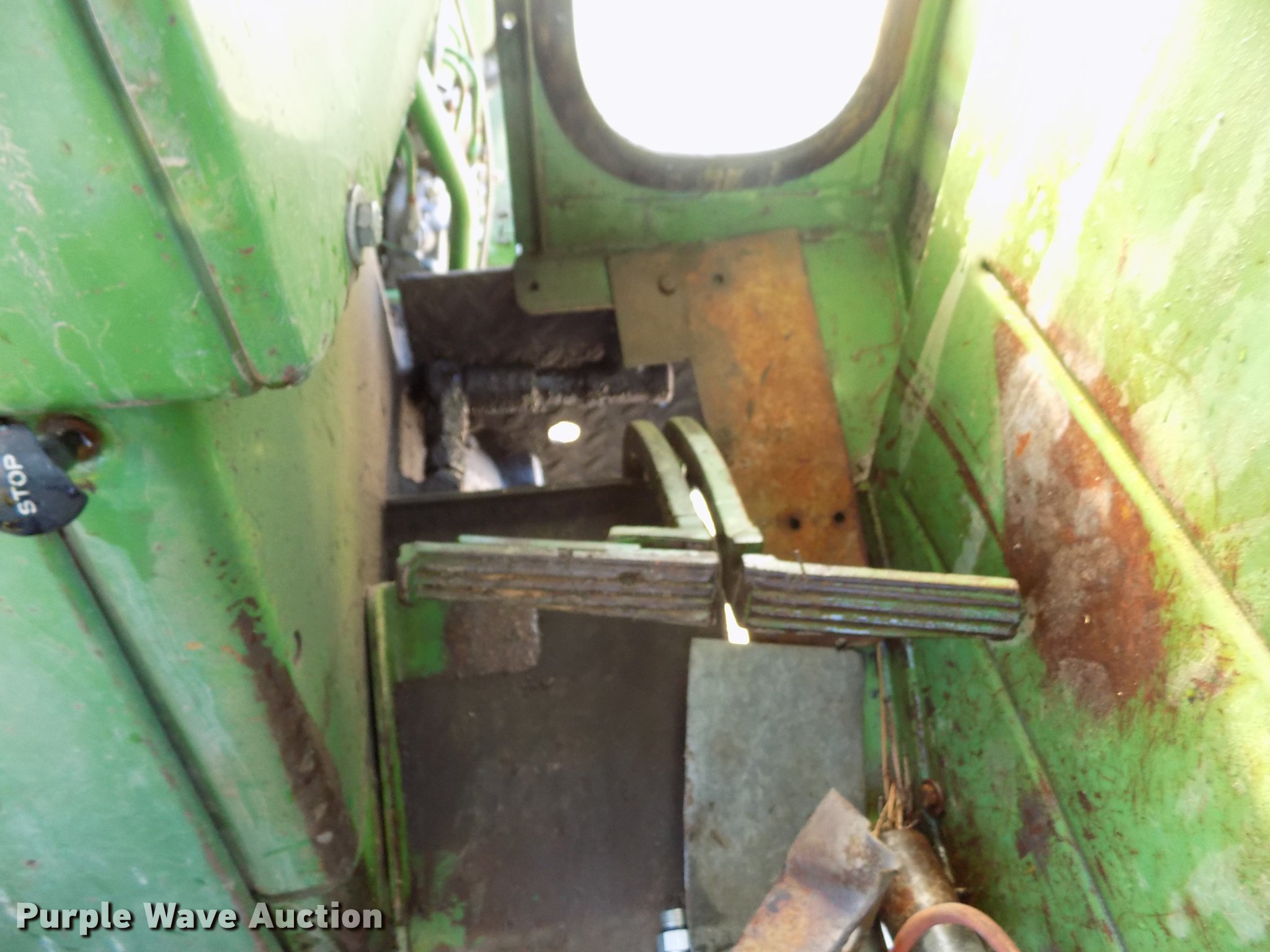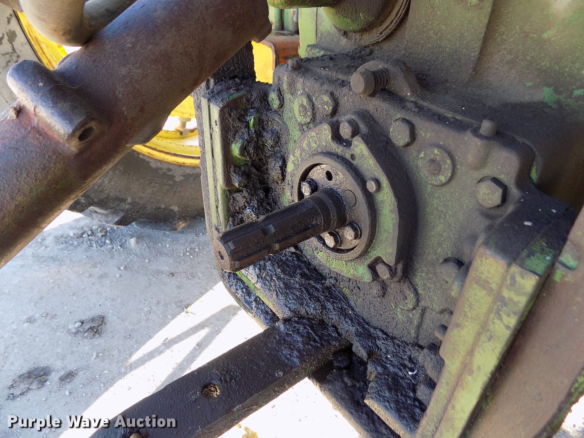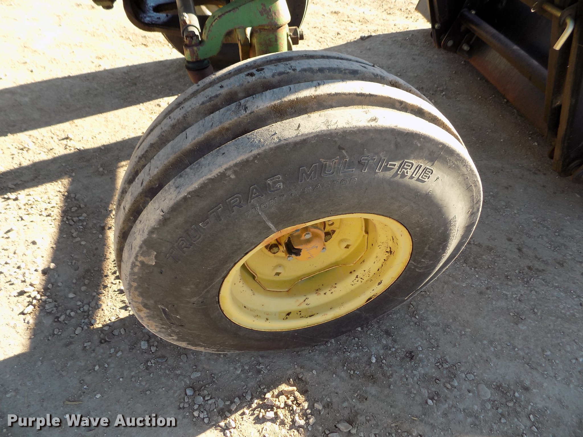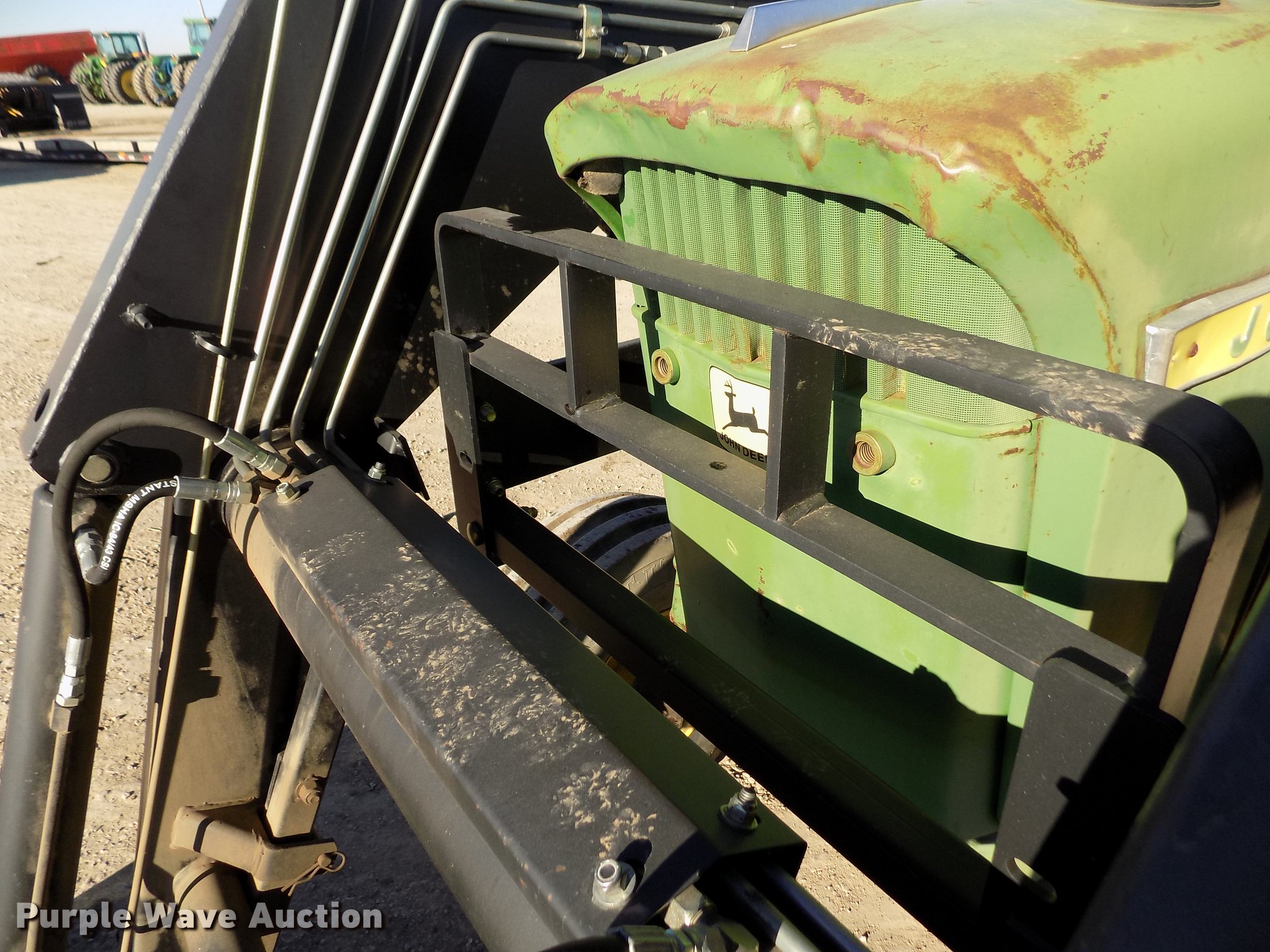 Purple Wave is selling a used Tractor in Kansas. This item is a 1963 John Deere 4010 tractor with the following: 5,901 hours on meter, John Deere 6.2L six cylinder diesel engine, 80 HP, Synchro transmission, 8F-3R gears, Egging Co. enclosed cab, Suspension seat, Block heater, Grill guard, Buhler 595 loader, 84"W bucket, Quick attach, Two-lever controls, Serial 20025950227, Three point, Top link, 540 PTO, (2) rear hydraulic remote sets, 11L-15 front tires, 15.5-38 rear tires, Cracked windows, Serial 21T51497