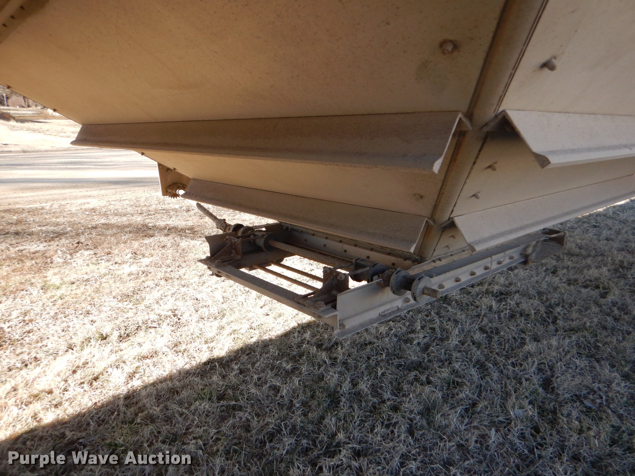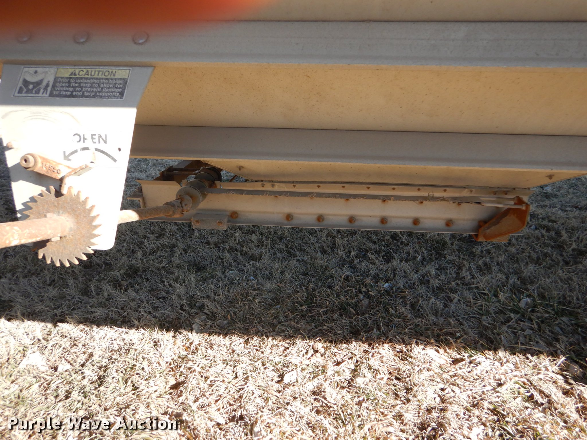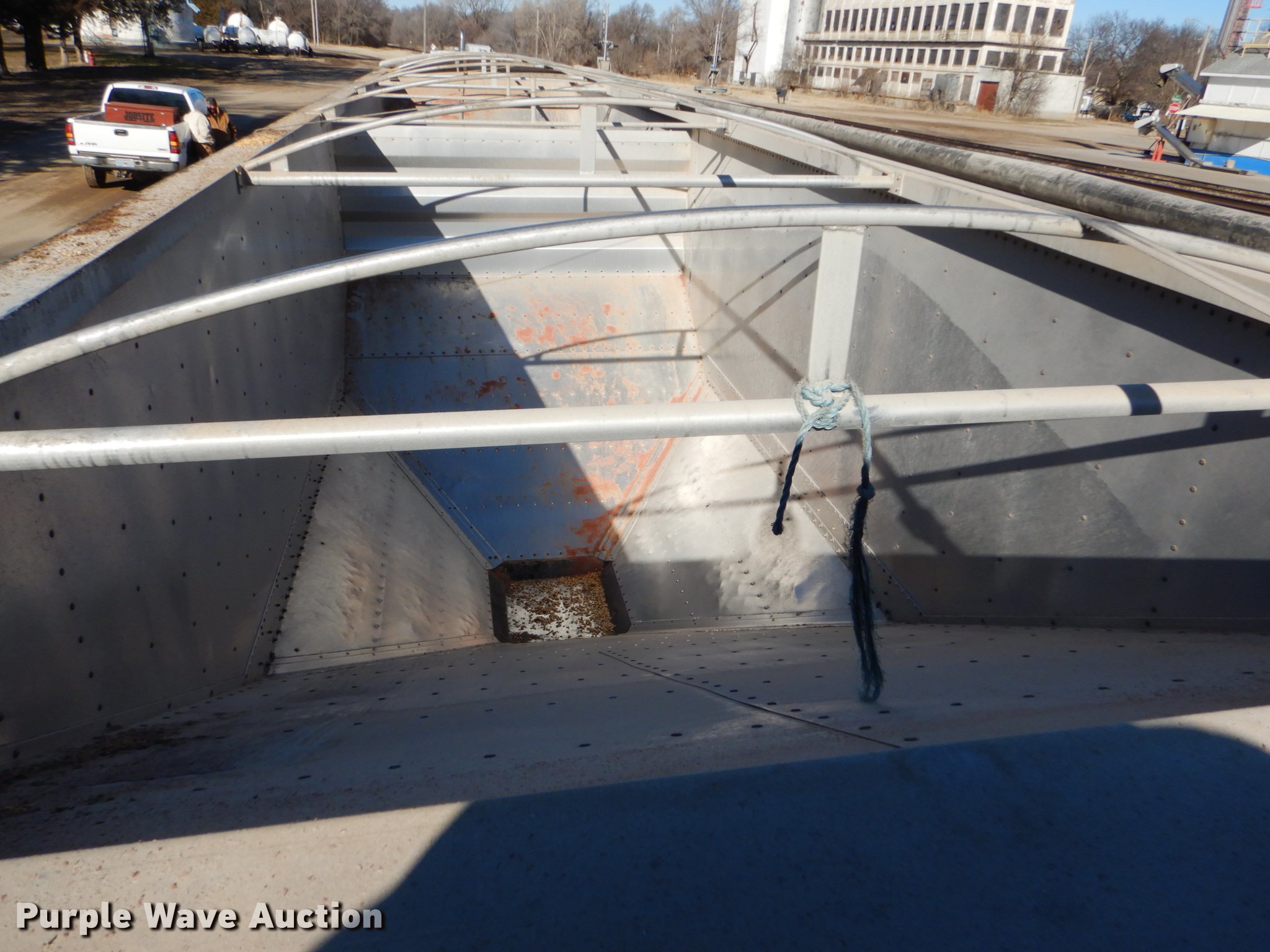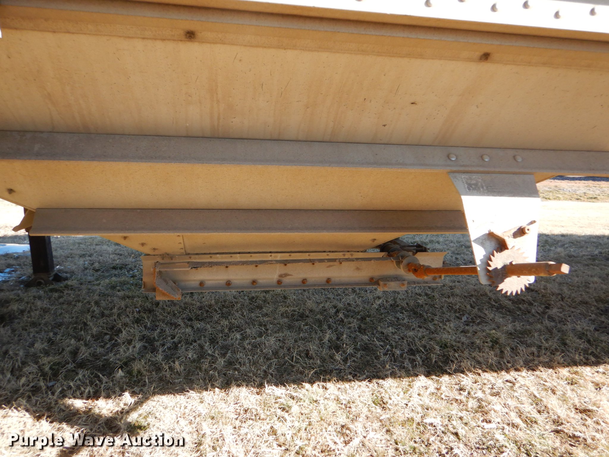 Purple Wave is selling a used Grain or Commodity Trailer in Kansas. This item is a 2000 Wilson Pace Setter double hopper bottom grain trailer with the following: 43'L x 96"W, Manual trap gates, Front and rear ladders, Front and rear platforms, Roll tarp, Aluminum construction, Fifth wheel plate, Dual leg landing gear, Air suspension, Air brakes, Tandem axle, Steel wheels, 11R24.5 tires, GVWR 65,000 lbs, Cracked sub-frame, Frame above air bags is weak, beginning to fail