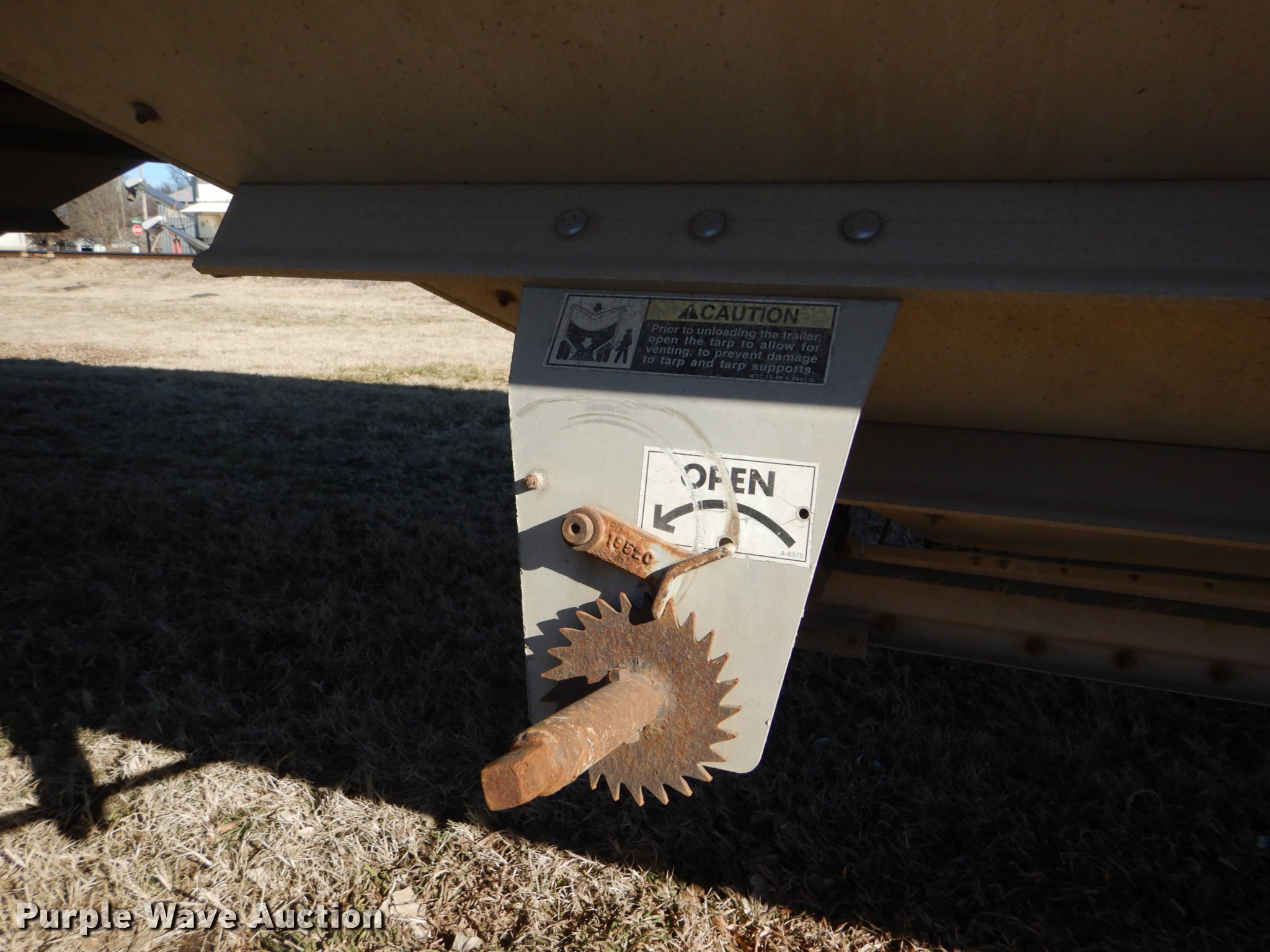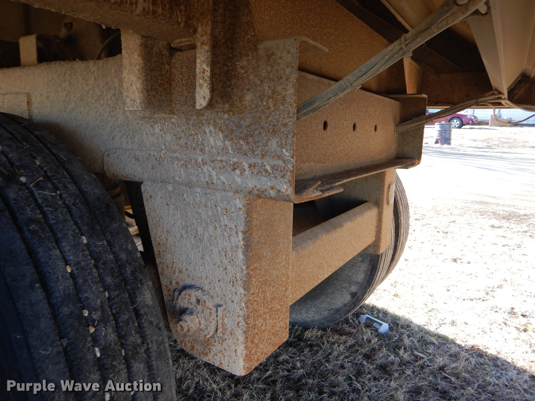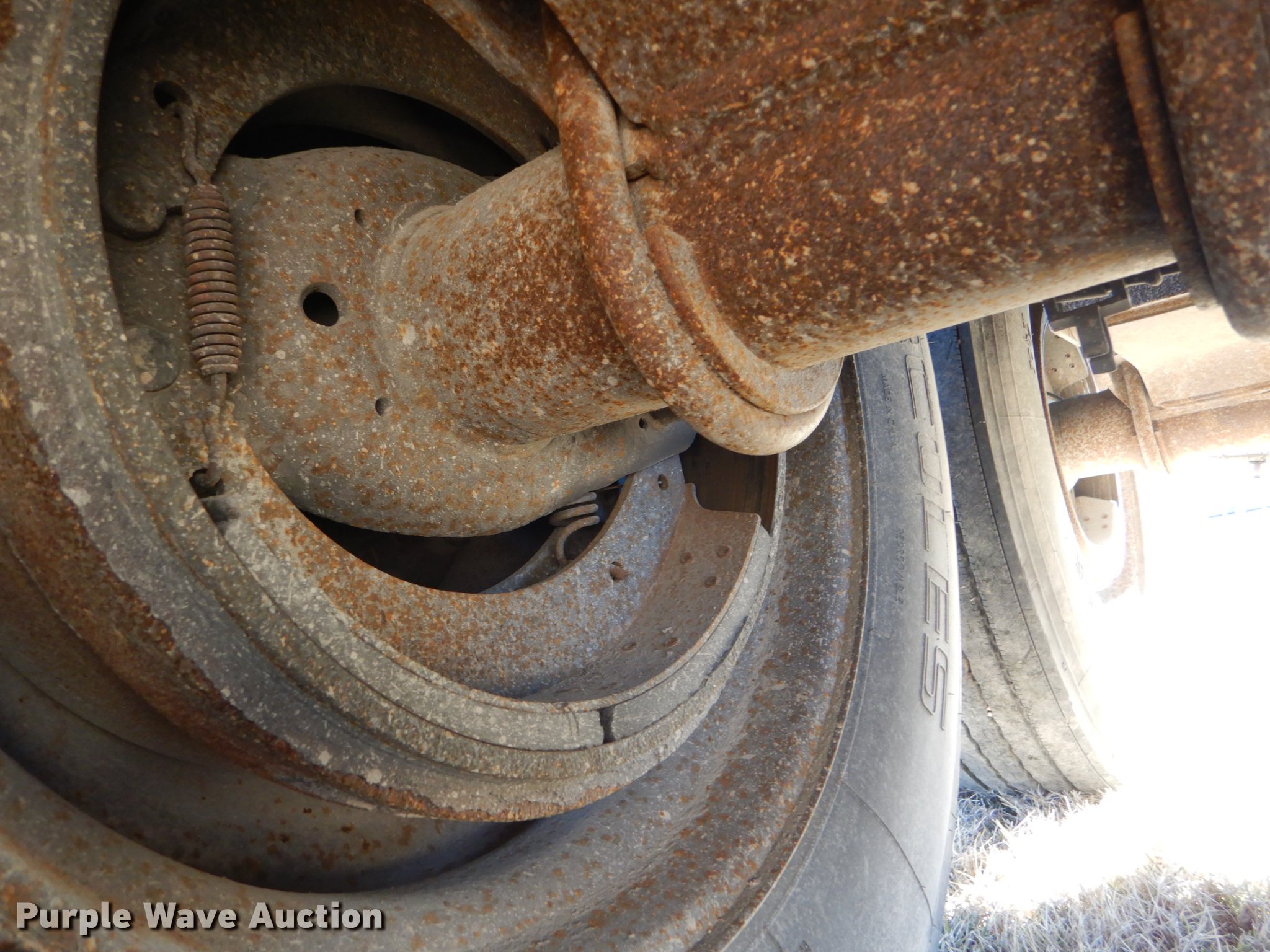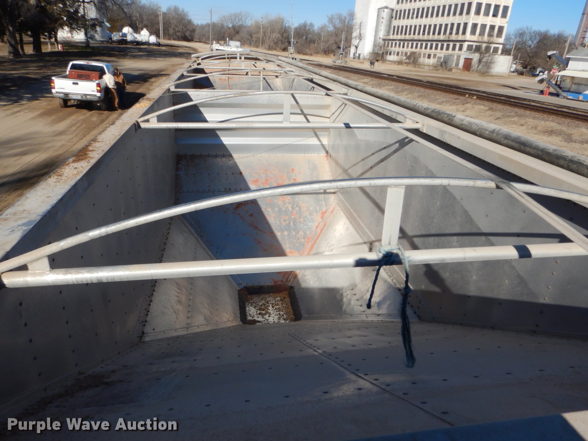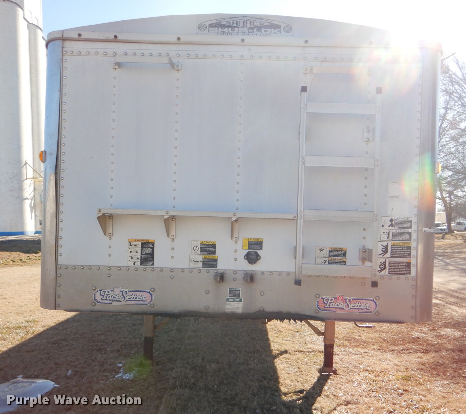 Purple Wave is selling a used Grain or Commodity Trailer in Kansas. This item is a 2000 Wilson Pace Setter double hopper bottom grain trailer with the following: 43'L x 96"W, Manual trap gates, Front and rear ladders, Front and rear platforms, Roll tarp, Aluminum construction, Fifth wheel plate, Dual leg landing gear, Air suspension, Air brakes, Tandem axle, Steel wheels, 11R24.5 tires, GVWR 65,000 lbs, Cracked sub-frame, Frame above air bags is weak, beginning to fail