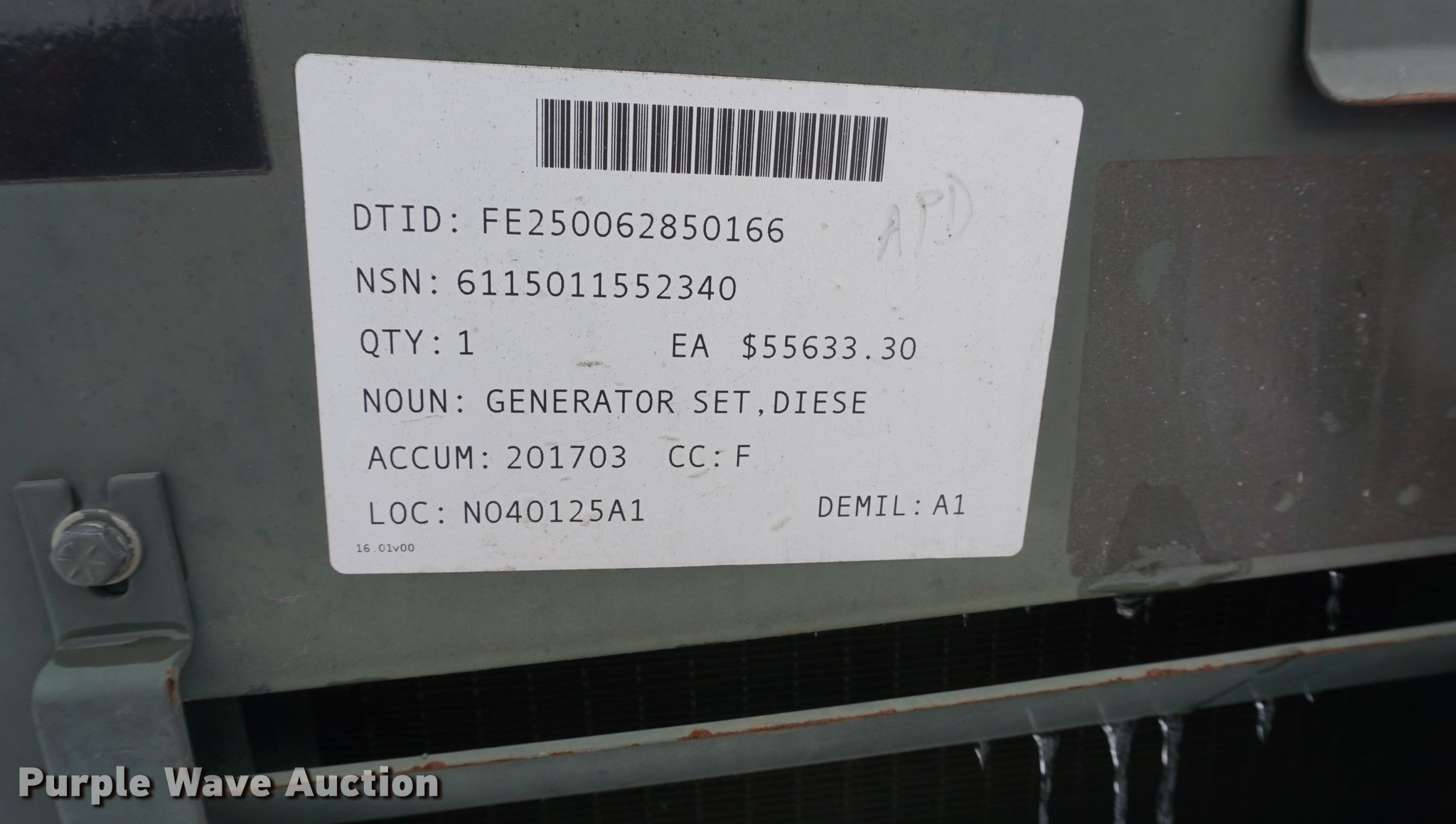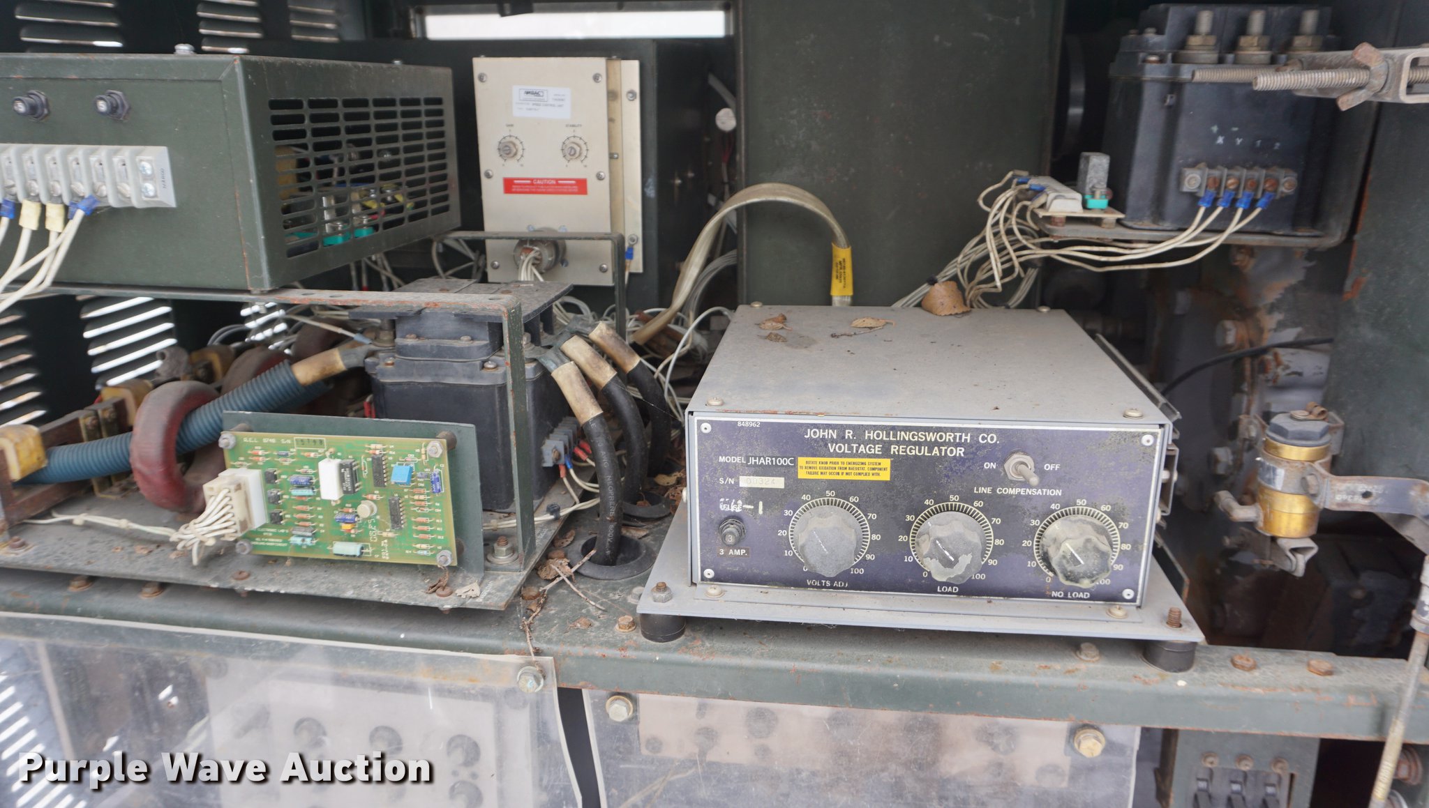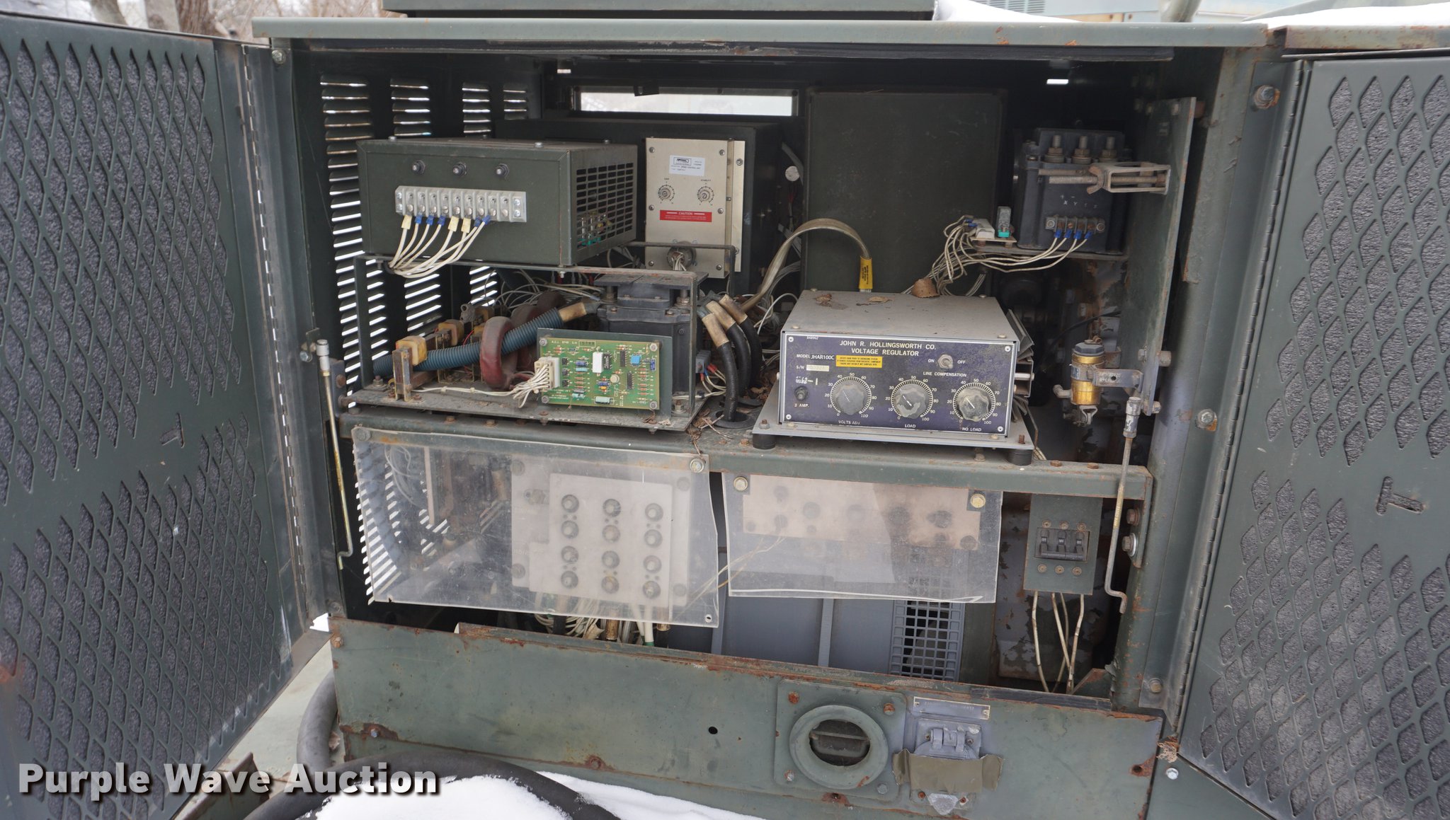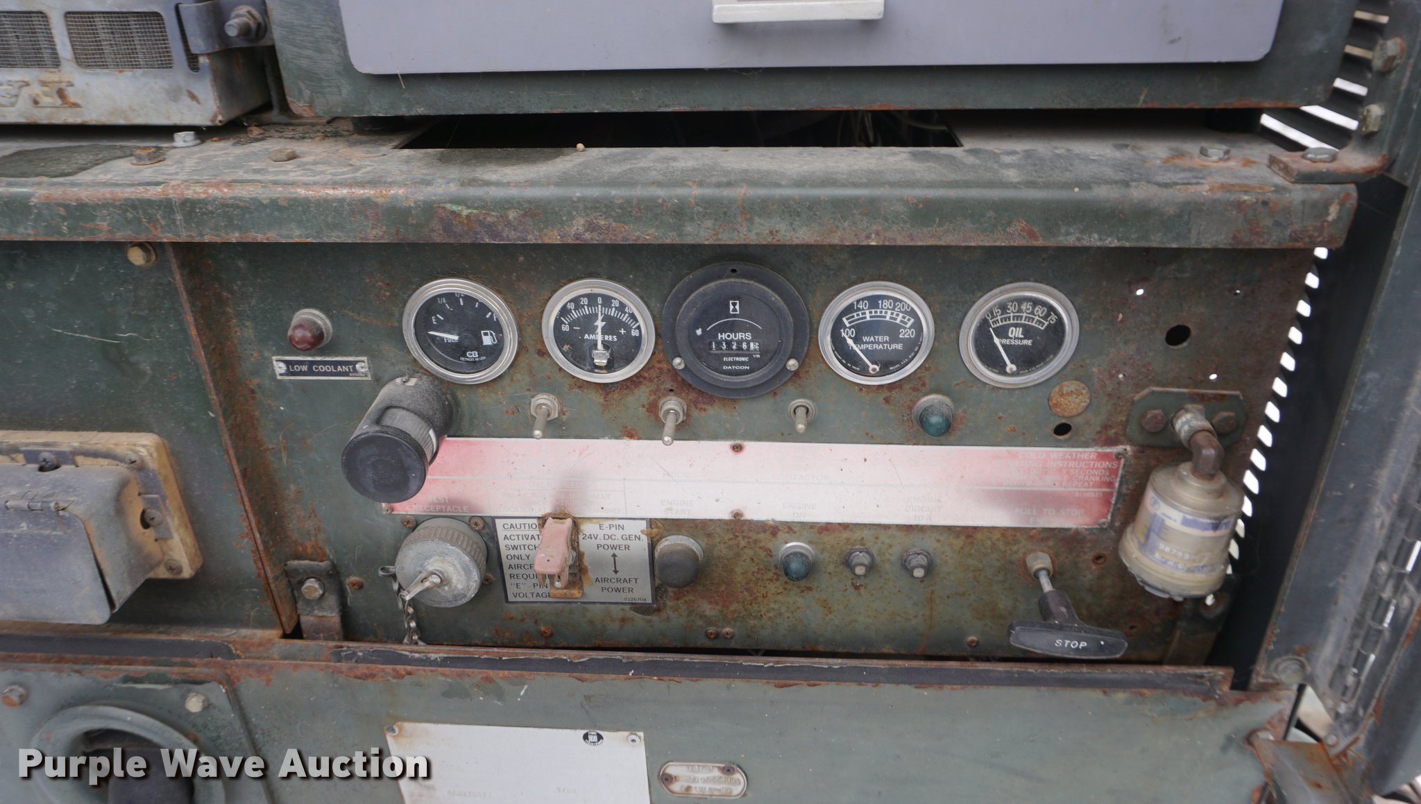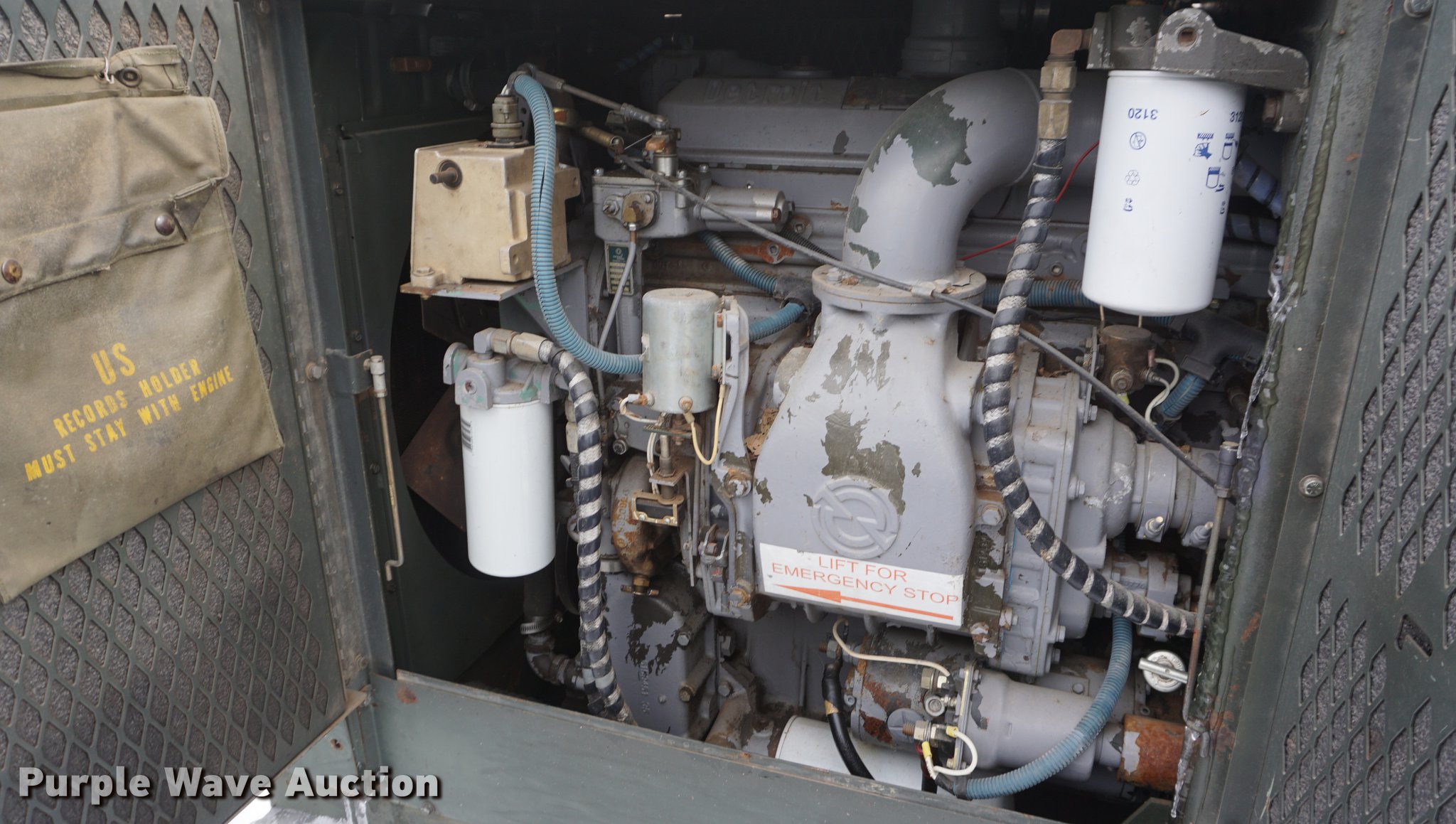 Purple Wave is selling a used Generator Set in Kansas. This item is a 1989 U.S. Air Force A1M32A-86D generator with the following: 1,326 hours on meter, Detroit Diesel four cylinder diesel engine, Electric start, 72 kW, Single and three phase, Fuel tank, Pintle hitch, 6.9-9 tires, Serial K203854
