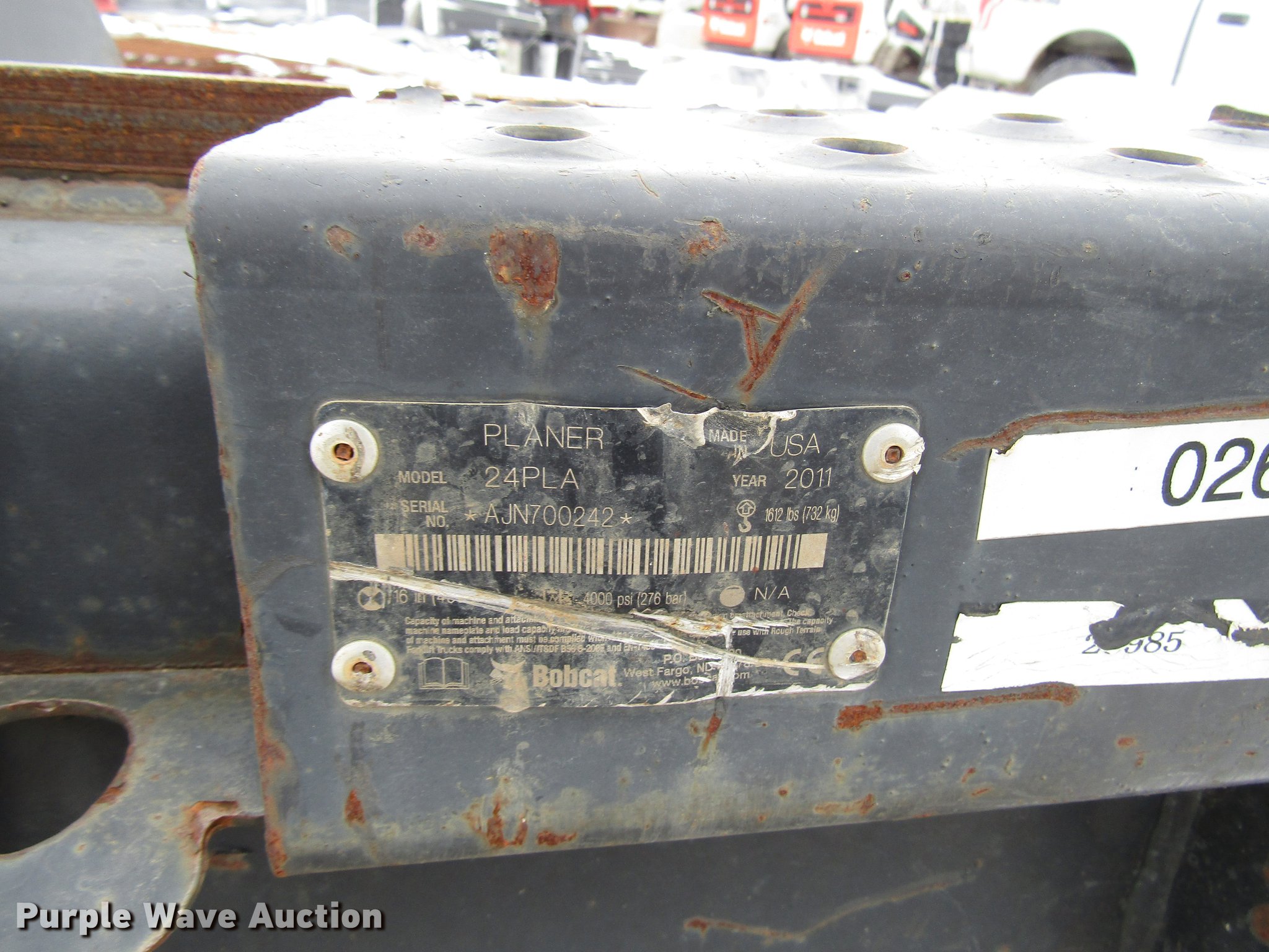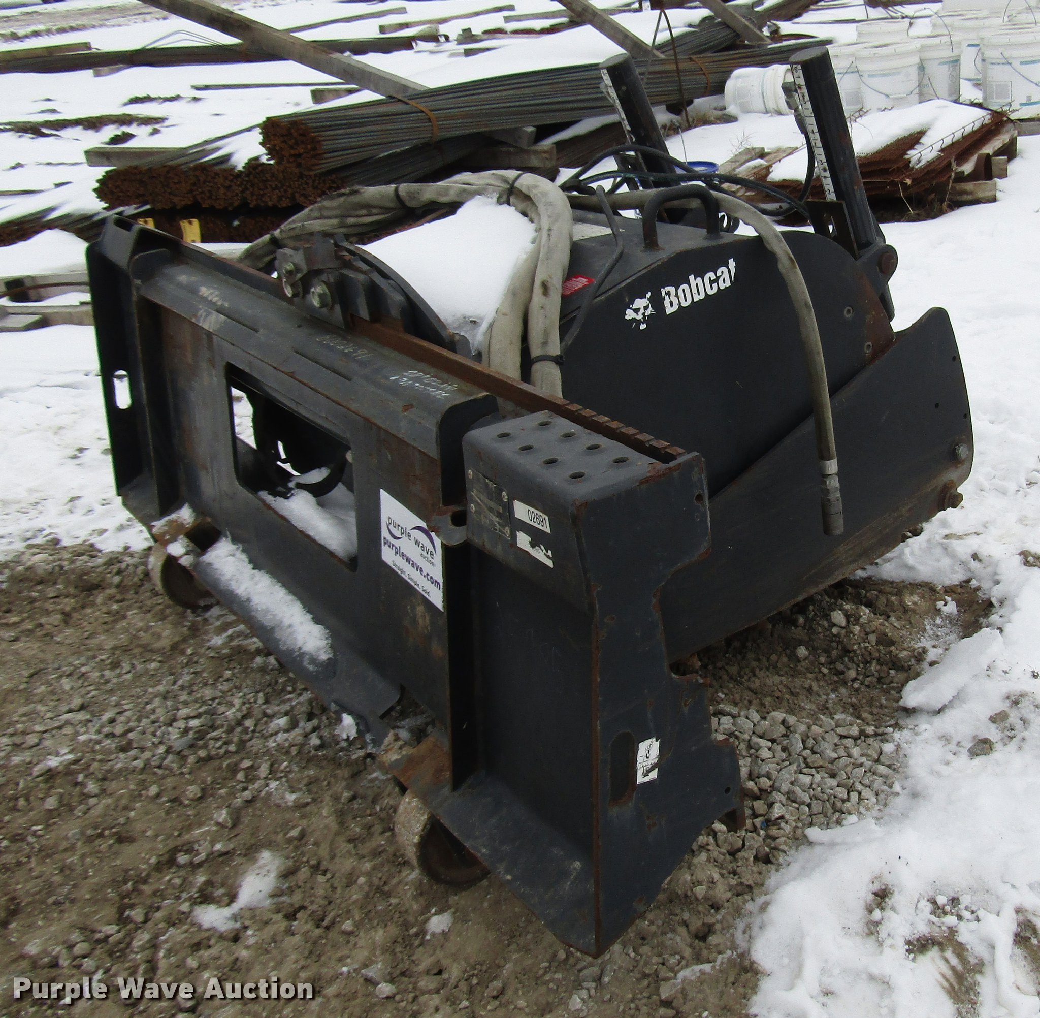 Purple Wave is selling a used Skid Steer Attach. in Kansas. This item is a 2011 Bobcat 24PLA skid steer cold planer with the following: 24"W drum, Hydraulic skids, Skid damage, Stock# 8002691, Serial AJN700242