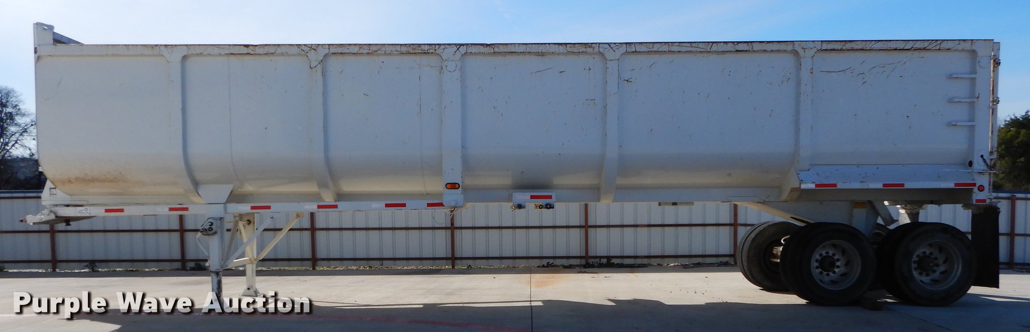 Purple Wave is selling a used End Dump Rock Trailer in Texas. This item is a 2006 CTSI EHRD40 end dump trailer with the following: 40'L x 96"W, 72" side height, Steel construction, Single cylinder hoist, Manual operated clamshell gate, Fifth wheel plate, Dual leg landing gear, Spring suspension, Air brakes, Tandem axle, Aluminum wheels, Beostar 11R24.5 tires, GVWR 68,000 lbs, GAWR 22,500 lbs