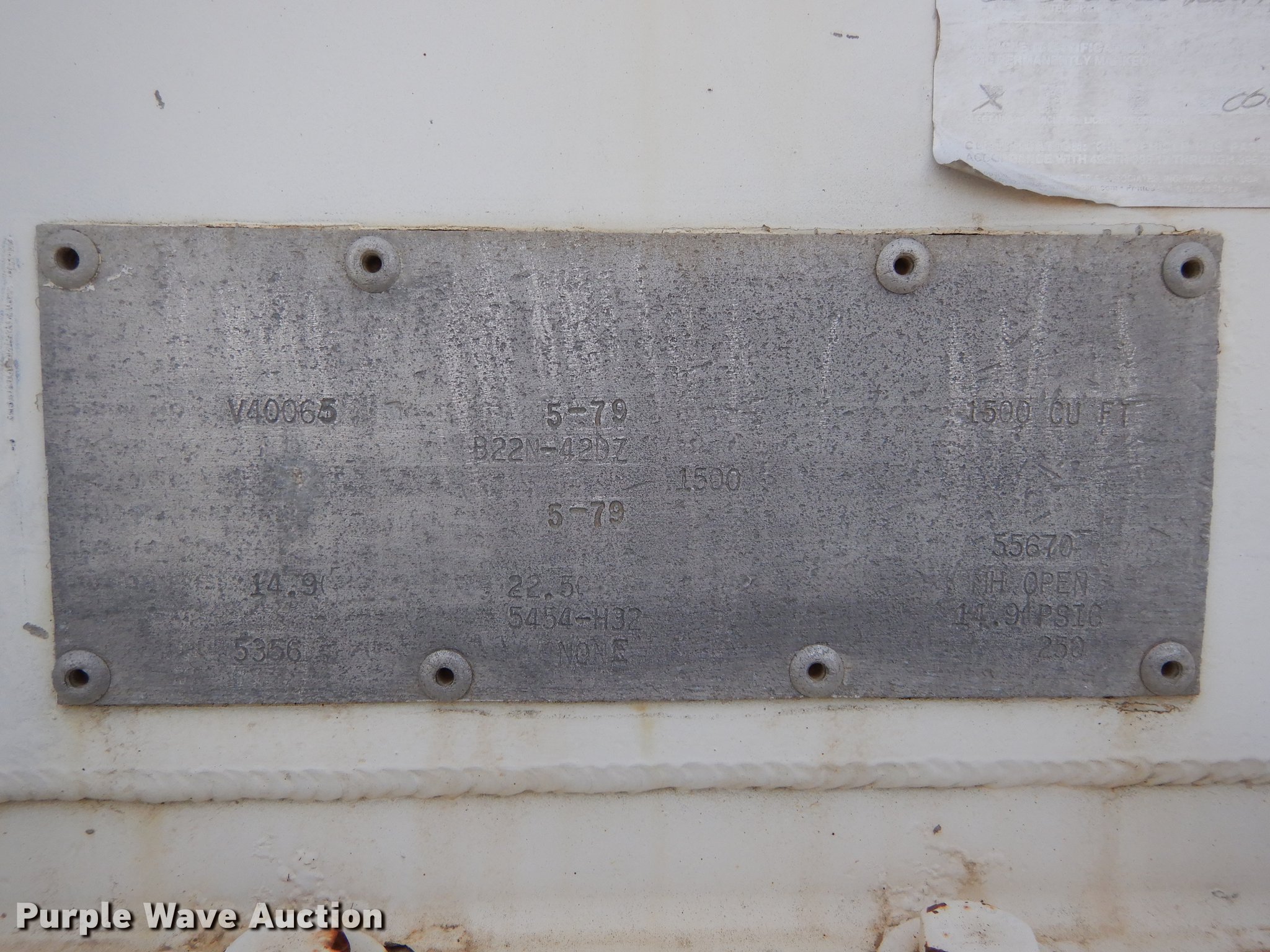 Purple Wave is selling a used Tank Trailer in Texas. This item is a 1980 Trailmobile tank trailer with the following: 41'L x 8'W steel tank, 1,500 cu.ft. capacity, Three compartments, (3) outlet valves, (3) 20"W manways, Full length walkway, Fifth wheel plate, Dual leg landing gear, Air suspension, Air brakes, Steel wheels, 11R24.5 tires