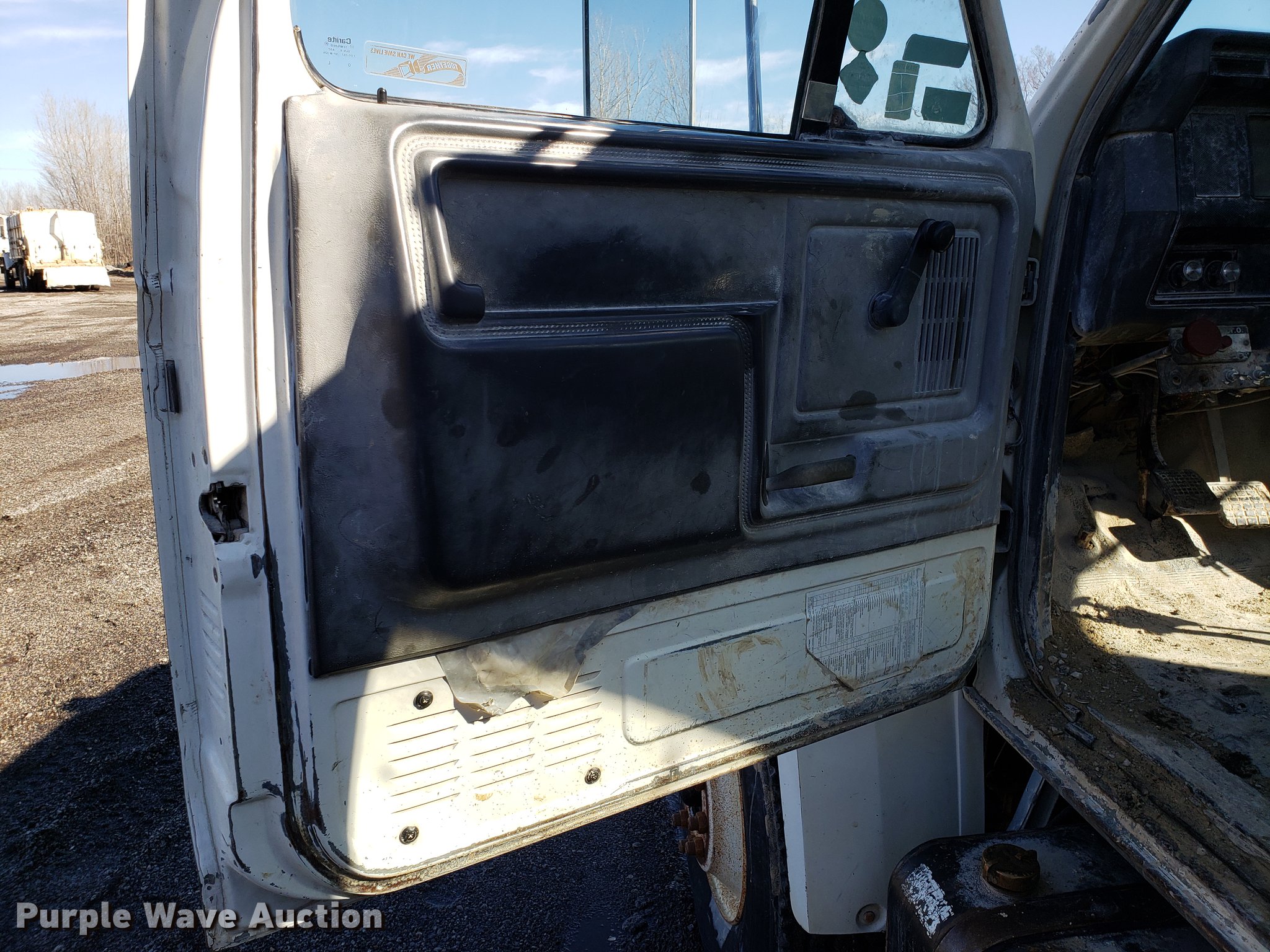 1991 Ford F800 fuel and lube truck. 281,839 miles on odometer, 10,402 hours on meter, 7.8L L6 turbo diesel engine, Five speed manual transmission Two speed rear end, Heat, AM/FM/CD, PTO, 19'L x 8'W flatbed (7) hose reels, Auxiliary fuel tank, Coolant reservoir, Oil reservoirs, Grease reservoir, Air compressor, 214" wheelbase, Spring suspension, Air brakes, 11R22.5 tires, Transmission issues Will not go into gear, Non-operational vehicle, Unit# 380B. Missouri title. 1FDXK84A6MVA22891. J.M. Fahey Construction Company. 7014 Holliday Dr. Kansas City, KS 66106