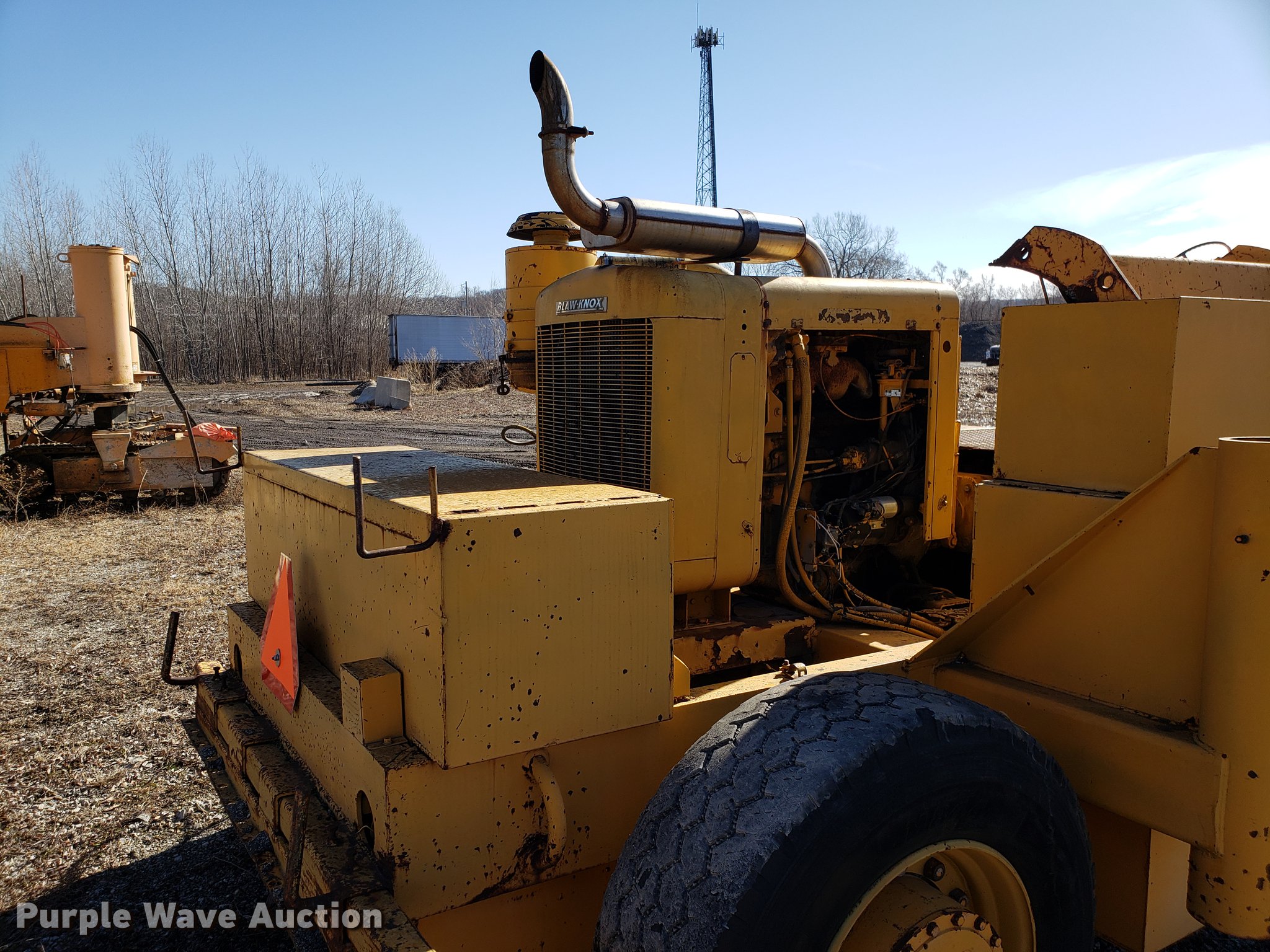 Blaw Knox RW195 road widener. 3,688 hours on meter, Detroit Diesel four cylinder diesel engine, Hydrostatic transmission, 12' maximum width with extensions, 385/65R22.5 tires, Serial 0926007, Unit# 229. J.M. Fahey Construction Company. 7014 Holliday Dr. Kansas City, KS 66106