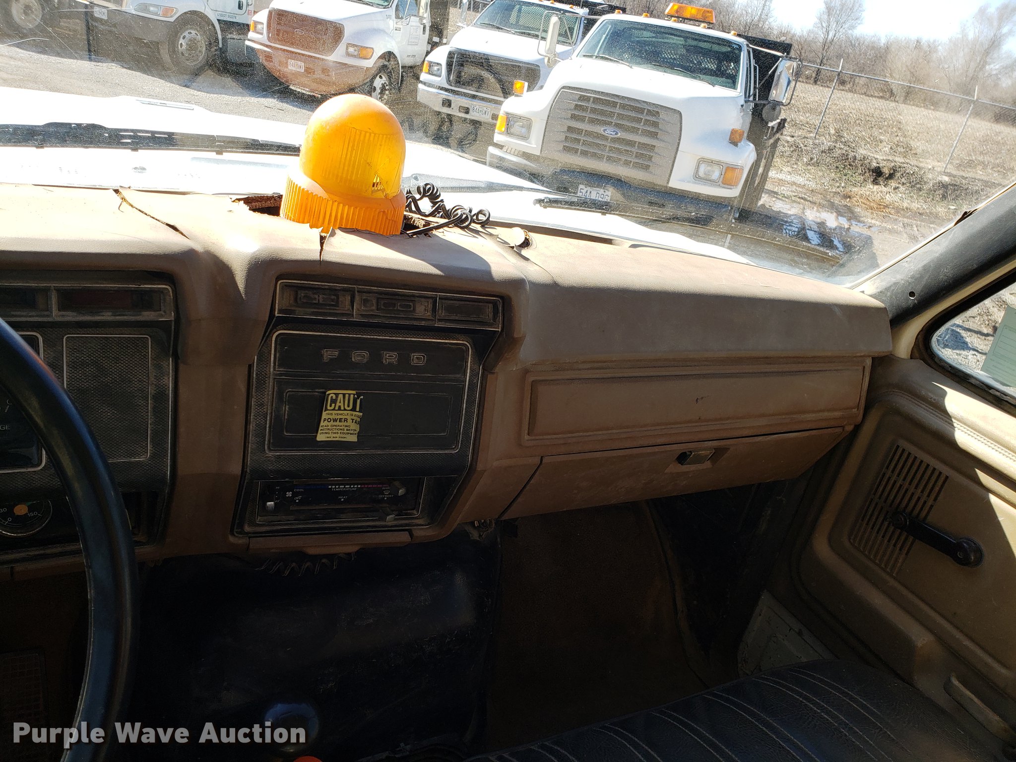 Purple Wave is selling a used Crane Truck in Kansas. This item is a 1987 Ford F800 crane truck with the following: 47,521 miles on odometer, 7.8L six cylinder turbo diesel engine, Five speed manual transmission, Two speed rear end, Single axle, Heat, 16'L x 8'W flatbed, RO crane, 22,500 lbs maximum lift capacity, 56' maximum reach, 65' maximum lift height, Dual side ground controls, (4) hydraulic outriggers, Serial 1500887768, Spring suspension, Air brakes, GVWR 31,000 lbs, Unit# 360