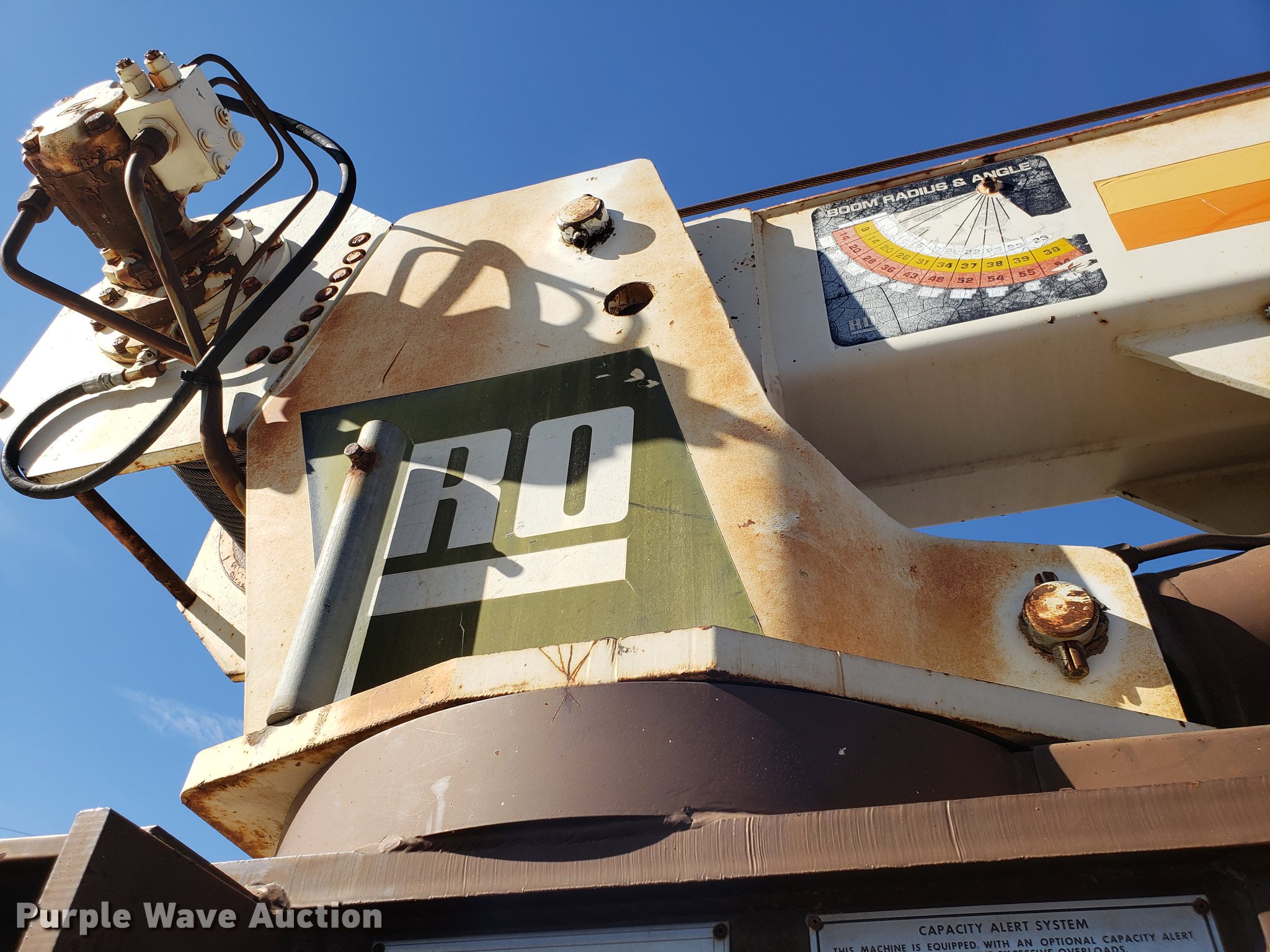 1987 Ford F800 crane truck. 47,521 miles on odometer, 7.8L six cylinder turbo diesel engine, Five speed manual transmission Two speed rear end, Single axle, Heat, 16'L x 8'W flatbed, RO crane 22,500 lbs maximum lift capacity, 56' maximum reach, 65' maximum lift height, Dual side ground controls, (4) hydraulic outriggers, Serial 1500887768, Spring suspension, Air brakes, GVWR 31,000 lbs, Unit# 360. Missouri title. 1FDXT84AXHVA52396. J.M. Fahey Construction Company. 7014 Holliday Dr. Kansas City, KS 66106