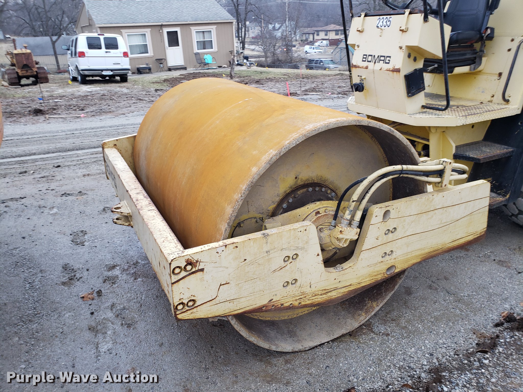 Purple Wave is selling a used Single Drum Roller Compactor in Kansas. This item is a 1996 Bomag BW213DH-2A single drum vibratory roller with the following: 5,338 hours on meter, Deutz six cylinder diesel engine, Hydrostatic transmission, Canopy, 7'W x 60" diameter drum, Drum scraper, Serial 109400890125T
