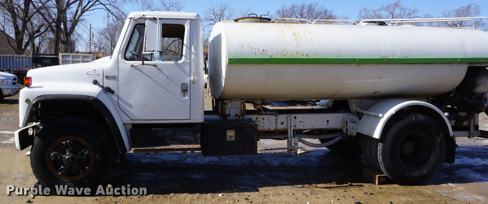 Purple Wave is selling a used Tank Truck or Water Truck in Kansas. This item is a 1981 International S1800 tank truck with the following: 23,214 miles on odometer, V8 gas engine, Automatic transmission, Single axle, Heat, PTO, 1,800 gallon tank, Hydraulic driven pump, Side and rear discharge, Top fill, Ladder, Toolbox, Single fuel tank, Spring suspension, Hydraulic brakes, 10.00R20 front tires, 11.00R20 rear tires, Non-operational brakes