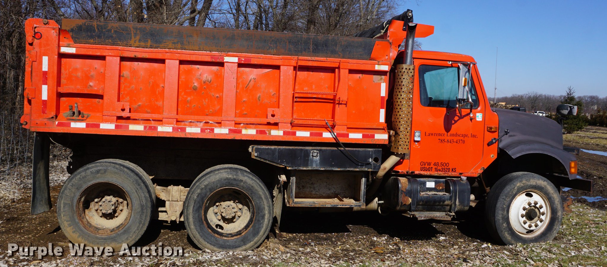 Purple Wave is selling a used Construction Dump Truck in Kansas. This item is a 1991 International 4900 dump truck with the following: 16,713 miles on odometer, Actual mileage uknown, International DT466 7.6L L6 turbo diesel engine, Automatic transmission, Inter-axle differential lock, Tandem axle, Heat, Air suspension seat, PTO, 13'L x 96"W steel dump bed, 33" side height, 10" side board height, Single ram hoist, Manual operated end gate, Roll tarp, Single fuel tank, Pintle hitch, Spring over walking beam suspension, Air brakes, 295/75R22.5 tires, GVWR 46,000 lbs, FAWR 12,000 lbs, IAWR 17,000 lbs, RAWR 17,000 lbs, Non-operational unit, Batteries dead