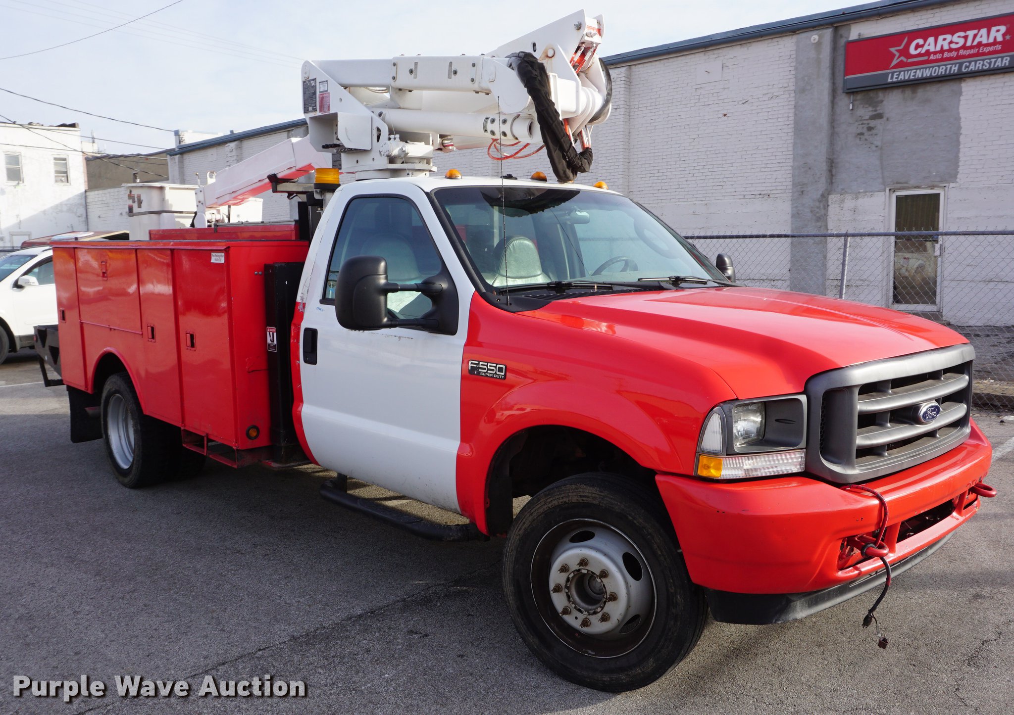 This 2004 Ford F550 Super Duty bucket truck will sell to the highest bidder regardless of price.