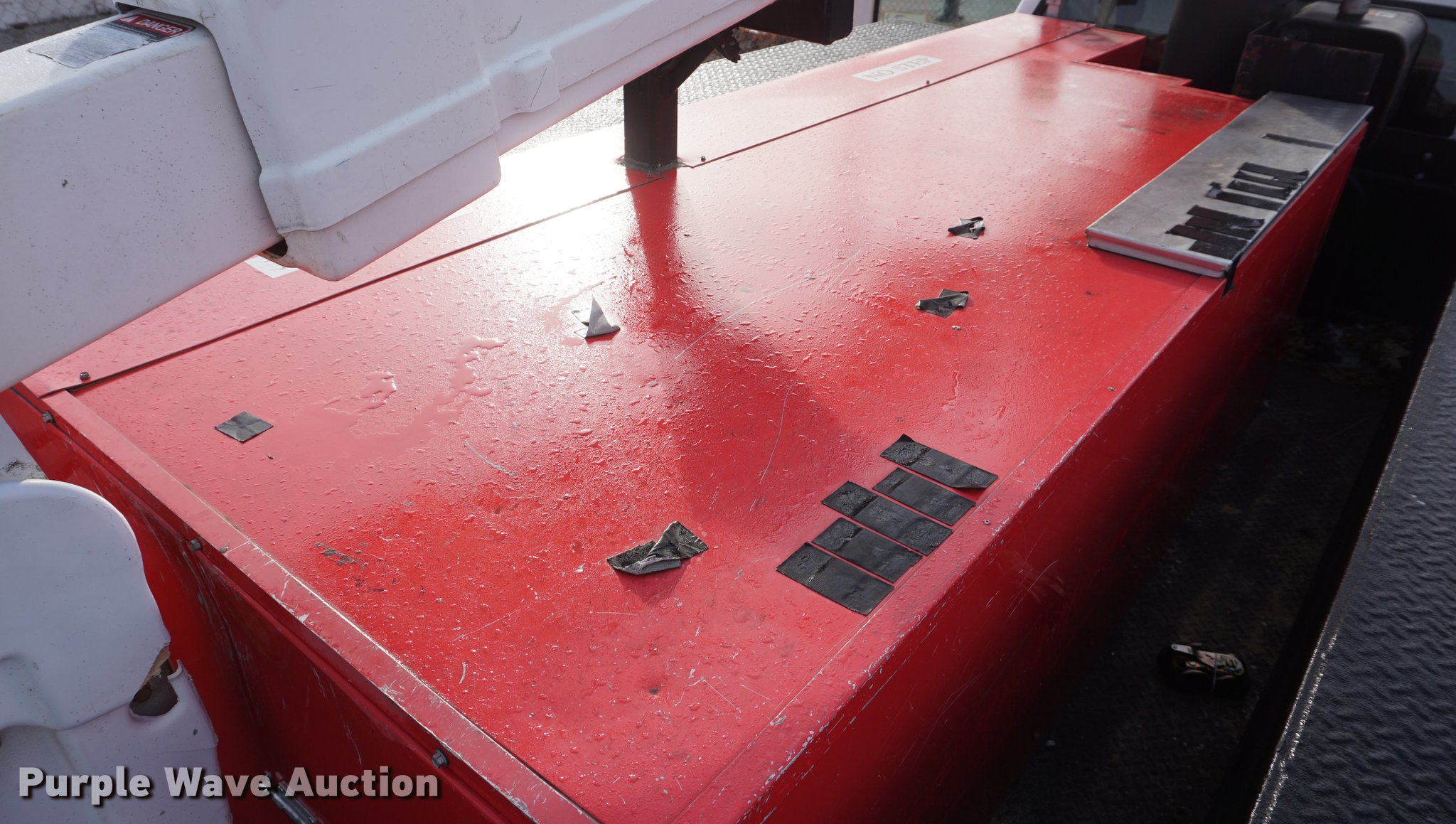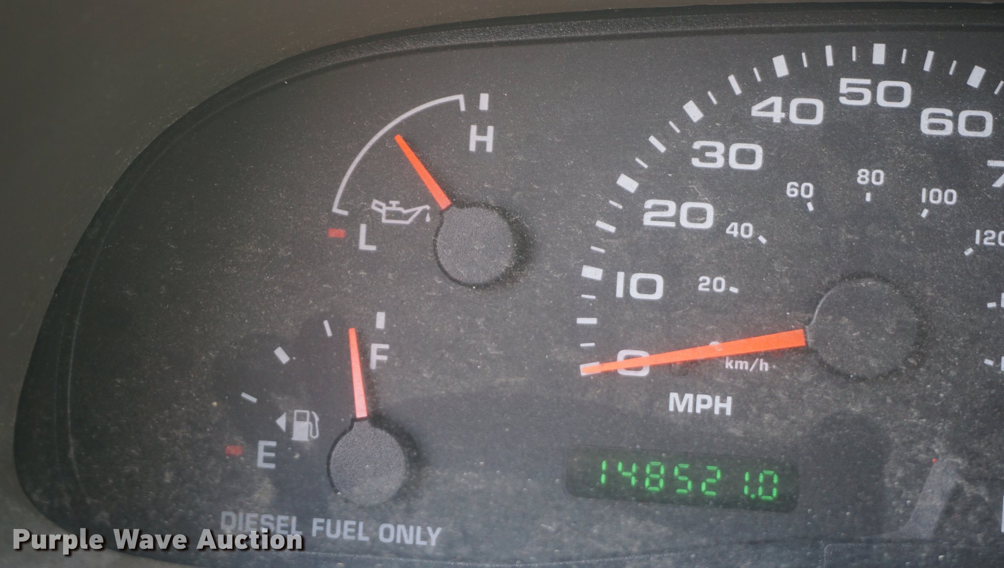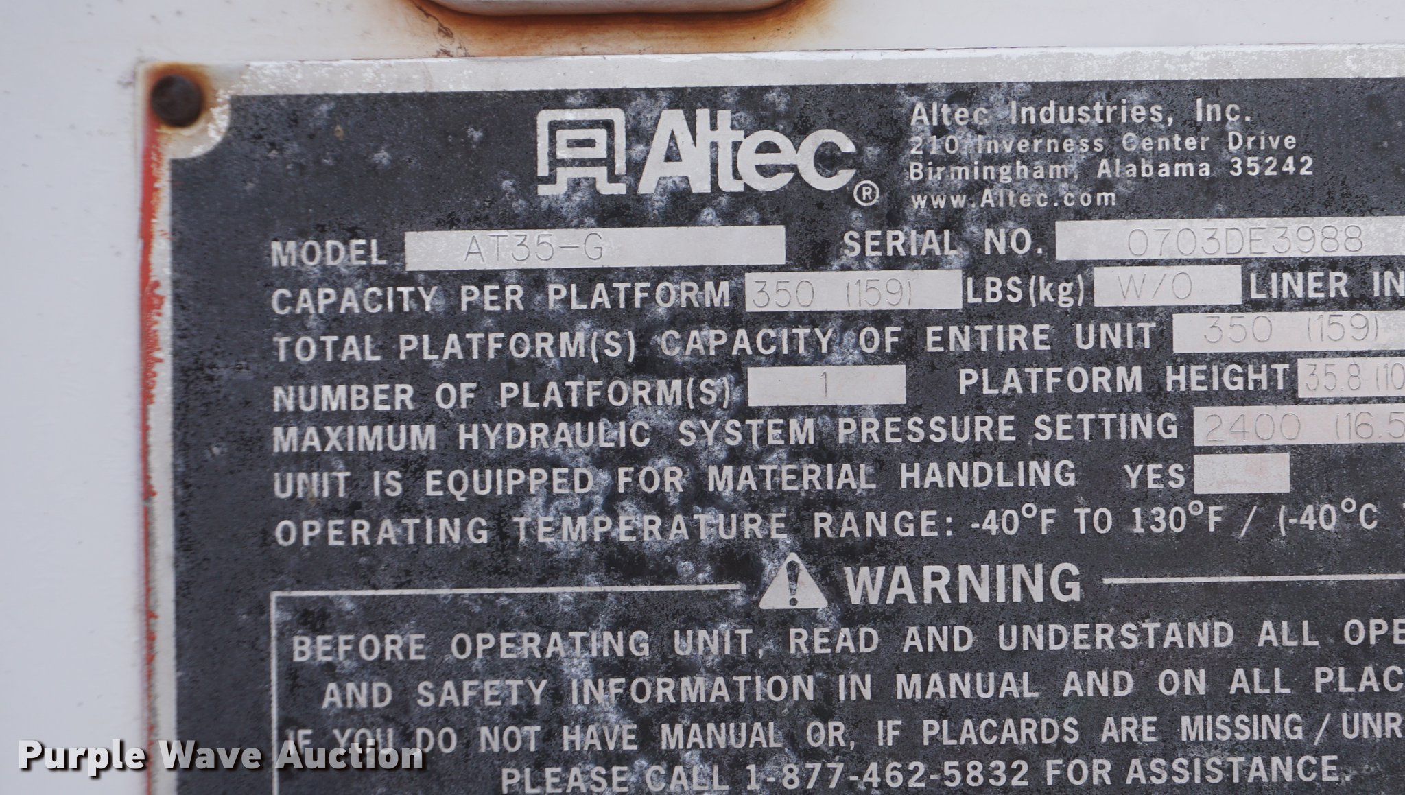 Purple Wave is selling a used Bucket Truck in Kansas. This item is a 2004 Ford F550 Super Duty bucket truck with the following: 148,521 miles on odometer, 6.0L V8 OHV 32V turbo diesel engine, Automatic transmission, Single axle, AC and heat, AM/FM, PTO, Altec utility bed, 10'2"L, 29" rear platform, Shelving, Compartment lights, Work lights, Altec AT35-G boom, 350 lbs maximum lift capacity, 35'8" maximum lift height, Man basket, Ground and platform controls, Boom rotation, Articulating, insulated, telescopic boom, Serial 0703DE3988, Single fuel tank, Spring suspension, Hydraulic brakes, 225/70R19.5 tires, GVWR 19,000 lbs, Passenger door replaced due to vandalism