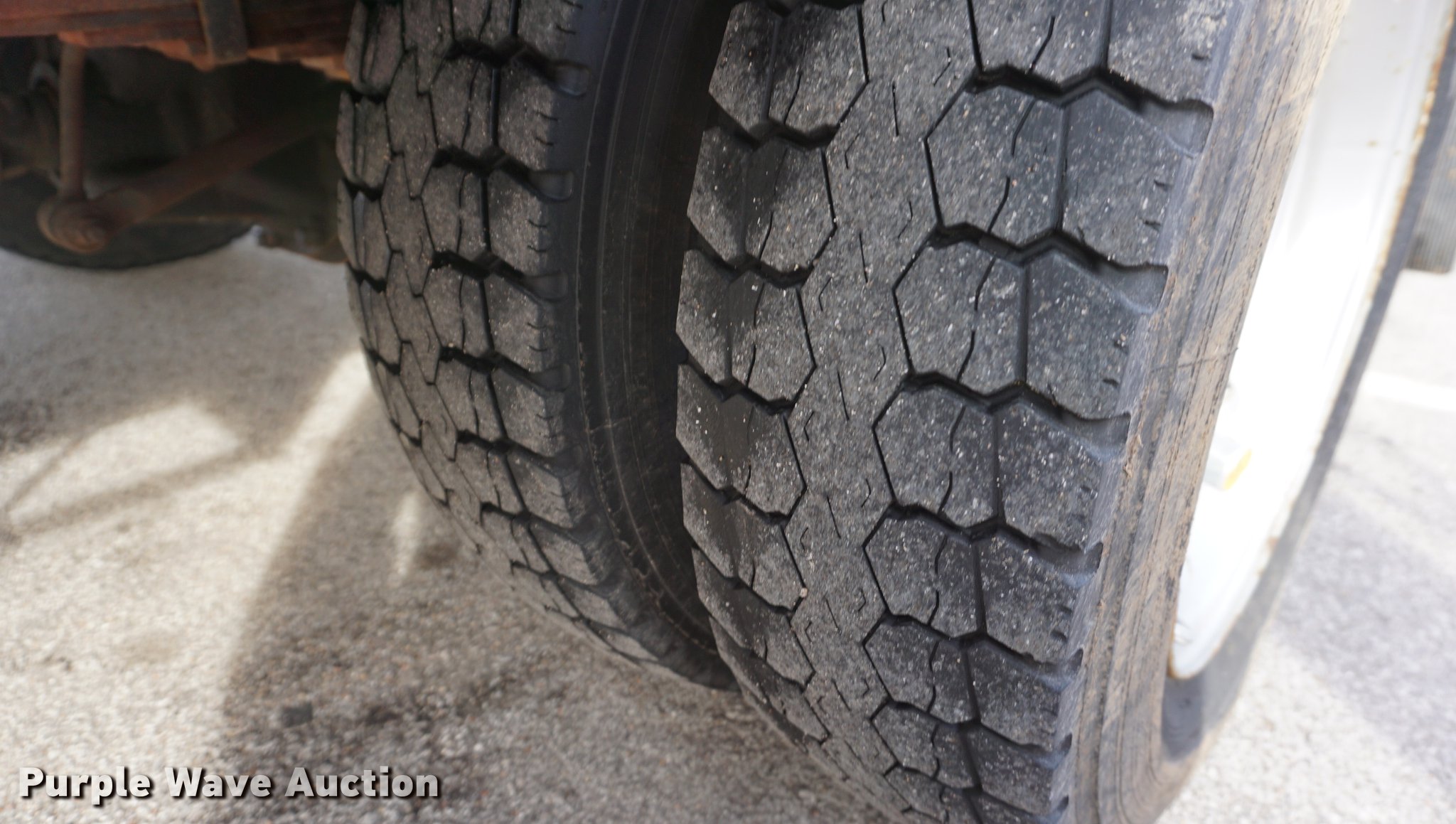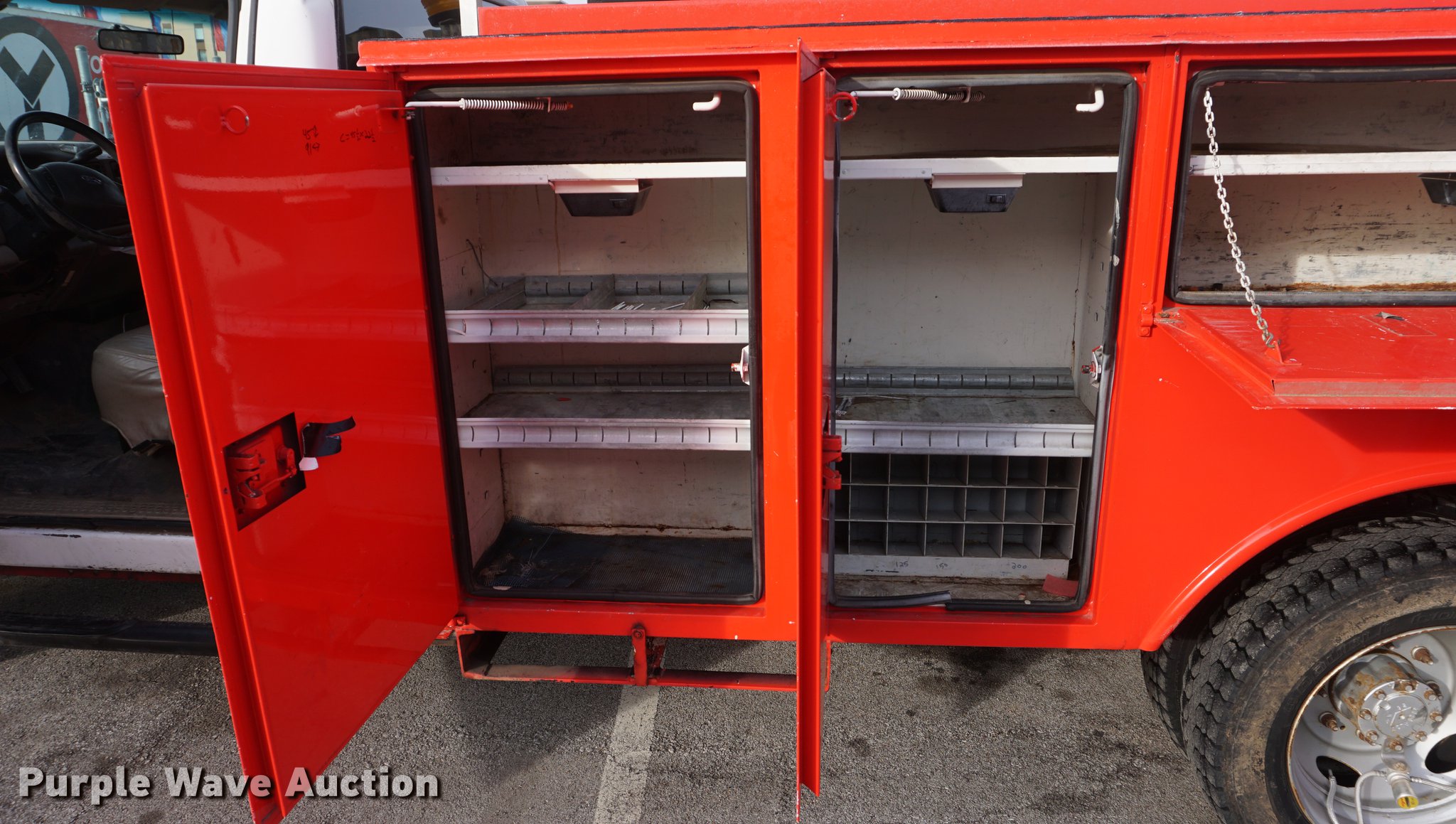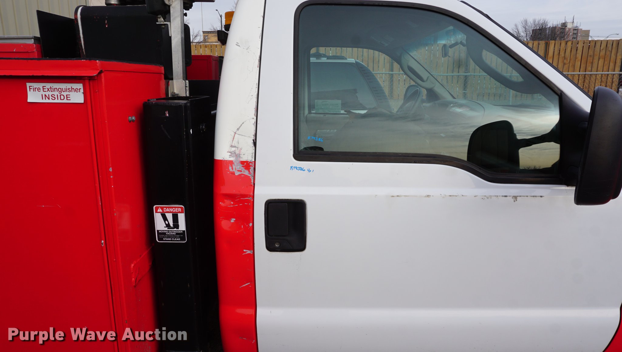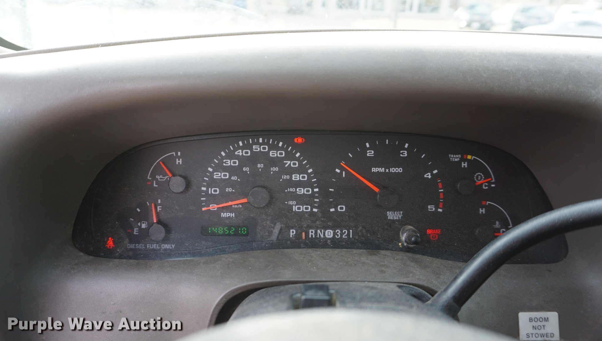 Purple Wave is selling a used Bucket Truck in Kansas. This item is a 2004 Ford F550 Super Duty bucket truck with the following: 148,521 miles on odometer, 6.0L V8 OHV 32V turbo diesel engine, Automatic transmission, Single axle, AC and heat, AM/FM, PTO, Altec utility bed, 10'2"L, 29" rear platform, Shelving, Compartment lights, Work lights, Altec AT35-G boom, 350 lbs maximum lift capacity, 35'8" maximum lift height, Man basket, Ground and platform controls, Boom rotation, Articulating, insulated, telescopic boom, Serial 0703DE3988, Single fuel tank, Spring suspension, Hydraulic brakes, 225/70R19.5 tires, GVWR 19,000 lbs, Passenger door replaced due to vandalism