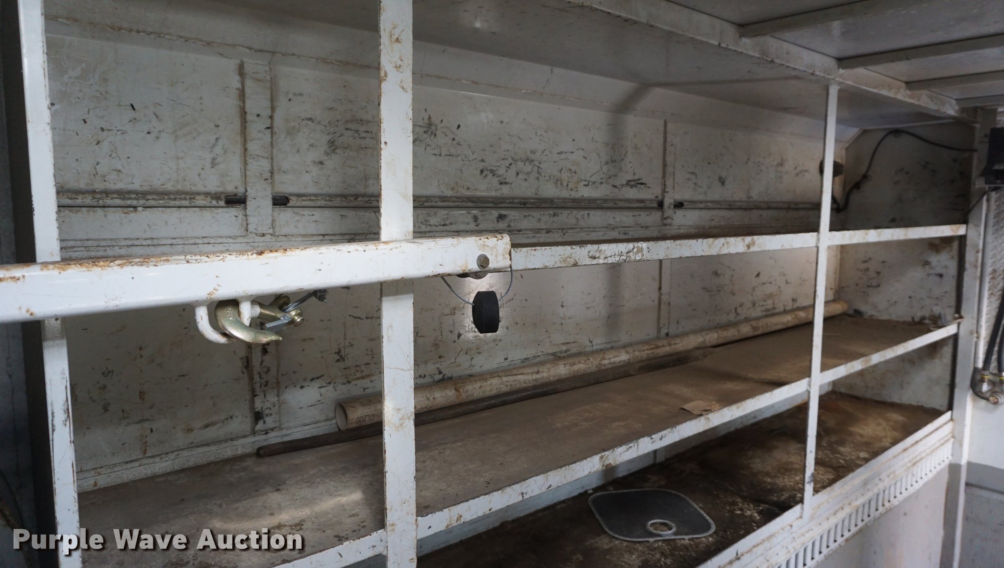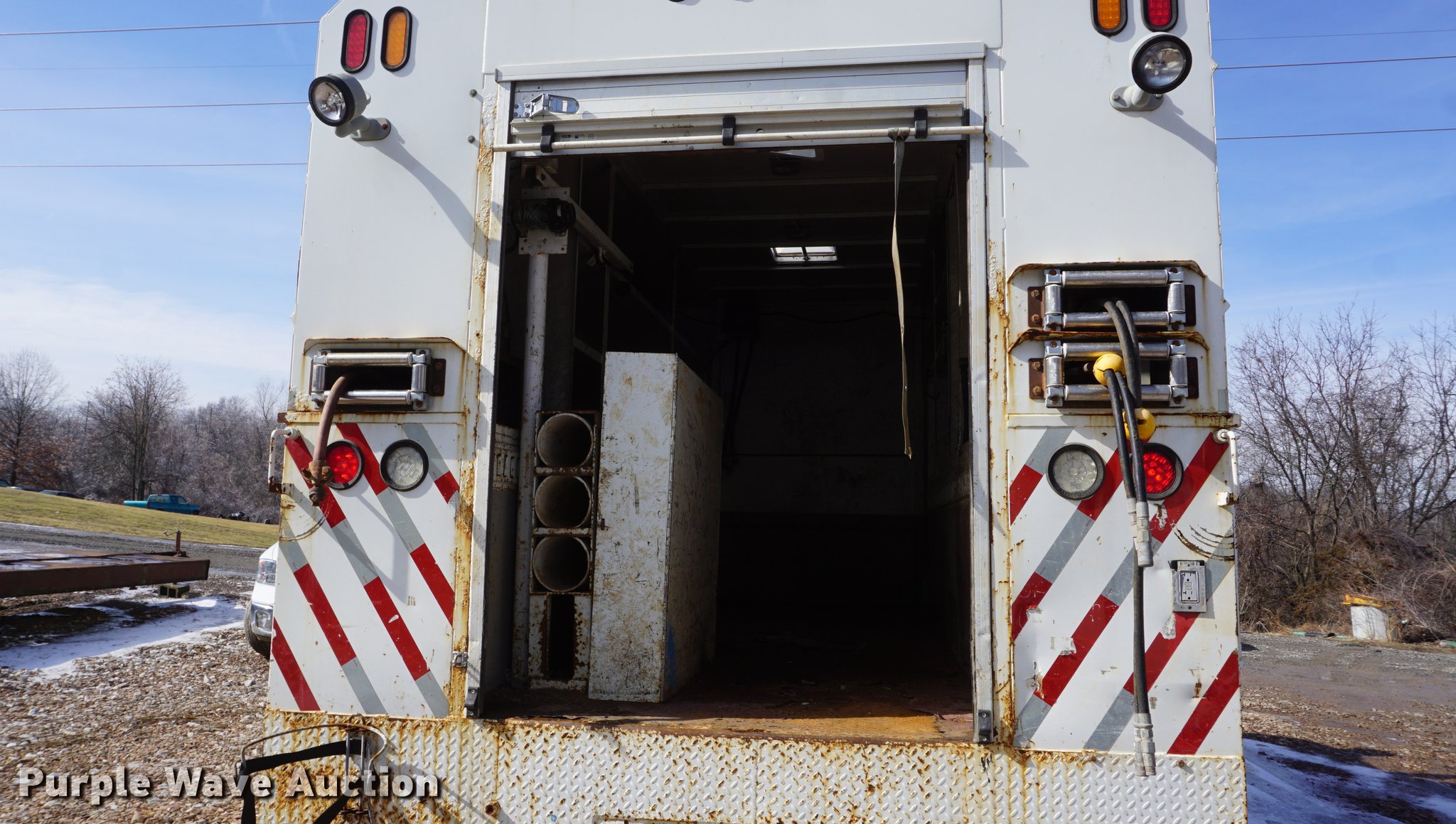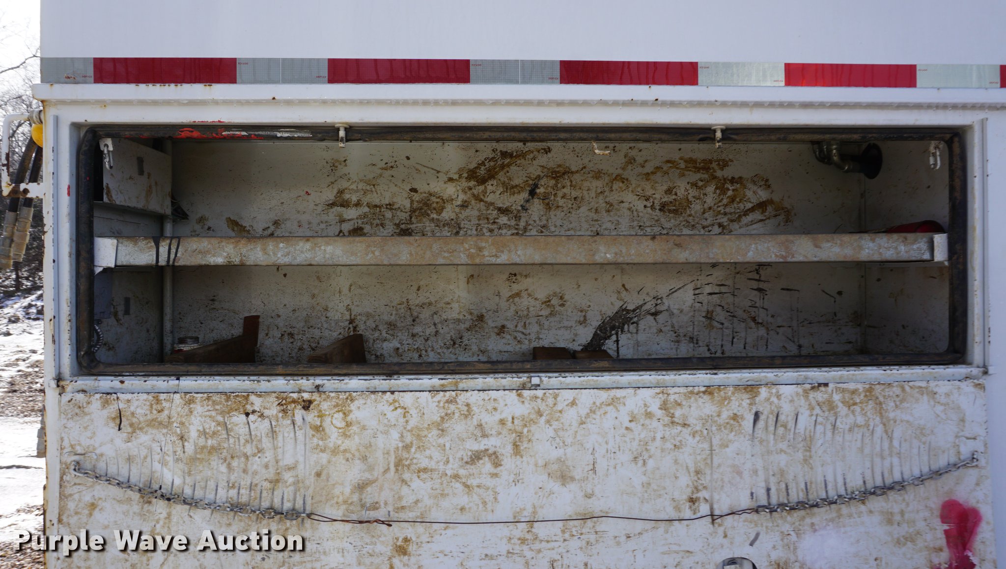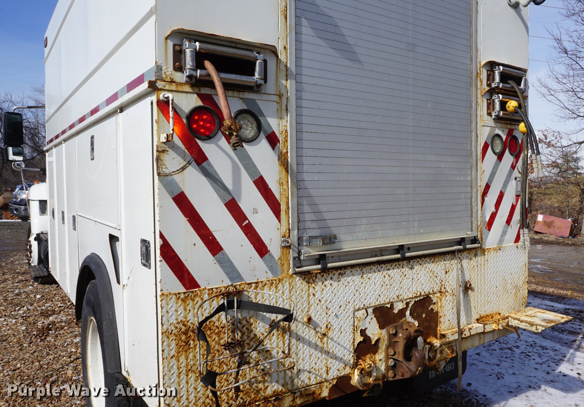 Purple Wave is selling a used Service Truck in Missouri. This item is a 2009 International 7300 service truck with the following: 25,167 miles on odometer, 4,660 hours on meter, 2,450 PTO hours on meter, International MaxxForce 7.6L L6 CNG engine, Allison automatic transmission, Single axle, AC and heat, AM/FM/CD, Heated mirrors, Air suspension seat, PTO, Dakota 155-SS utility bed, 13'L, Shelving, Slide-out drawers, Enclosed body, Power inverter, (2) Hydraulic hose reels, Air compressor, Air hose reel, Sinlge fuel tank, Single exhaust stack, Spring suspension, Air brakes, 11R22.5 tires, GVWR 35,000 lbs
