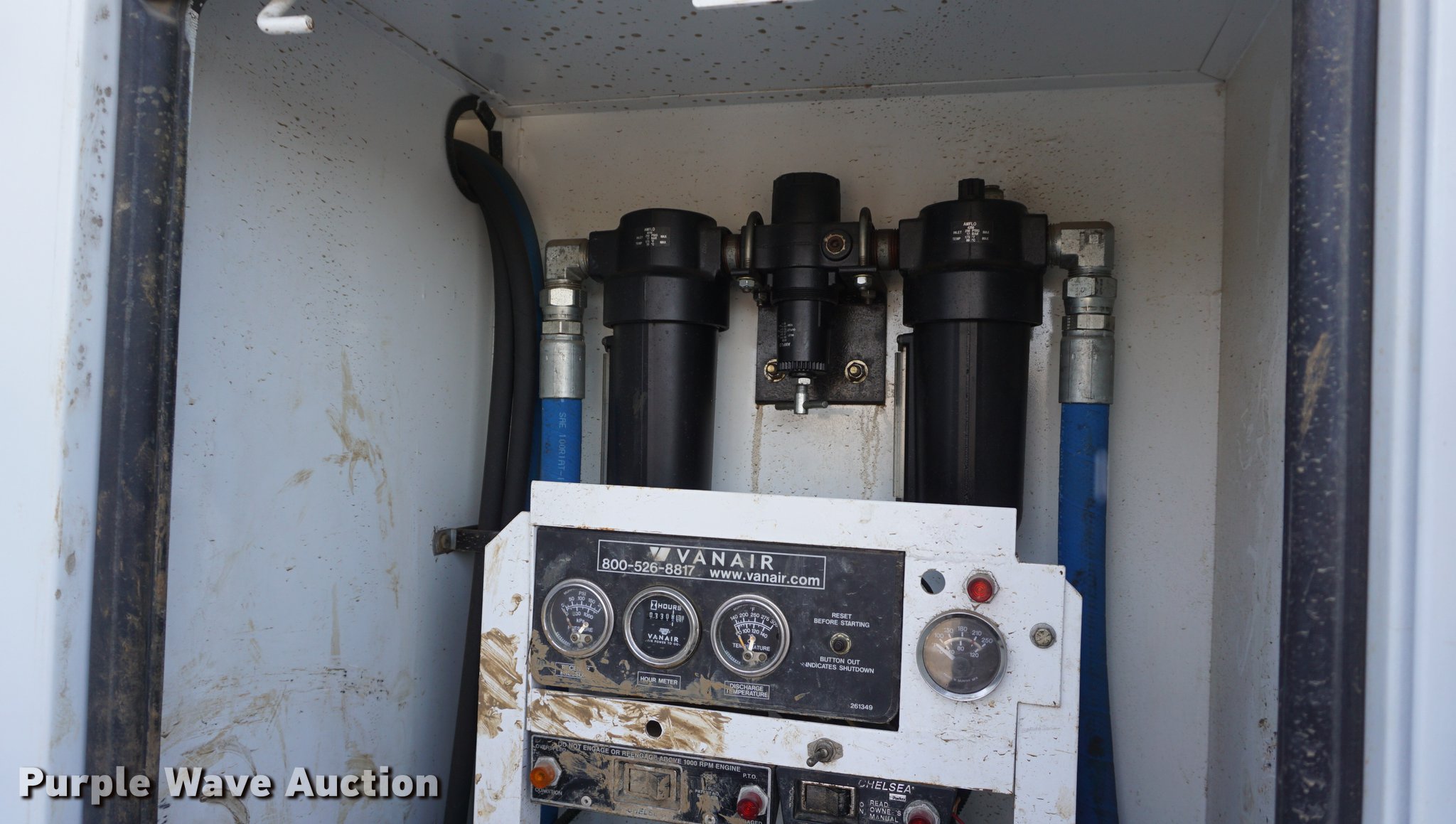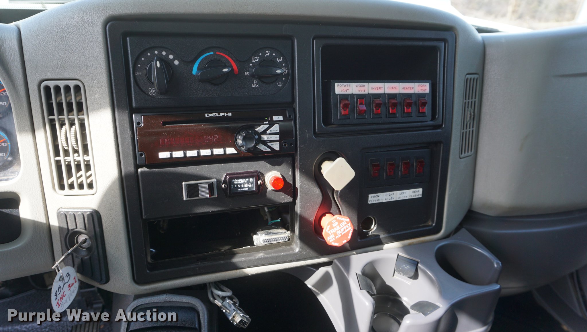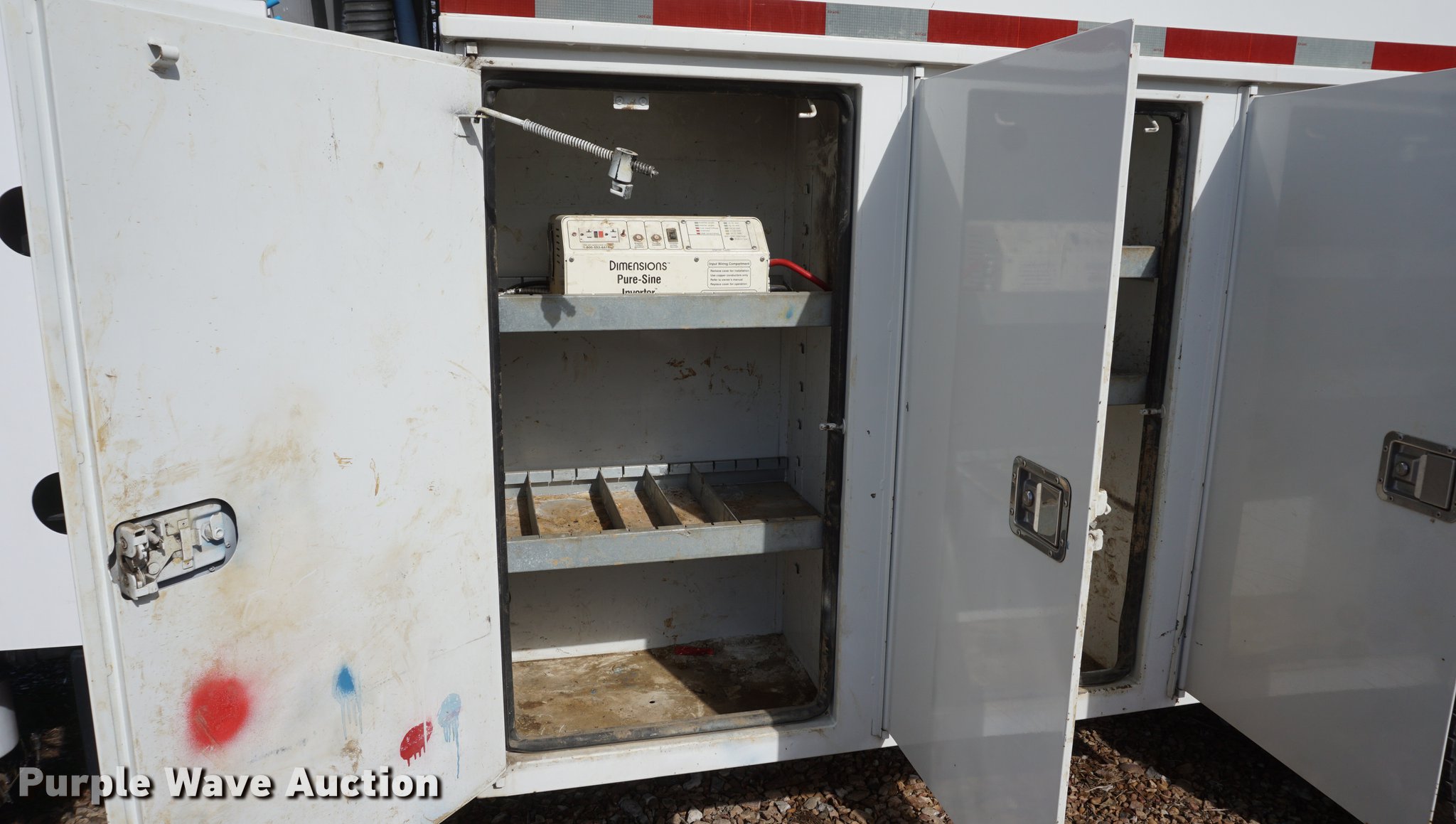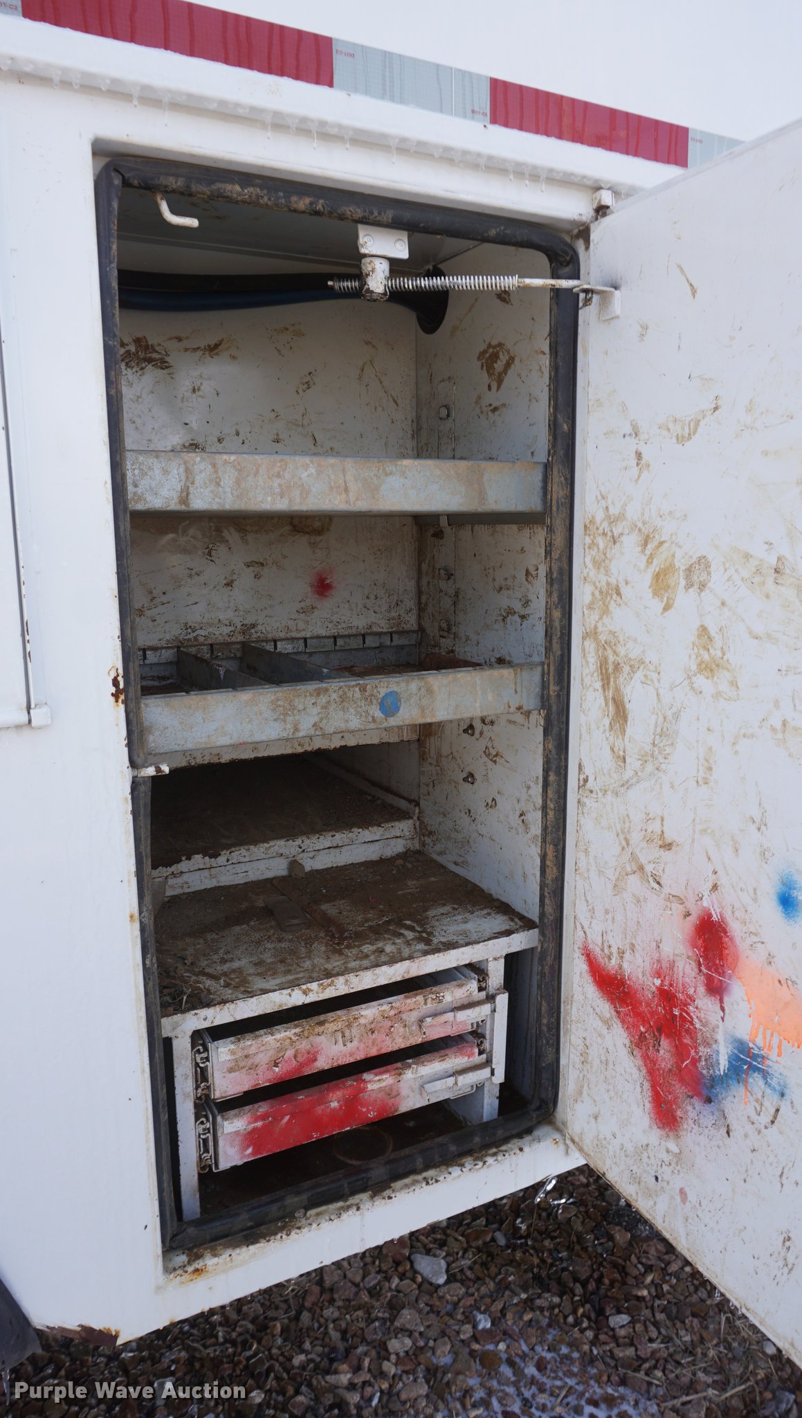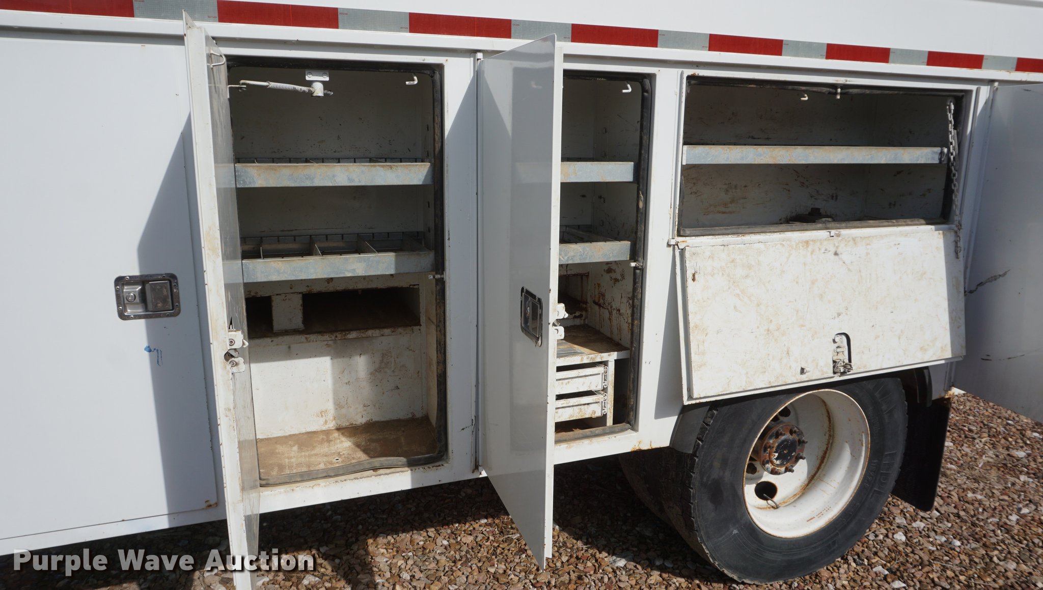 Purple Wave is selling a used Service Truck in Missouri. This item is a 2009 International 7300 service truck with the following: 25,167 miles on odometer, 4,660 hours on meter, 2,450 PTO hours on meter, International MaxxForce 7.6L L6 CNG engine, Allison automatic transmission, Single axle, AC and heat, AM/FM/CD, Heated mirrors, Air suspension seat, PTO, Dakota 155-SS utility bed, 13'L, Shelving, Slide-out drawers, Enclosed body, Power inverter, (2) Hydraulic hose reels, Air compressor, Air hose reel, Sinlge fuel tank, Single exhaust stack, Spring suspension, Air brakes, 11R22.5 tires, GVWR 35,000 lbs