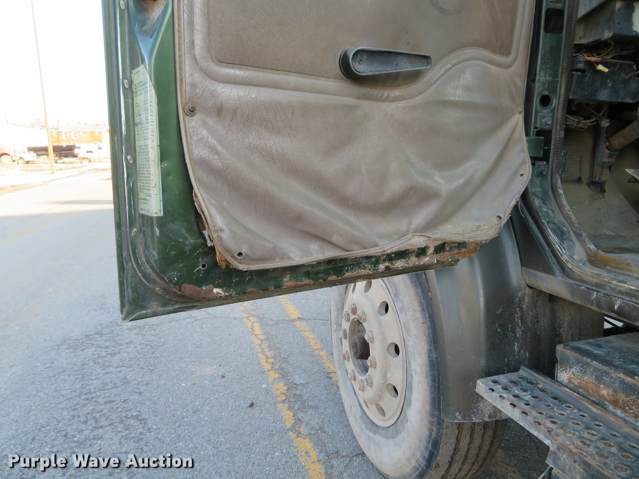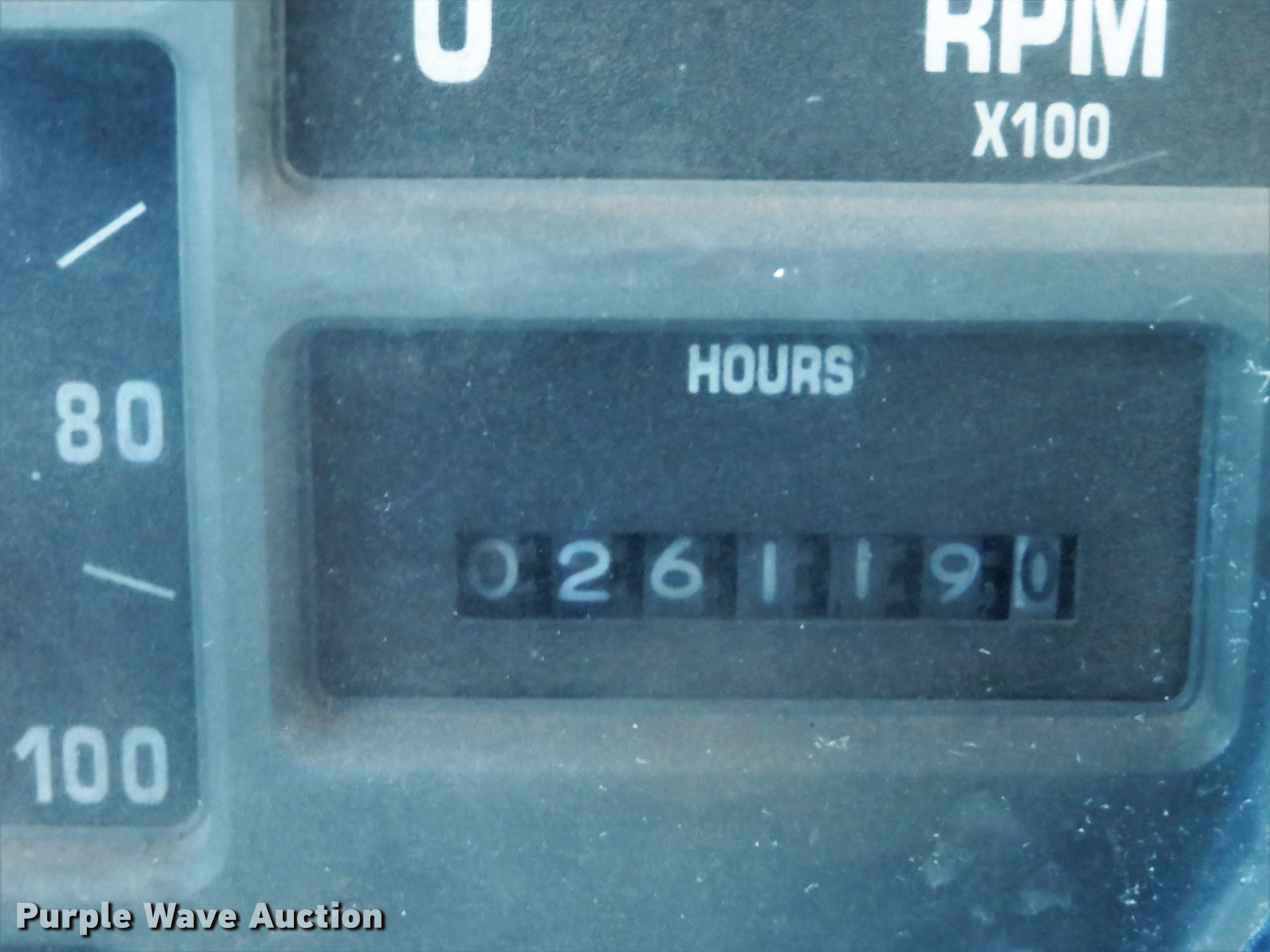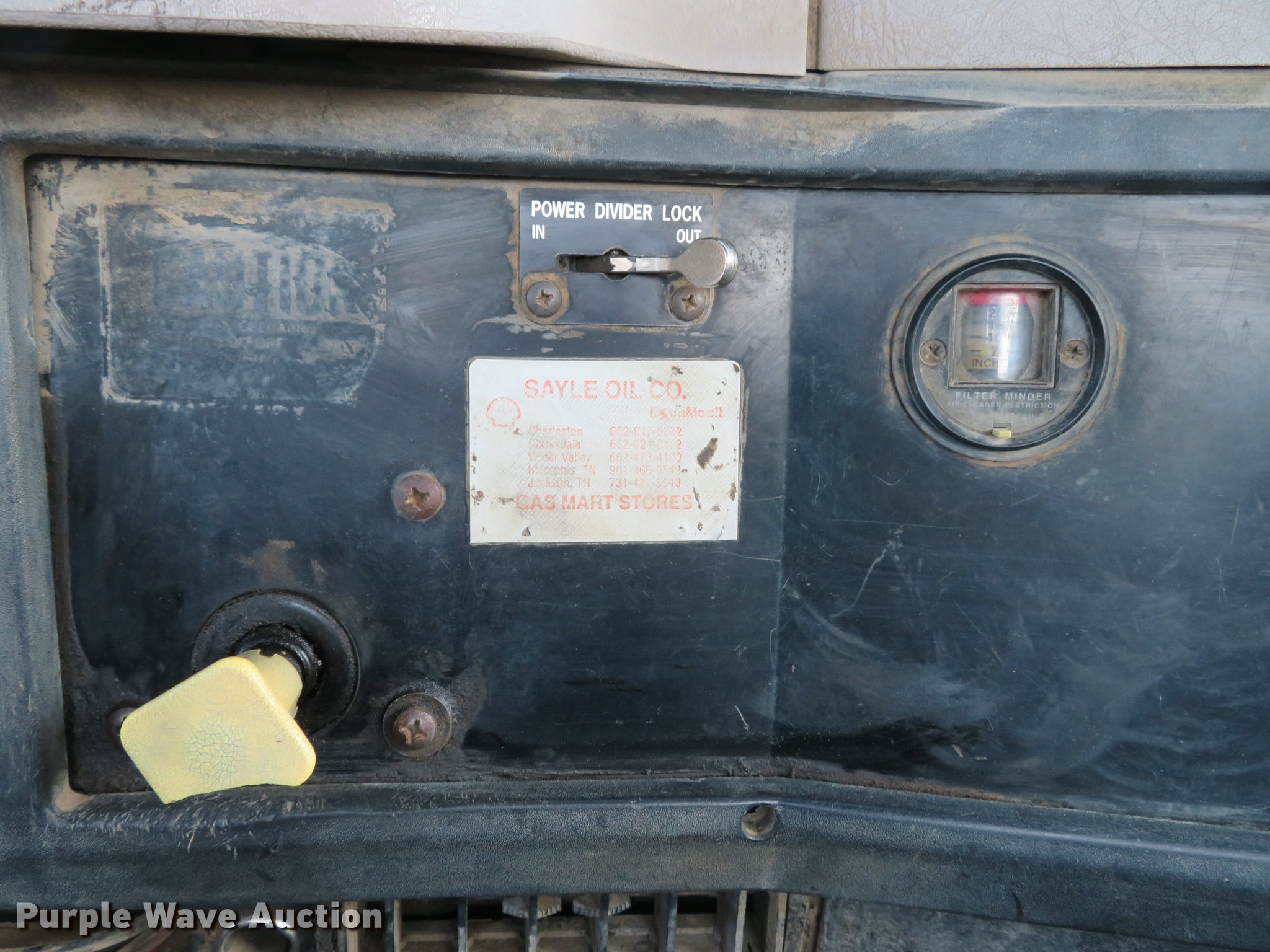 Purple Wave is selling a used Rollback or Tow Truck in Illinois. This item is a 1998 International 4900 roll off container truck with the following: 341,198 miles on odometer, 26,116 hours on meter, International DT466 7.6L L6 turbo diesel engine, Spicer nine speed manual transmission, Inter-axle differential lock, Tandem axle, AC and heat, Cruise, Air suspension seat, PTO, Front tow hooks, Gal Fab Inc. 0R60174S072 roll off bed, 23'3"L frame rail, Dual tilt cylinders, Dual cylinder cable hoist, 60,000 lbs capacity, 18' to 22' container capacity, Storage boxes, Dual fuel tanks, Single exhaust stack, 238" wheelbase, Spring over walking beam suspension, Air brakes, 11R22.5 tires, GVWR 54,000 lbs, FAWR 14,000 lbs, IAWR 20,000 lbs, RAWR 20,000 lbs, Non-operational AC