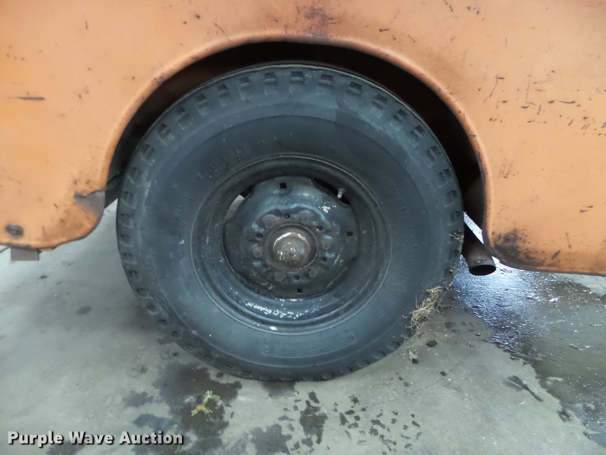 Purple Wave is selling a used Air Compressor in Minnesota. This item is a Gardner Denver GD185 air compressor with the following: 2,840 hours on meter, John Deere four cylinder diesel engine, Jack hammer, Hose, Pintle hitch, 7.00-15 tires