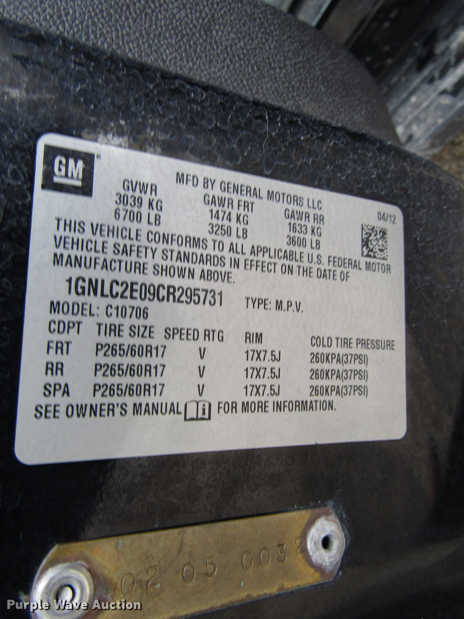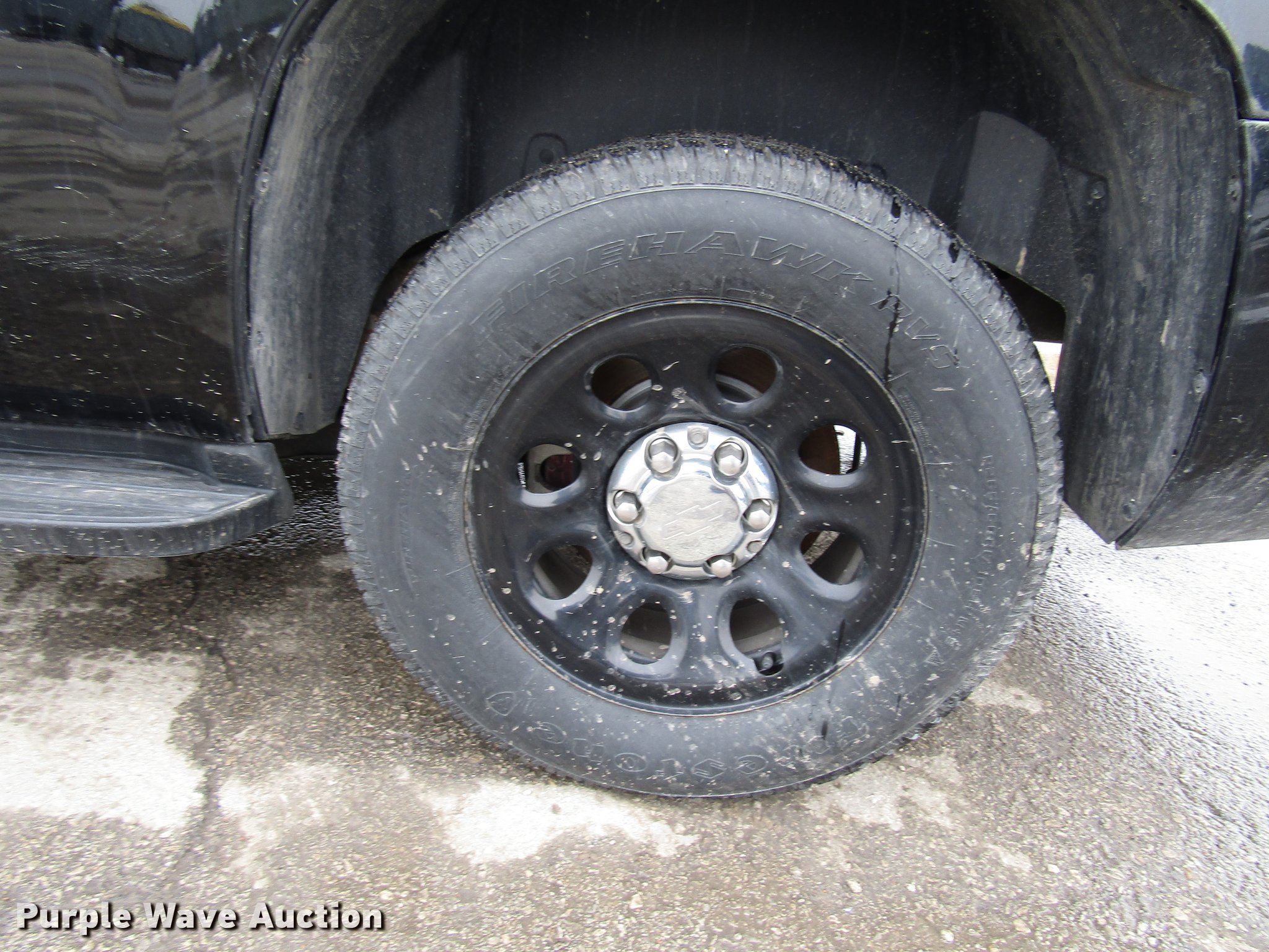Purple Wave is selling a used Passenger Vehicle in Kansas. This item is a 2012 Chevrolet Tahoe Police SUV with the following: 111,600 miles on odometer, 5.3L V8 OHV 16V FFV gas engine, Automatic transmission, AC and heat, Tilt, Cruise, AM/FM/CD, Power windows, locks, mirrors, and seat, Cloth front interior, Vinyl rear interior, 265/60R17 tires, Unit# 5032
