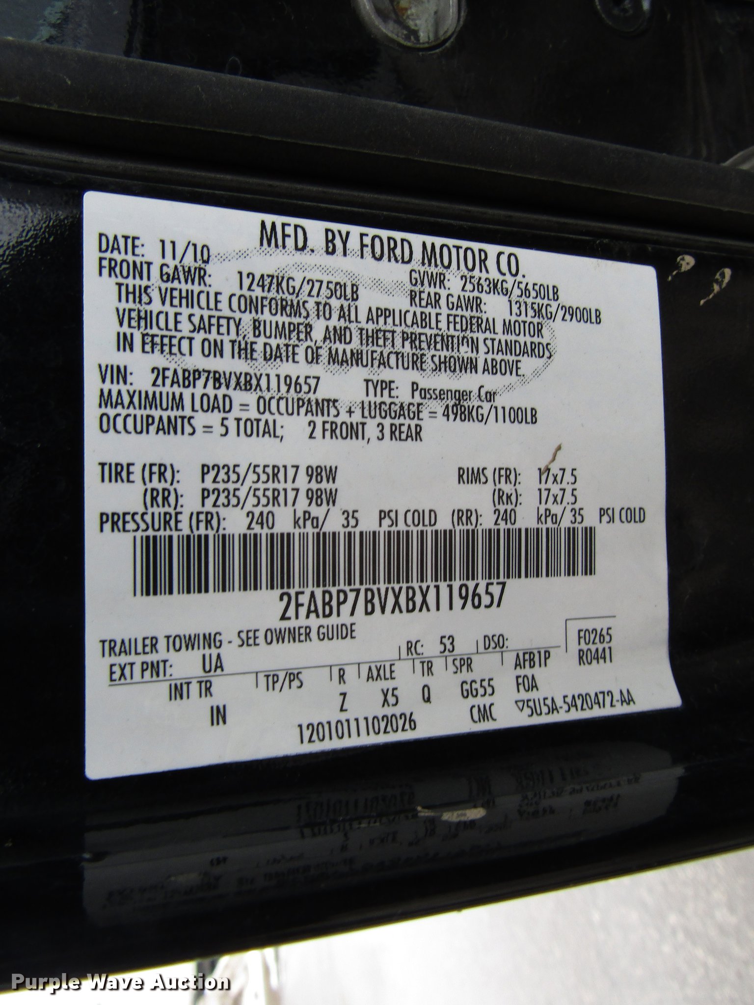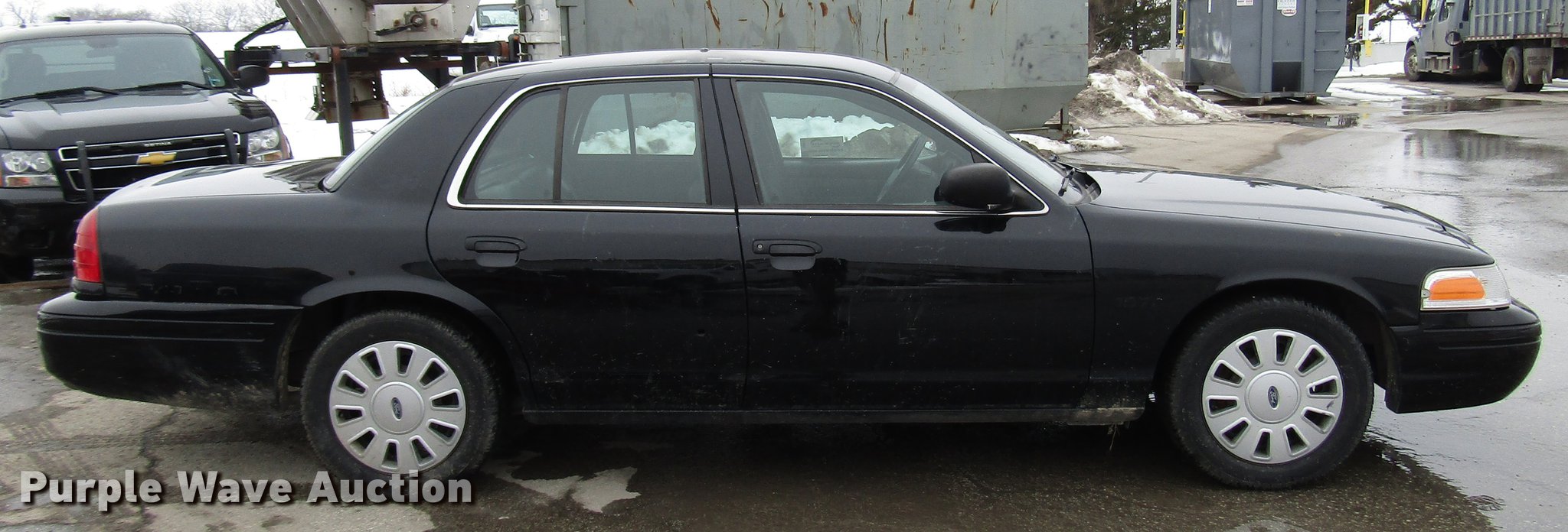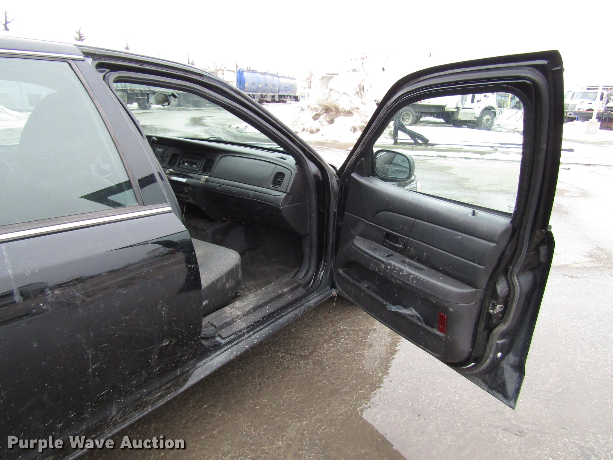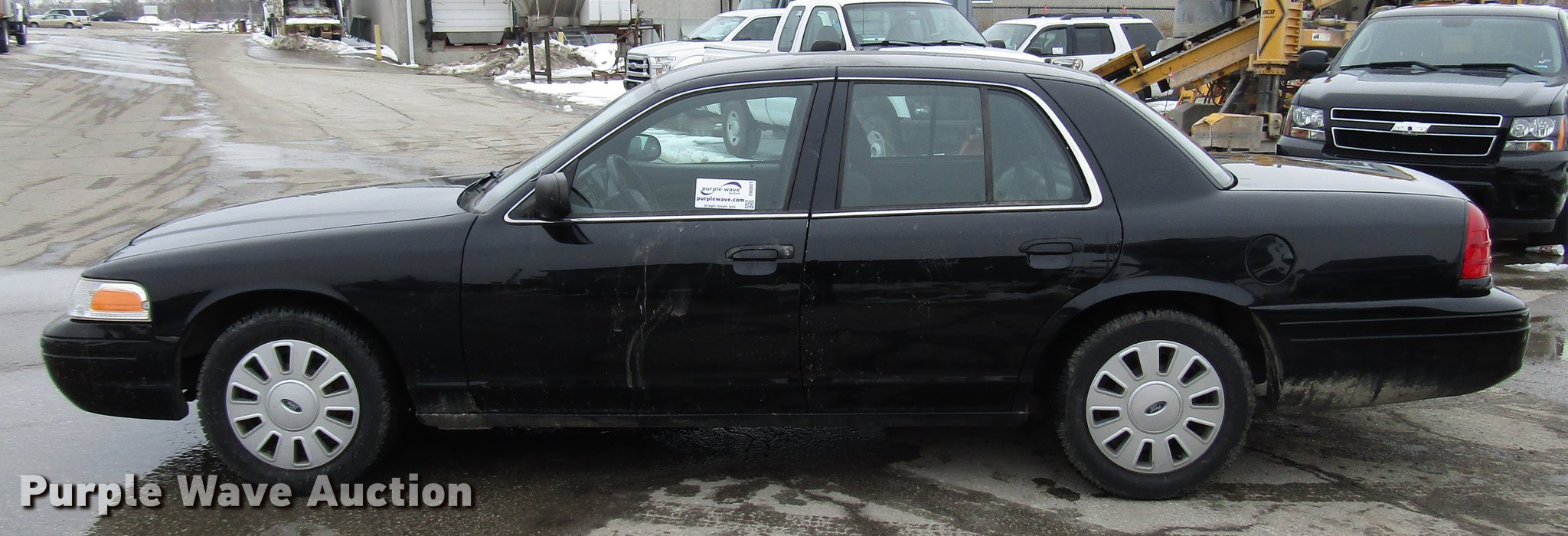 Purple Wave is selling a used Passenger Vehicle in Kansas. This item is a 2011 Ford Crown Victoria Police Interceptor with the following: 103,960 miles on odometer, 4.6L V8 SOHC 16V FFV gas engine, Automatic transmission, AC and heat, Tilt, Cruise, AM/FM/CD, Power windows, locks, mirrors, and seat, Cloth front interior, Vinyl rear interior, 235/55R17 tires, Unit# 1970